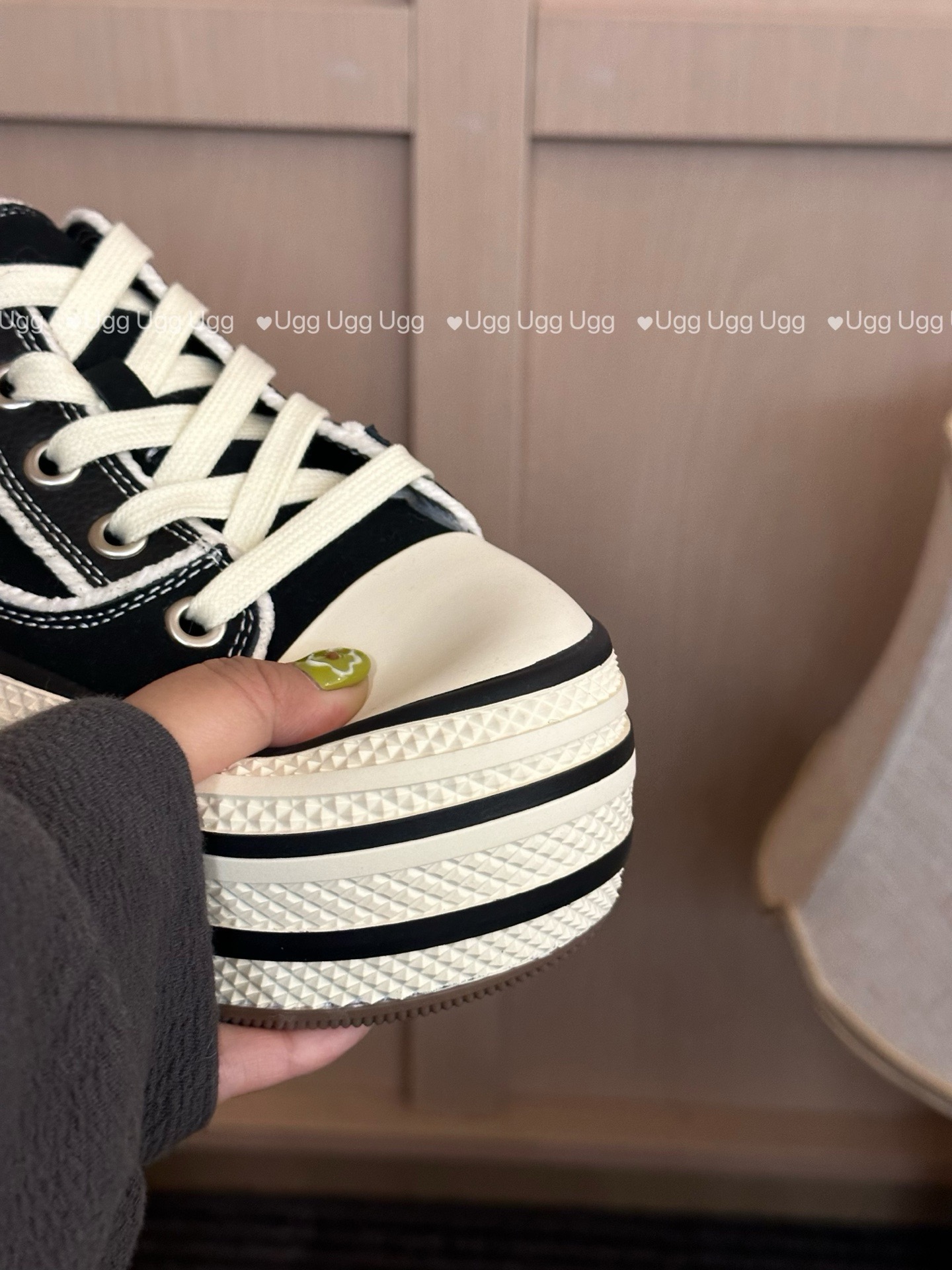 这款兒童鞋是AAAAA 1:1 质量 (非常棒). 使用了和原版一模一样的材料. 商标部分也保持了和UGG雪地靴一样. 图片拍摄是实物兒童鞋拍摄, 您所收到的实物保证和我们图片一模一样.