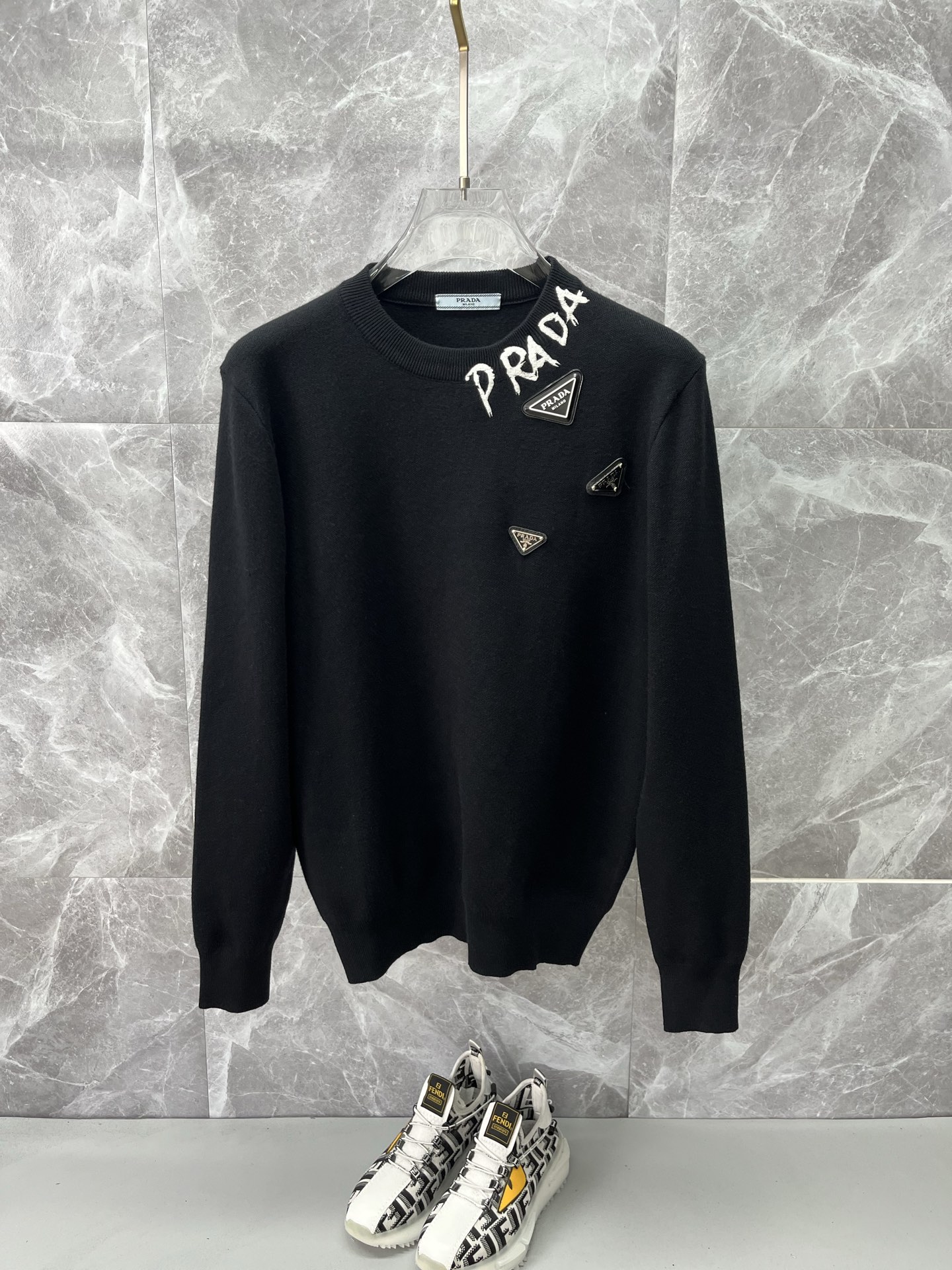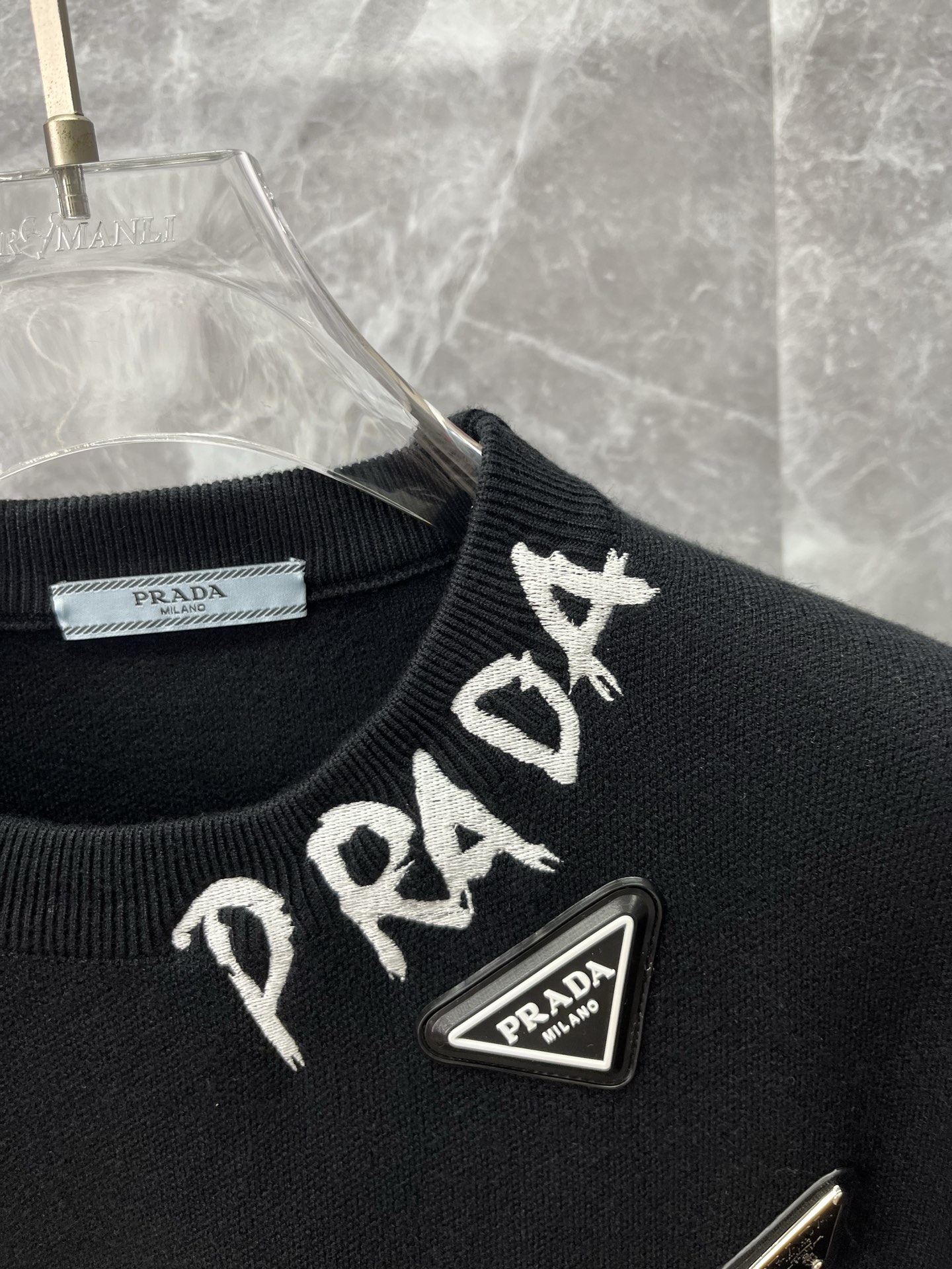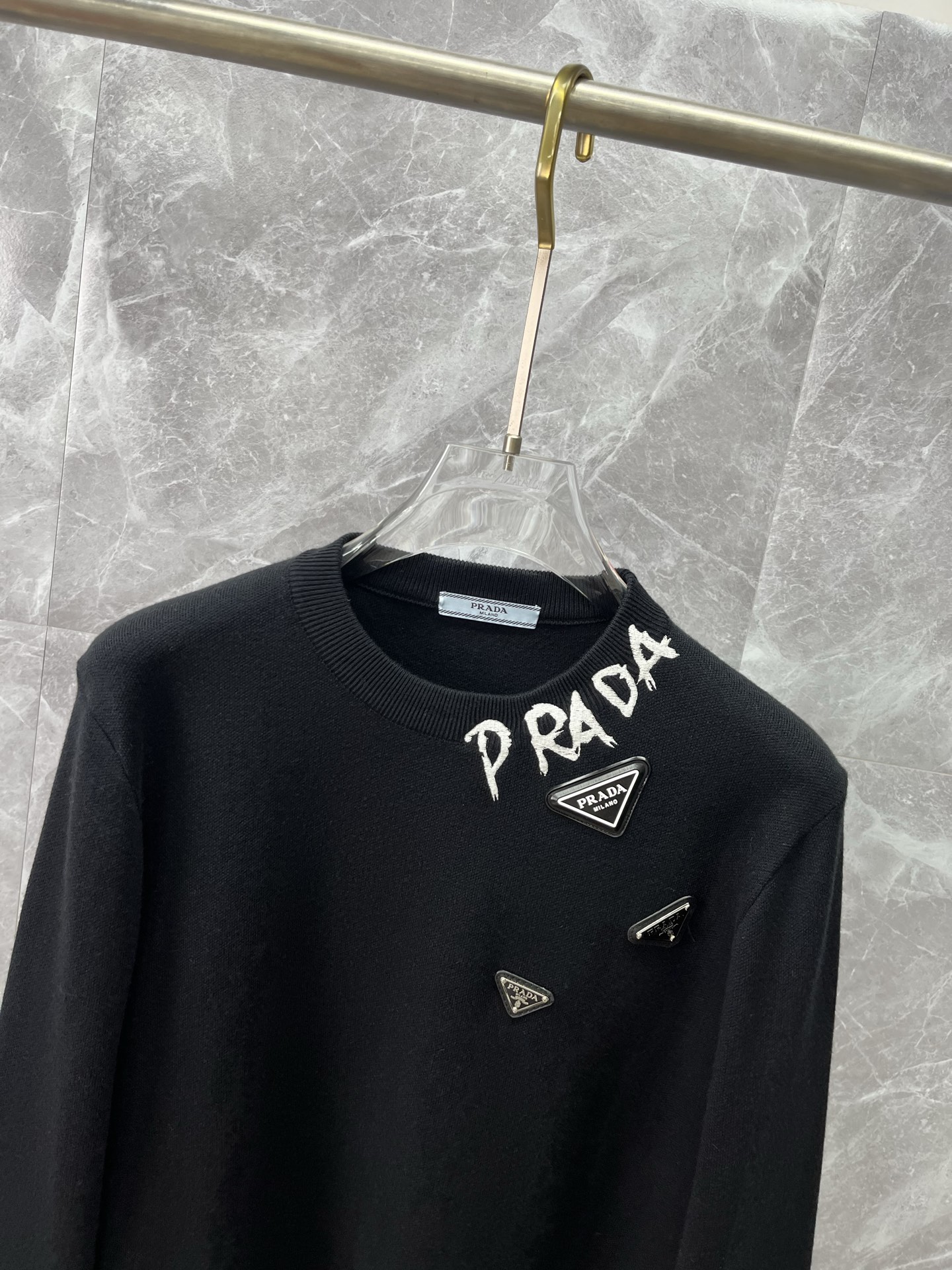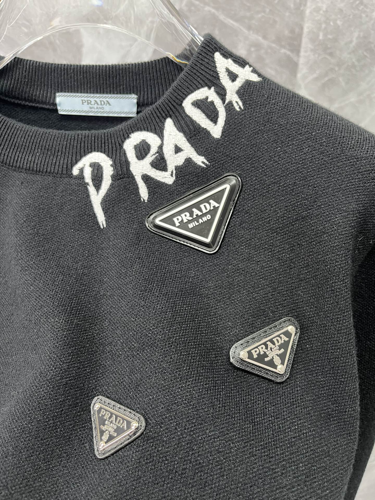 这款衣服是AAAAA 1:1 质量 (非常棒). 使用了和原版一模一样的材料. 商标部分也保持了和普拉达/Prada一样. 图片拍摄是实物衣服拍摄, 您所收到的实物保证和我们图片一模一样.