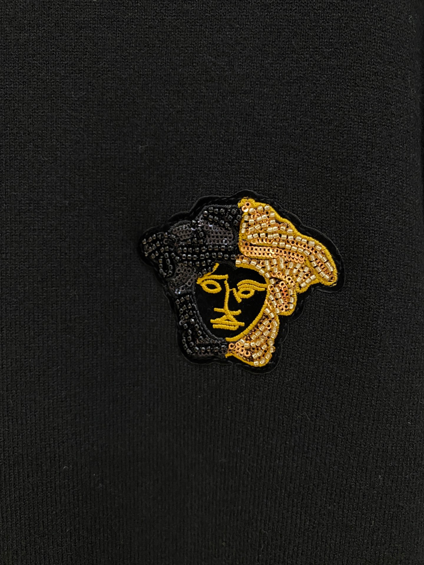 这款衣服是AAAAA 1:1 质量 (非常棒). 使用了和原版一模一样的材料. 商标部分也保持了和范思哲/Versace一样. 图片拍摄是实物衣服拍摄, 您所收到的实物保证和我们图片一模一样.