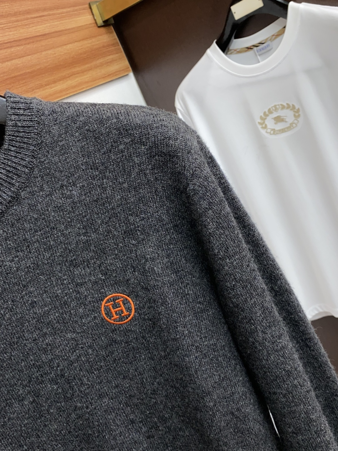 这款衣服是AAAAA 1:1 质量 (非常棒). 使用了和原版一模一样的材料. 商标部分也保持了和爱马仕/Hermes一样. 图片拍摄是实物衣服拍摄, 您所收到的实物保证和我们图片一模一样.