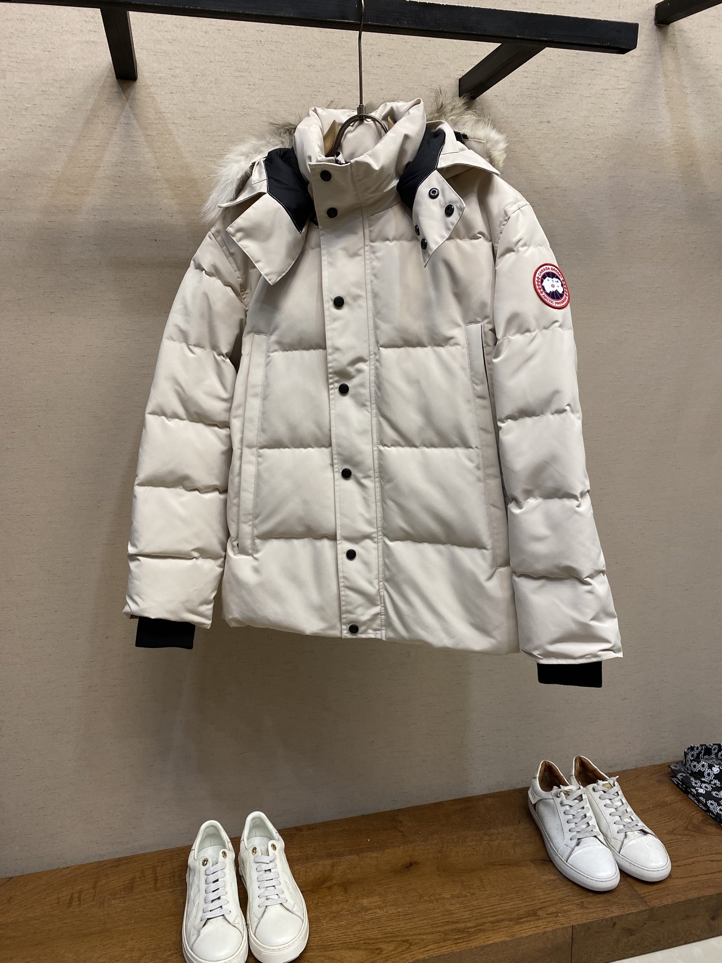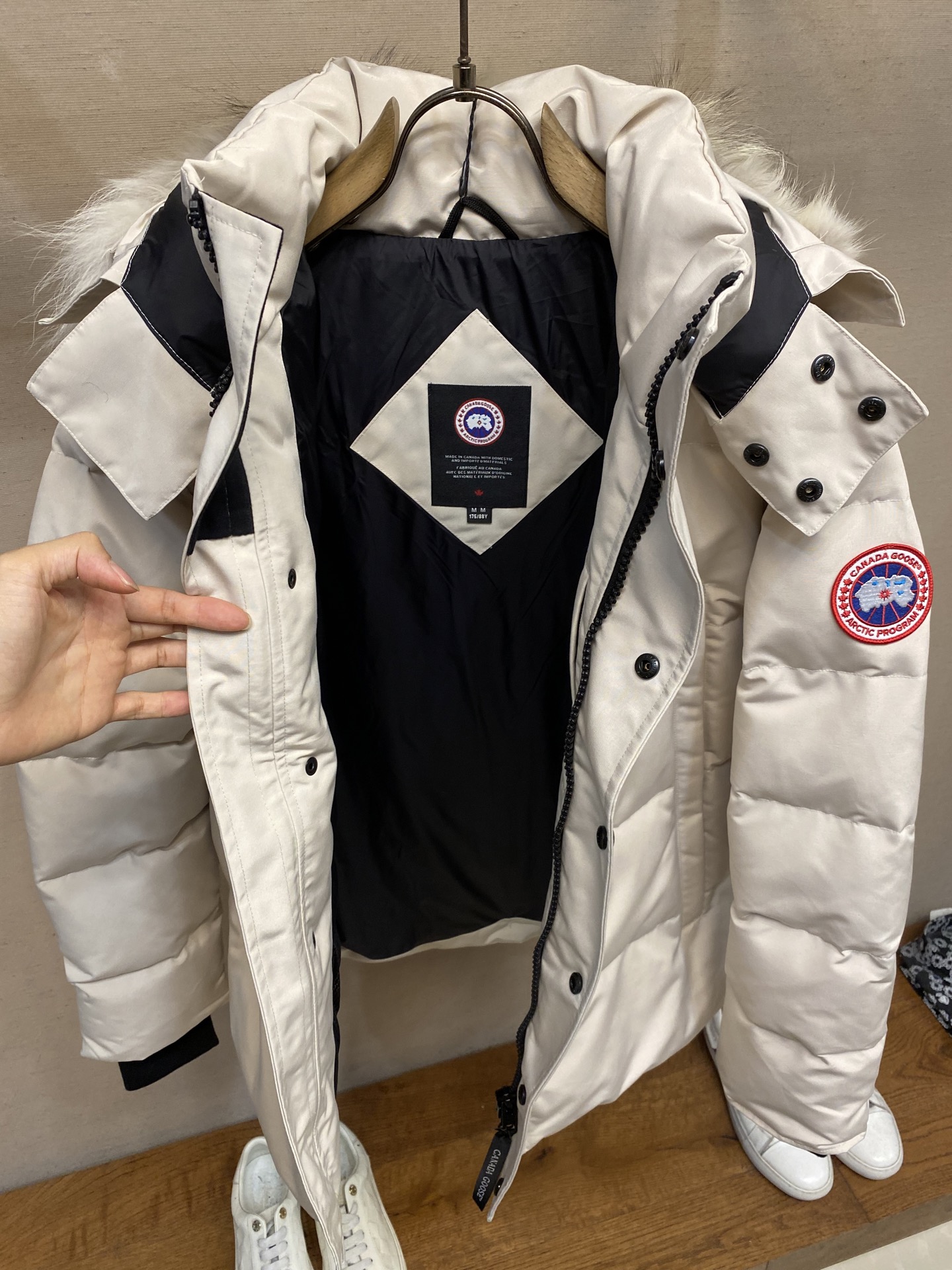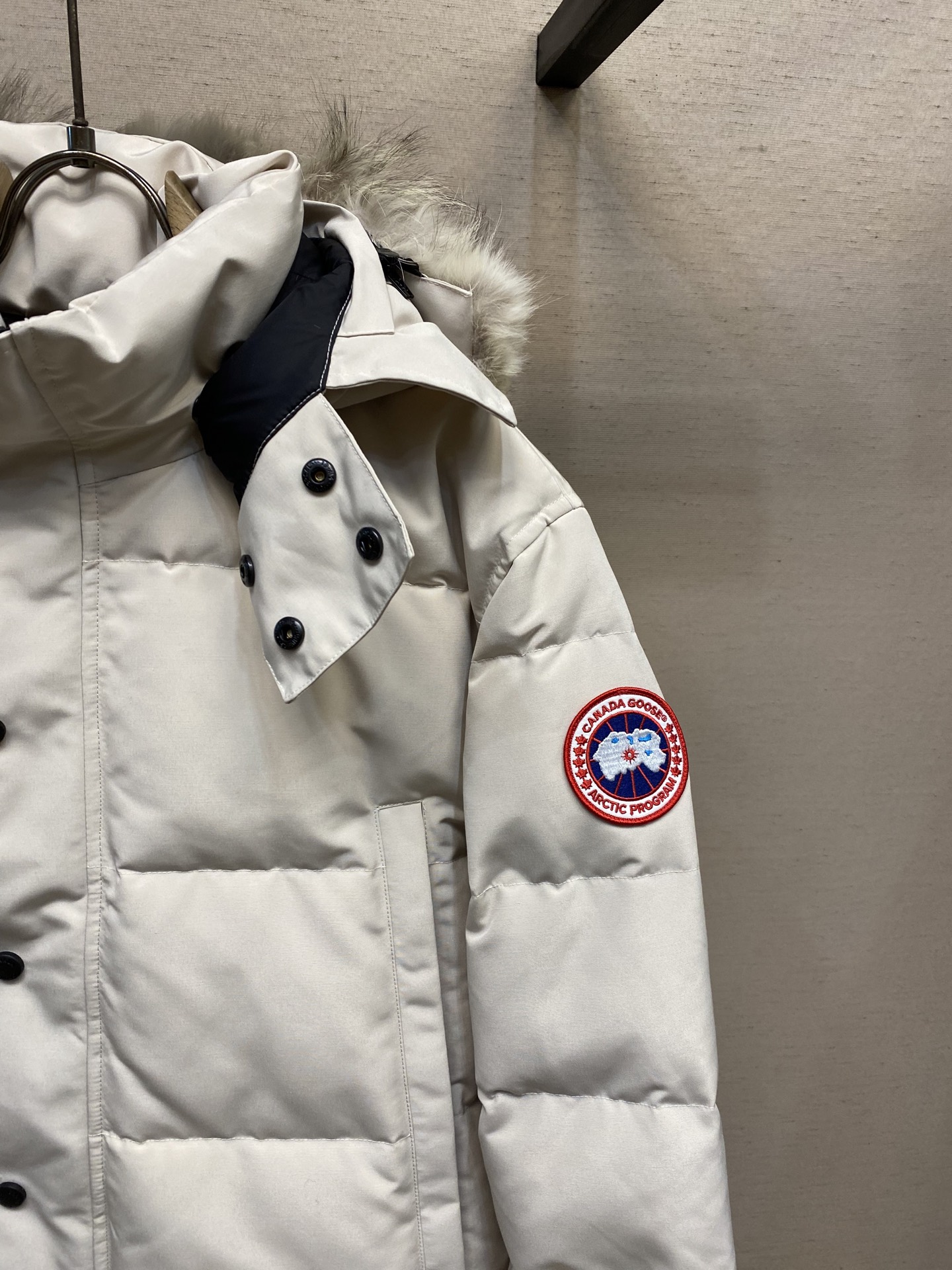 这款衣服是AAAAA 1:1 质量 (非常棒). 使用了和原版一模一样的材料. 商标部分也保持了和Canada Goose一样. 图片拍摄是实物衣服拍摄, 您所收到的实物保证和我们图片一模一样.