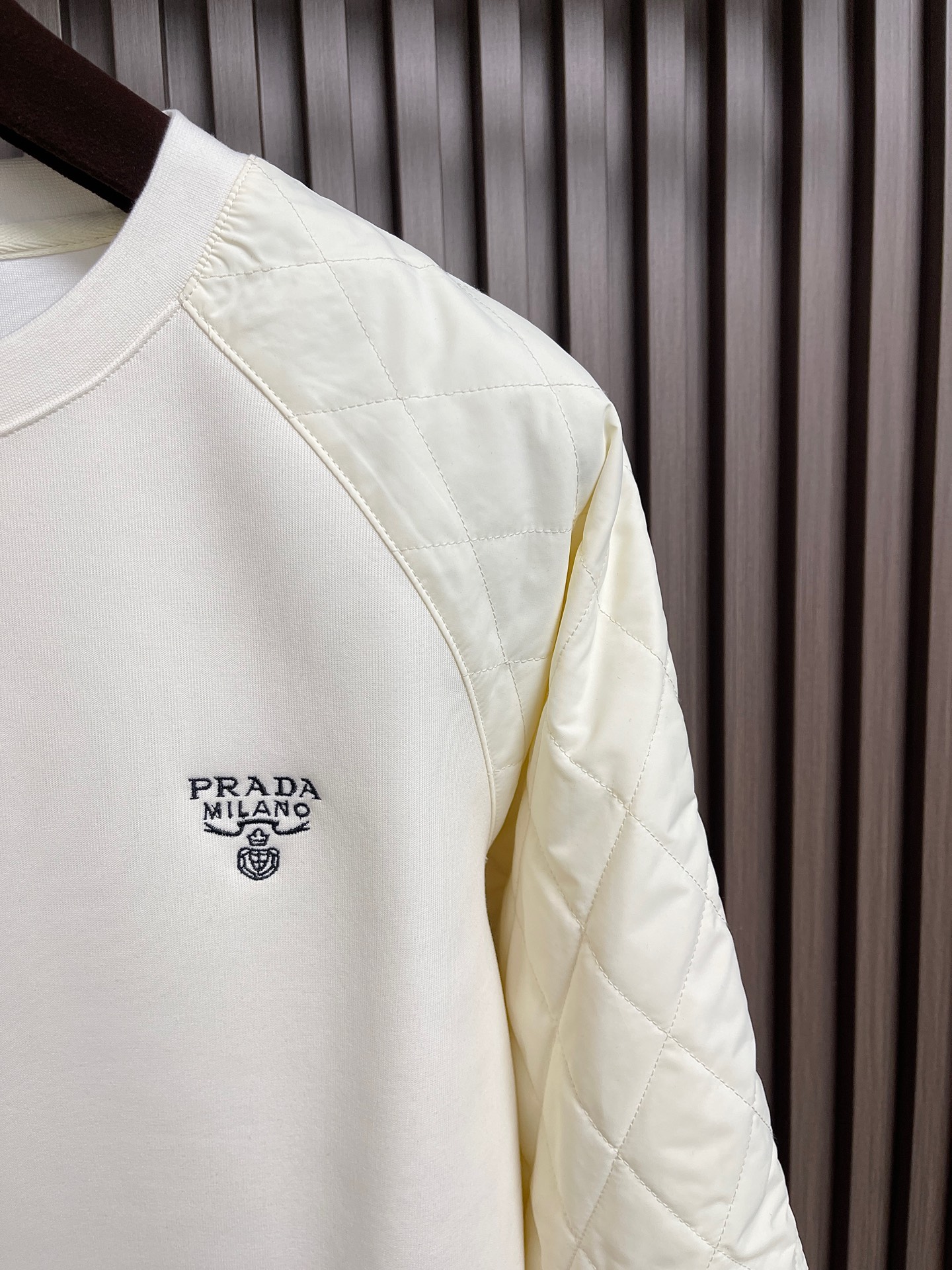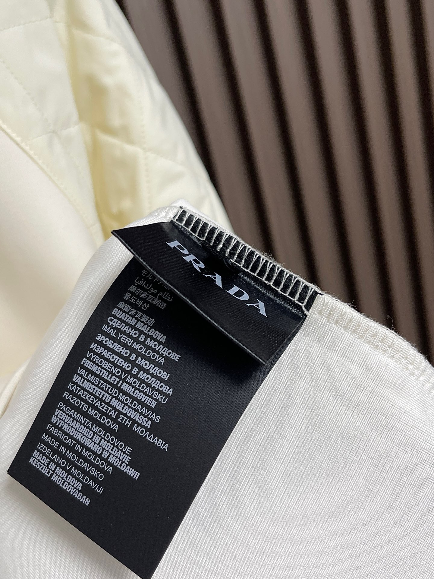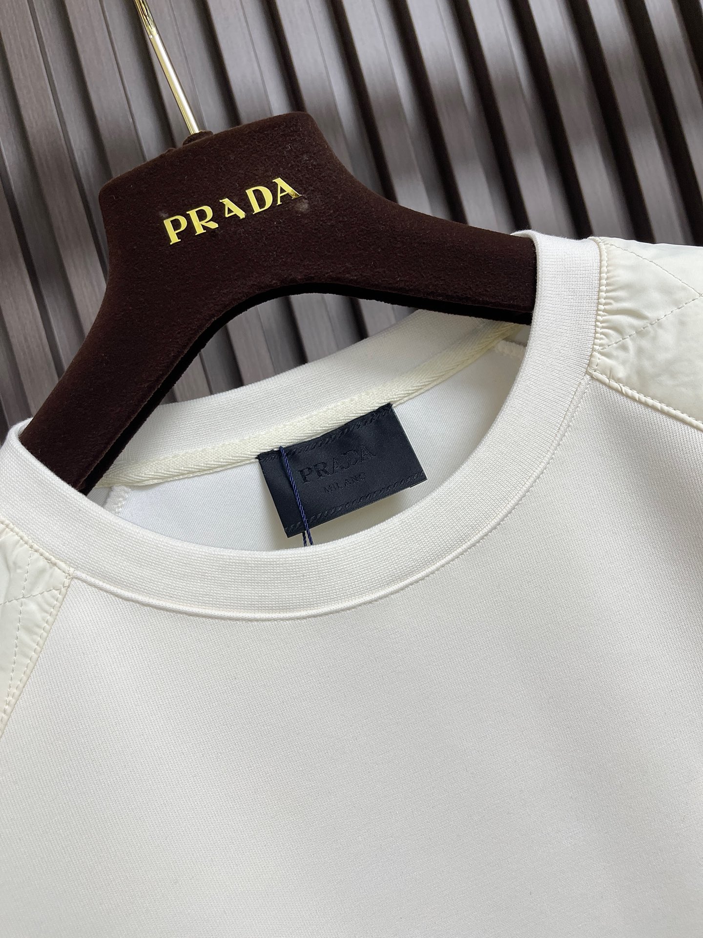 这款衣服是AAAAA 1:1 质量 (非常棒). 使用了和原版一模一样的材料. 商标部分也保持了和普拉达/Prada一样. 图片拍摄是实物衣服拍摄, 您所收到的实物保证和我们图片一模一样.