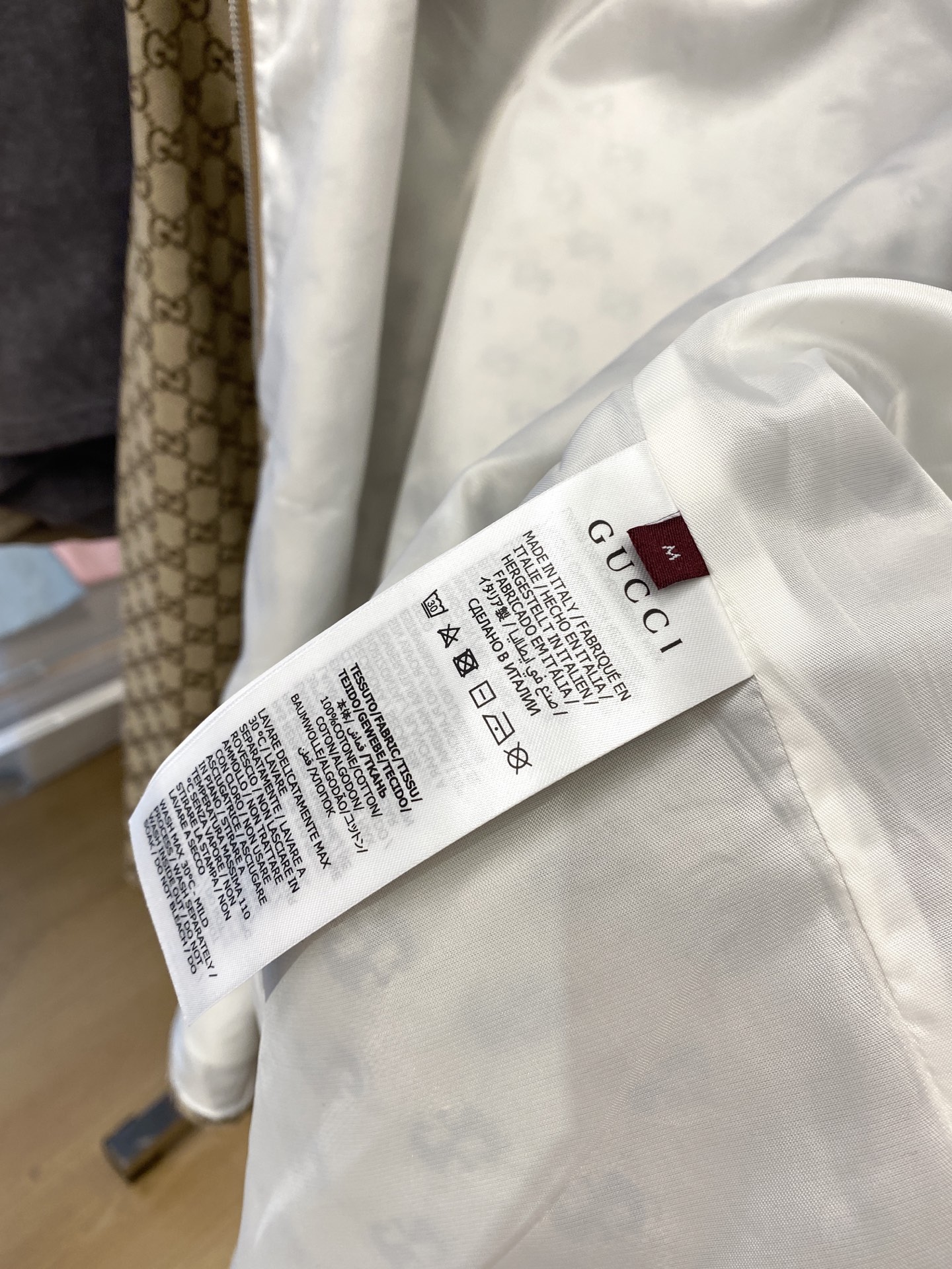 这款衣服是AAAAA 1:1 质量 (非常棒). 使用了和原版一模一样的材料. 商标部分也保持了和古奇/Gucci一样. 图片拍摄是实物衣服拍摄, 您所收到的实物保证和我们图片一模一样.