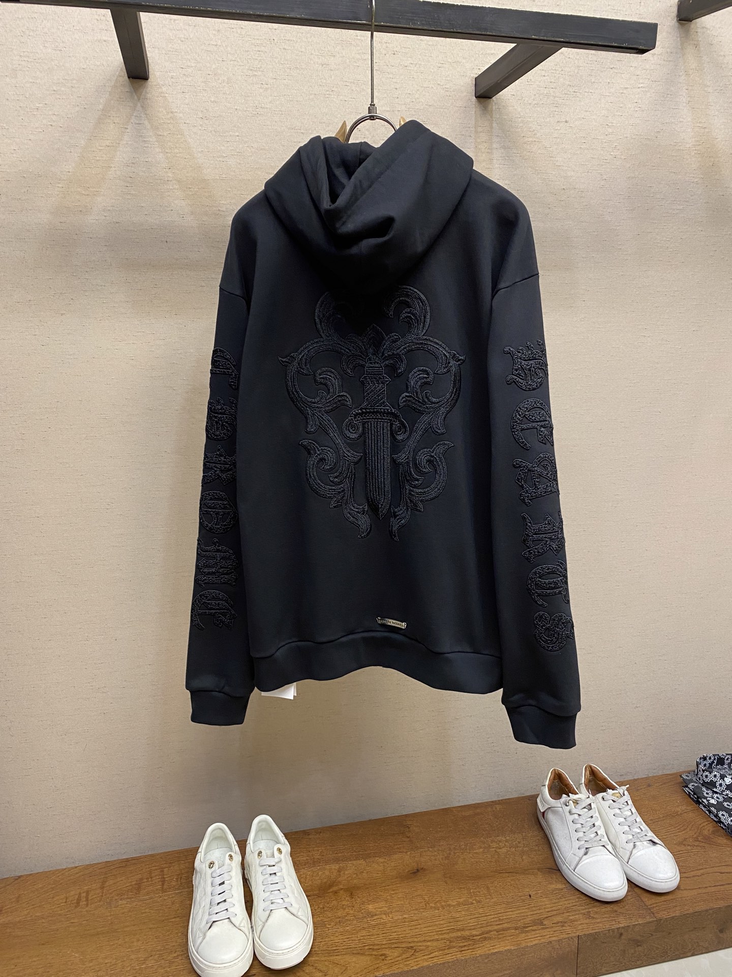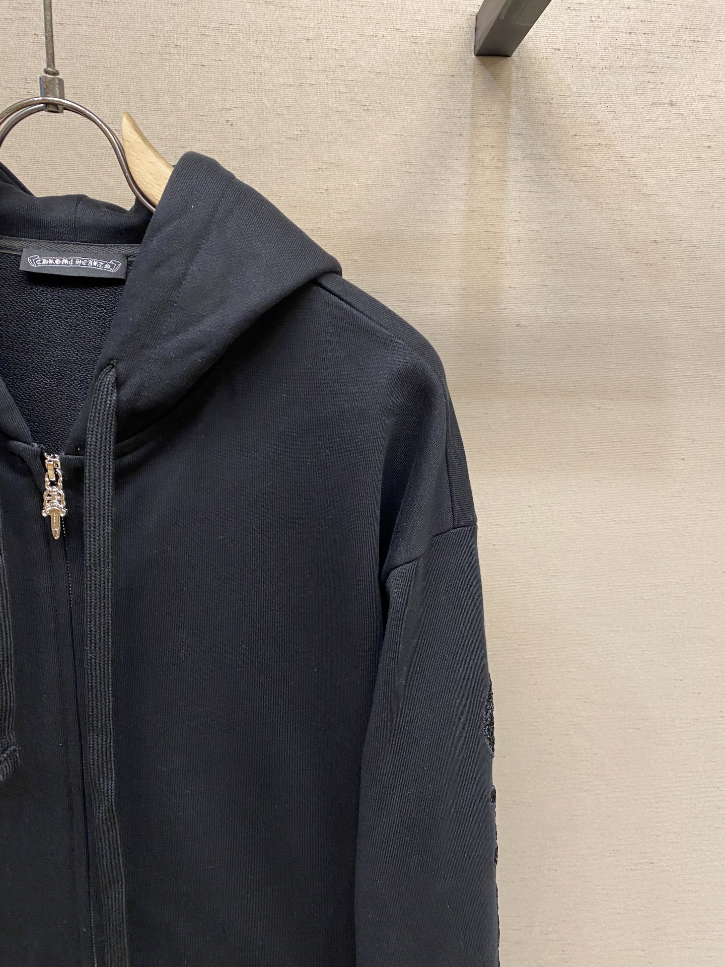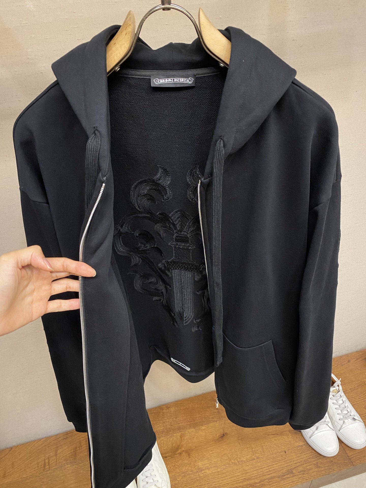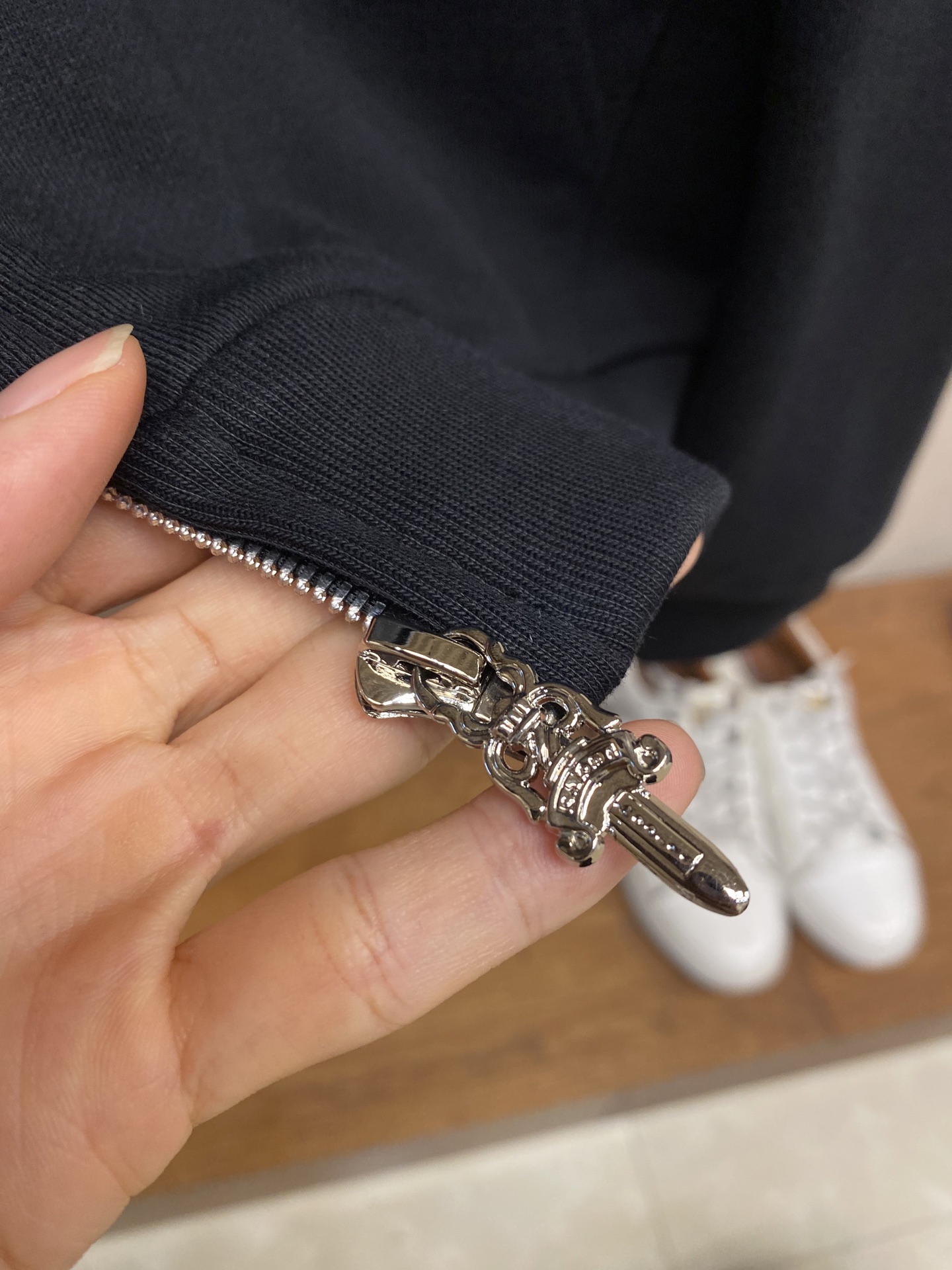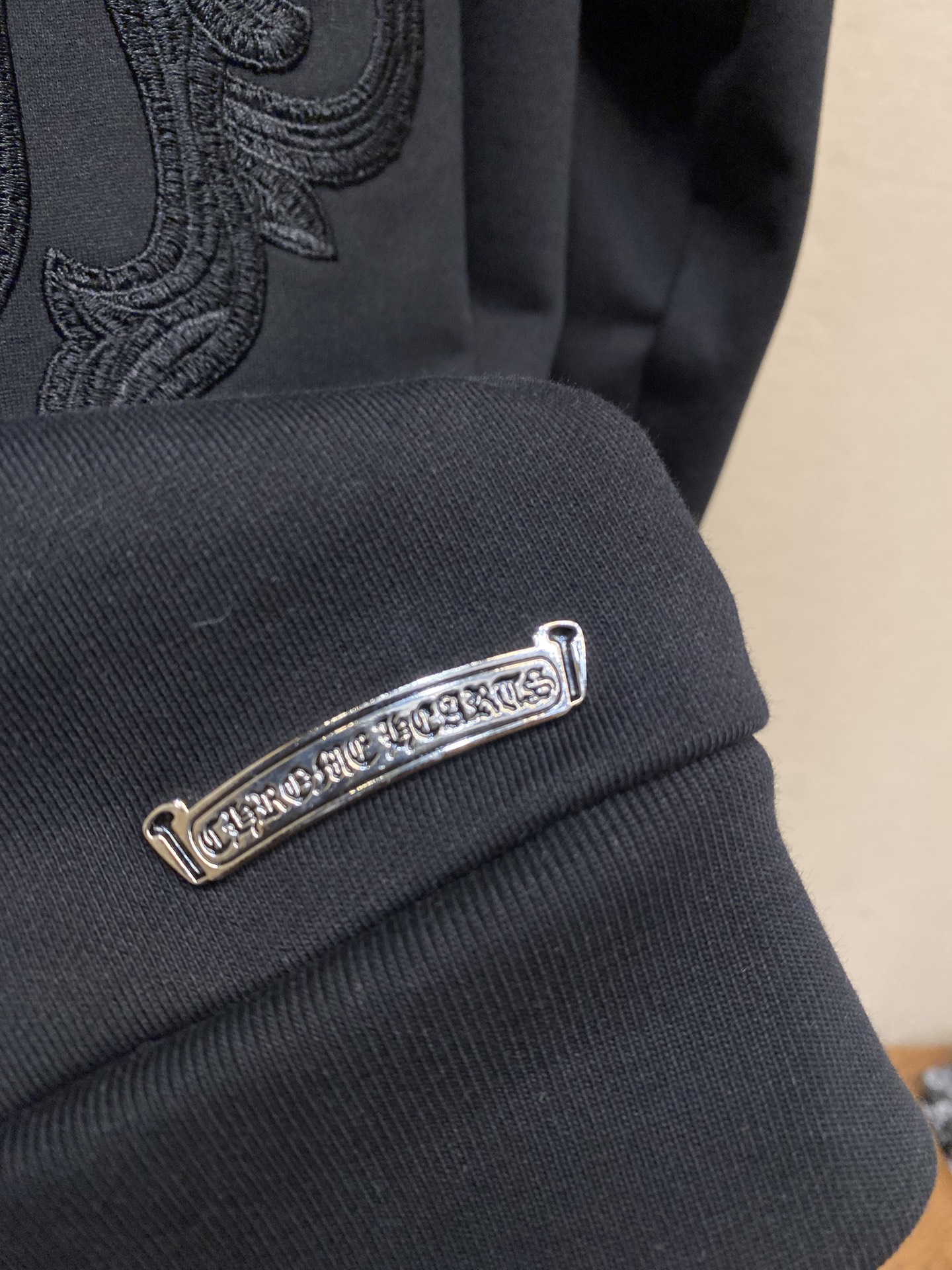 这款衣服是AAAAA 1:1 质量 (非常棒). 使用了和原版一模一样的材料. 商标部分也保持了和克罗心/Chrome Hearts一样. 图片拍摄是实物衣服拍摄, 您所收到的实物保证和我们图片一模一样.