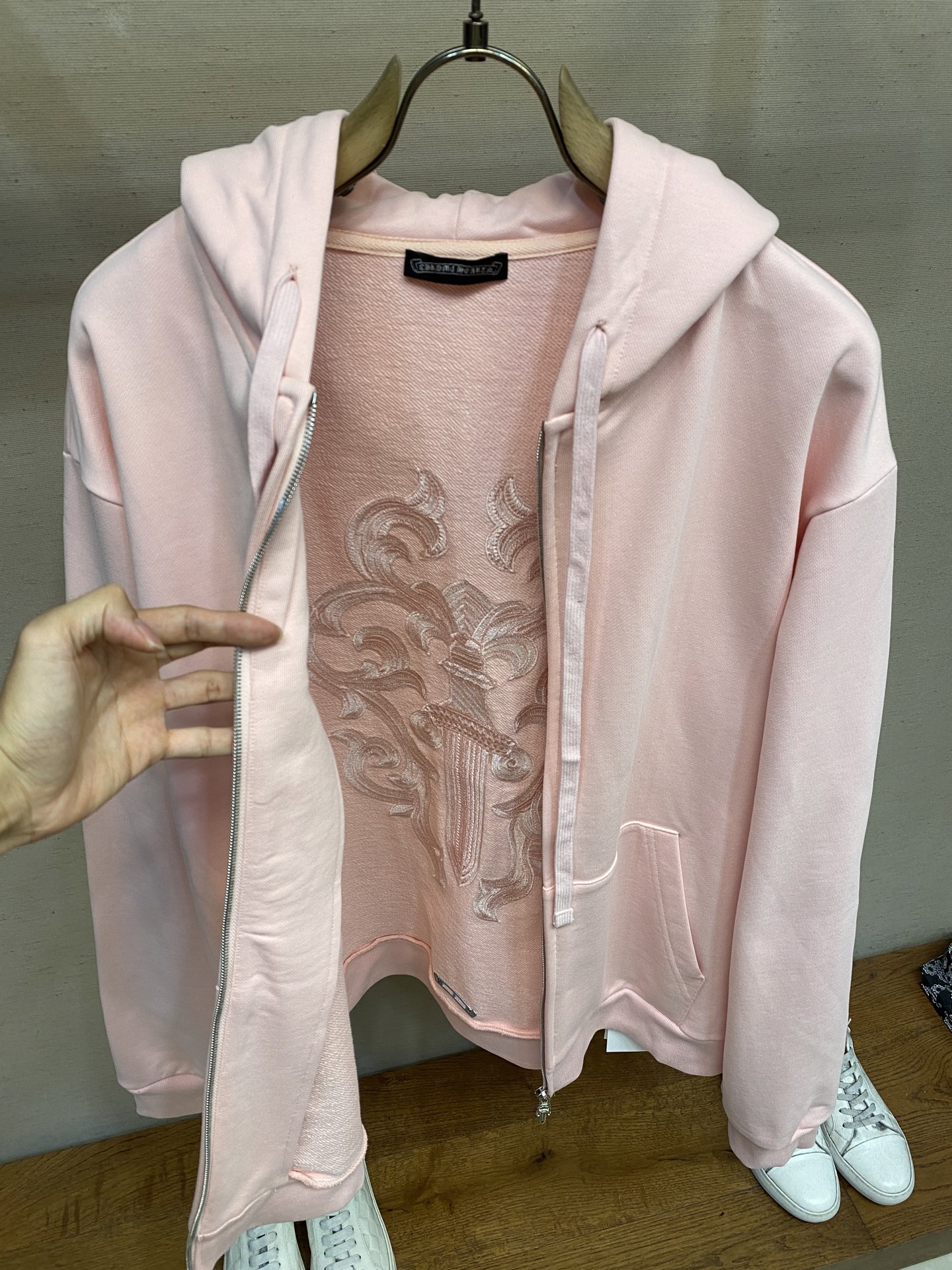 这款衣服是AAAAA 1:1 质量 (非常棒). 使用了和原版一模一样的材料. 商标部分也保持了和克罗心/Chrome Hearts一样. 图片拍摄是实物衣服拍摄, 您所收到的实物保证和我们图片一模一样.