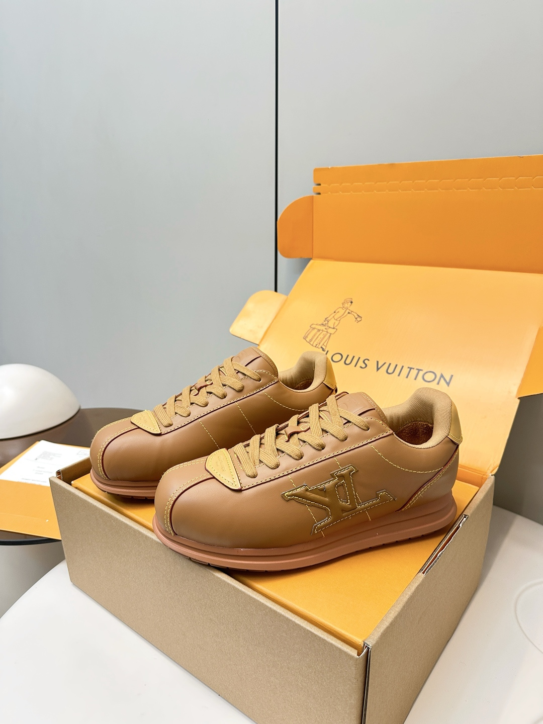 这款鞋子是AAAAA 1:1 质量 (非常棒). 使用了和原版一模一样的材料. 商标部分也保持了和路易威登/Louis Vuitton一样. 图片拍摄是实物鞋子拍摄, 您所收到的实物保证和我们图片一模一样.