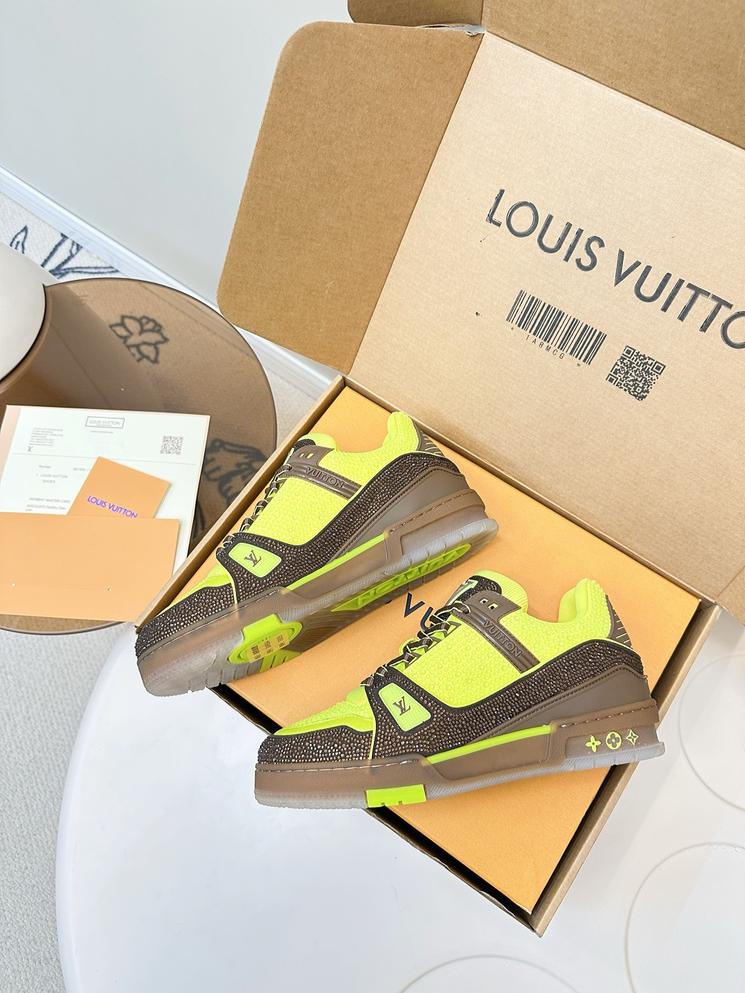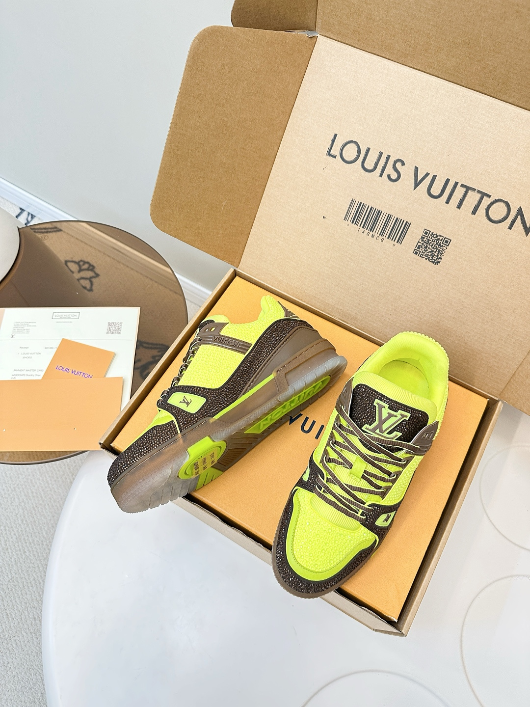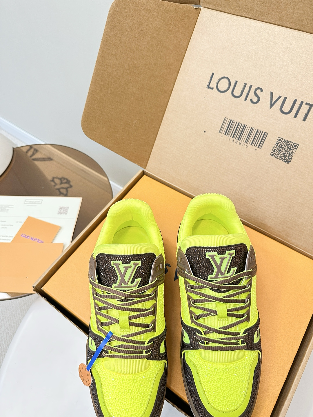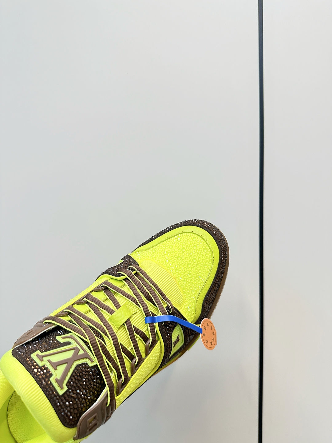 这款鞋子是AAAAA 1:1 质量 (非常棒). 使用了和原版一模一样的材料. 商标部分也保持了和路易威登/Louis Vuitton一样. 图片拍摄是实物鞋子拍摄, 您所收到的实物保证和我们图片一模一样.