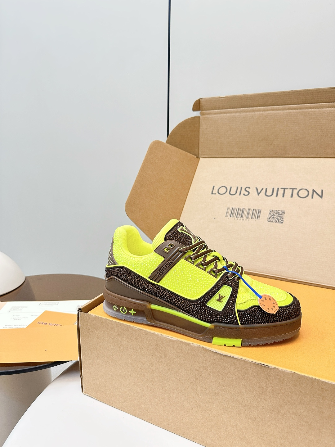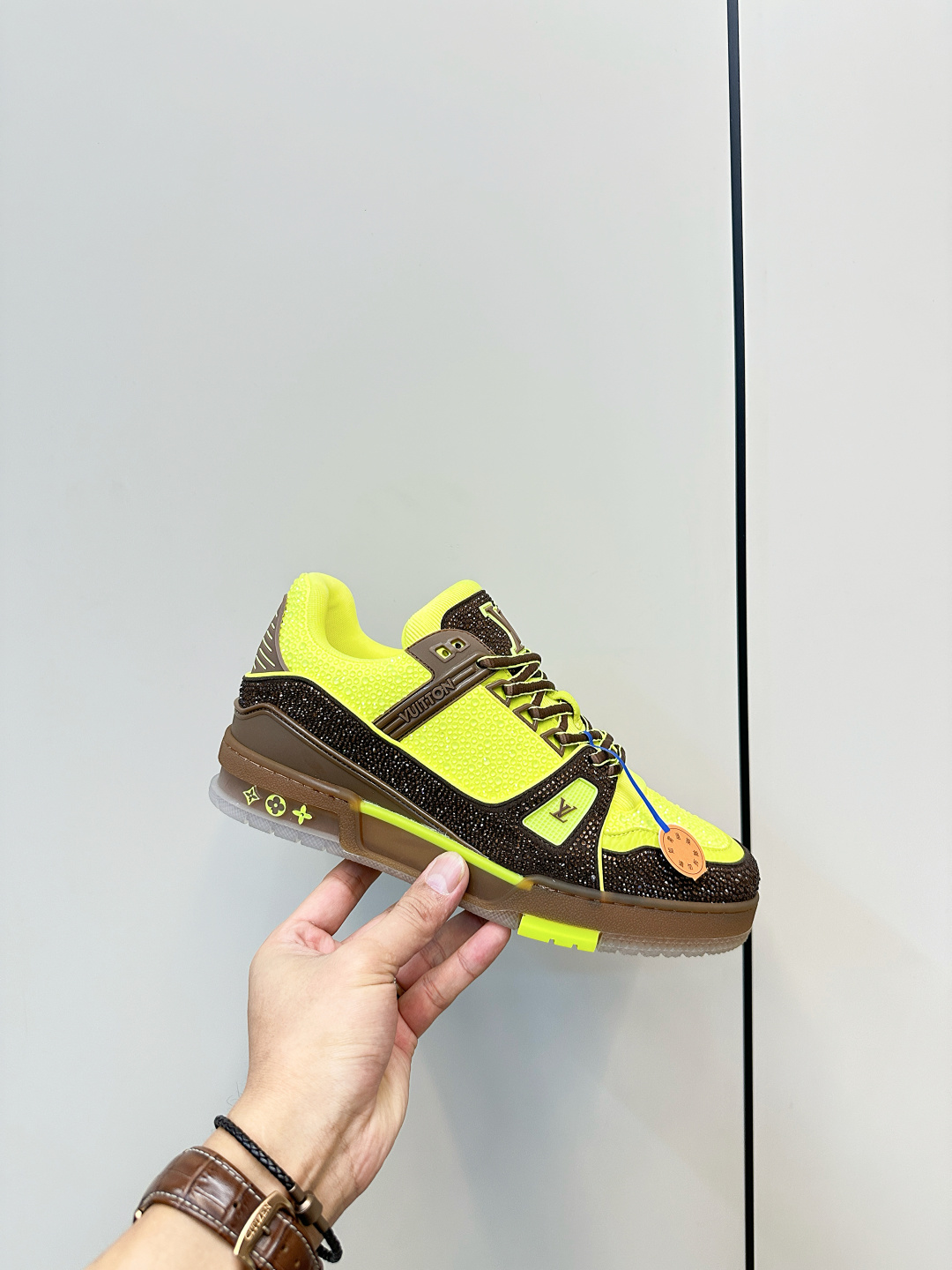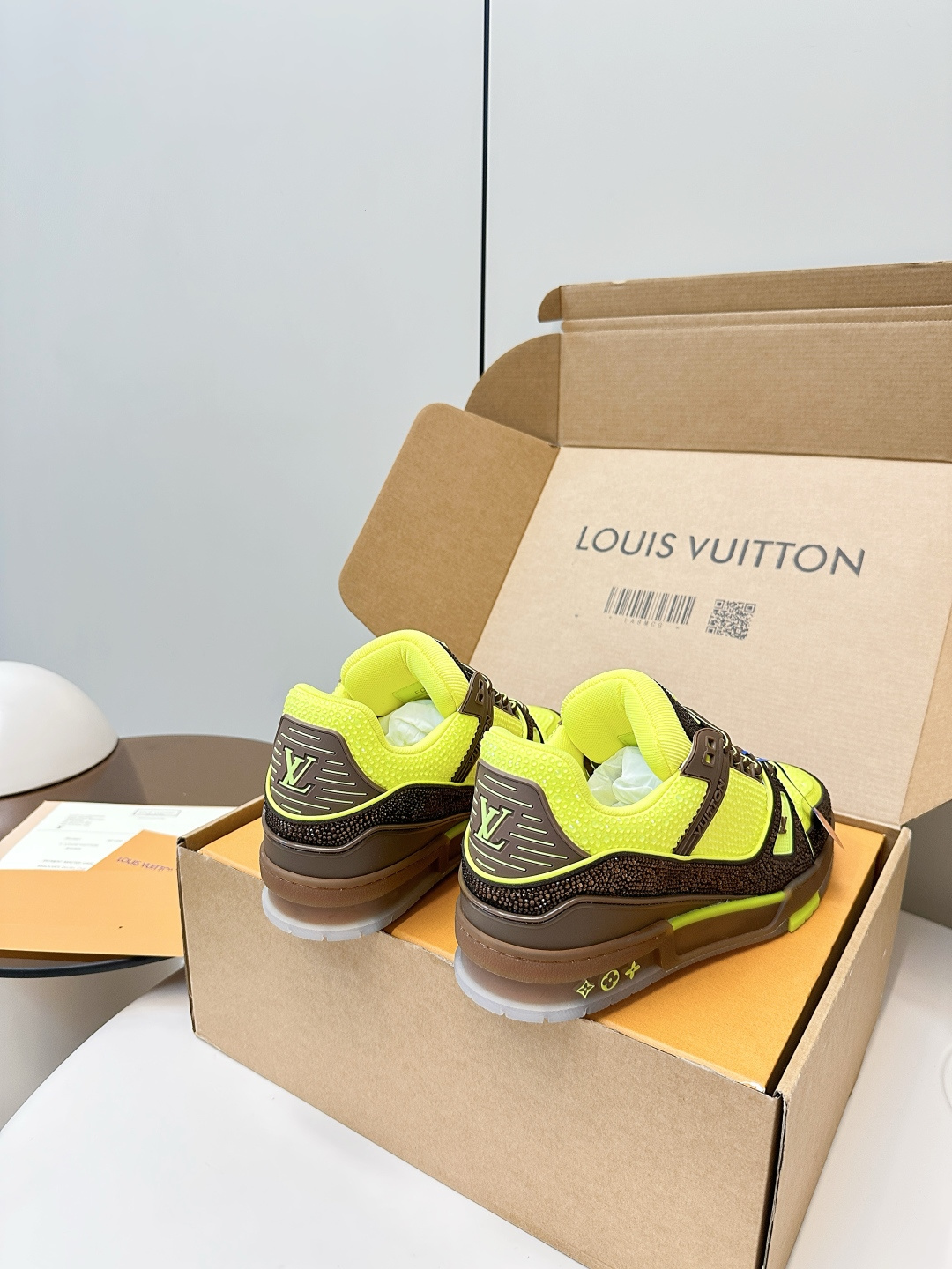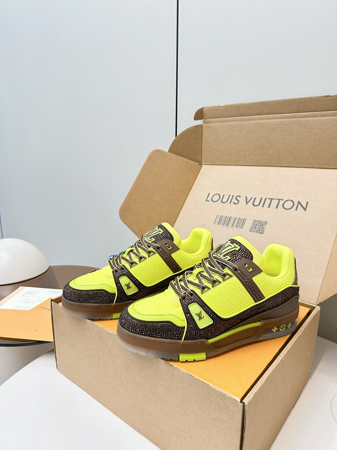 这款鞋子是AAAAA 1:1 质量 (非常棒). 使用了和原版一模一样的材料. 商标部分也保持了和路易威登/Louis Vuitton一样. 图片拍摄是实物鞋子拍摄, 您所收到的实物保证和我们图片一模一样.