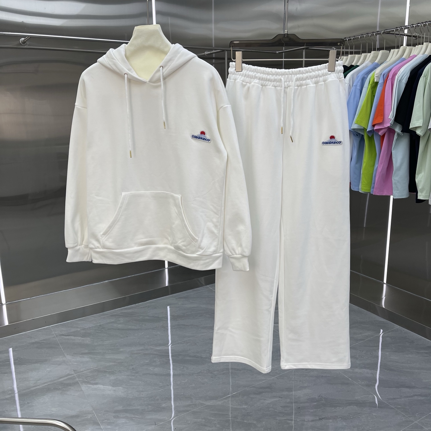 这款衣服是AAAAA 1:1 质量 (非常棒). 使用了和原版一模一样的材料. 商标部分也保持了和Casablanca一样. 图片拍摄是实物衣服拍摄, 您所收到的实物保证和我们图片一模一样.