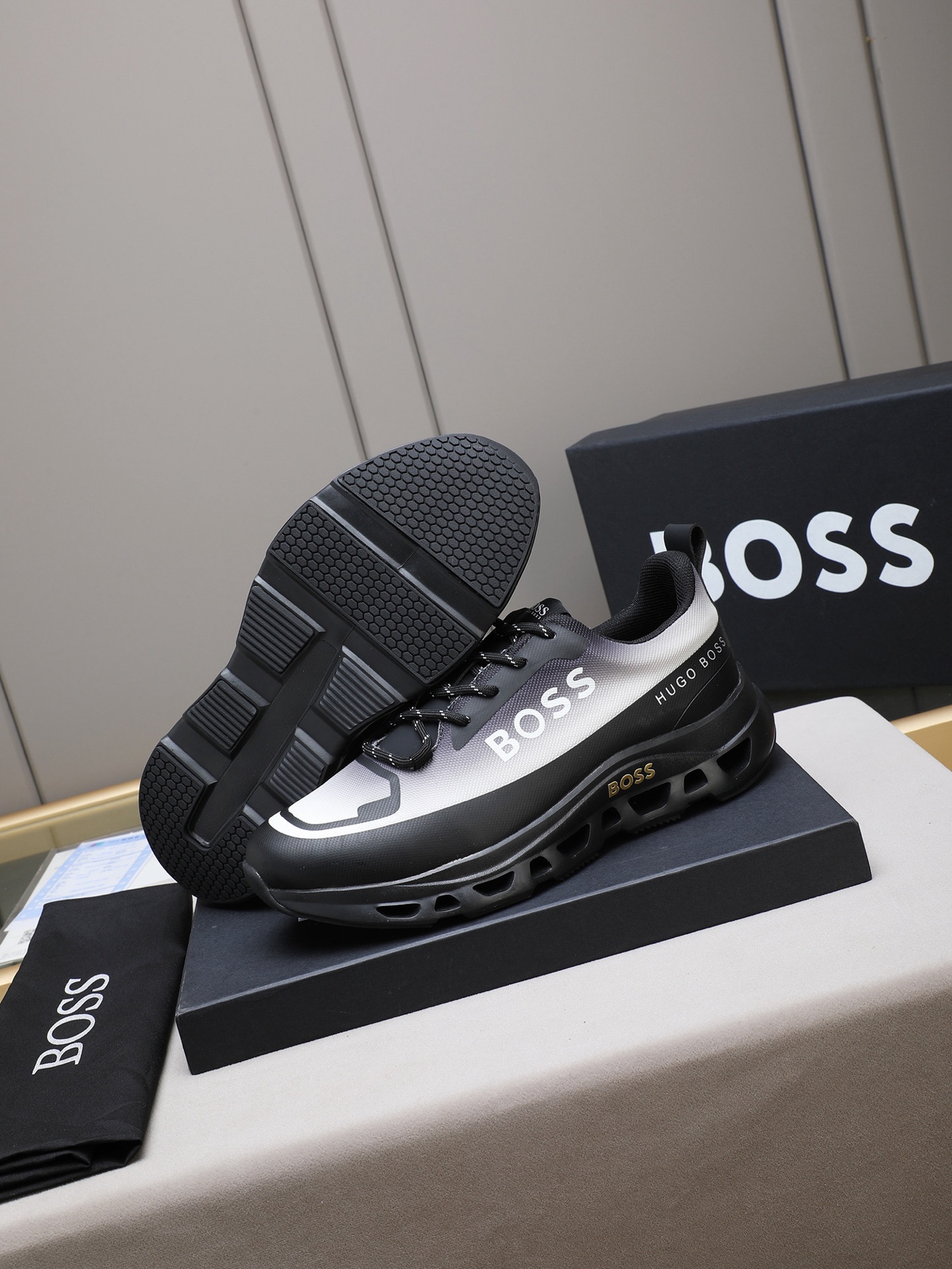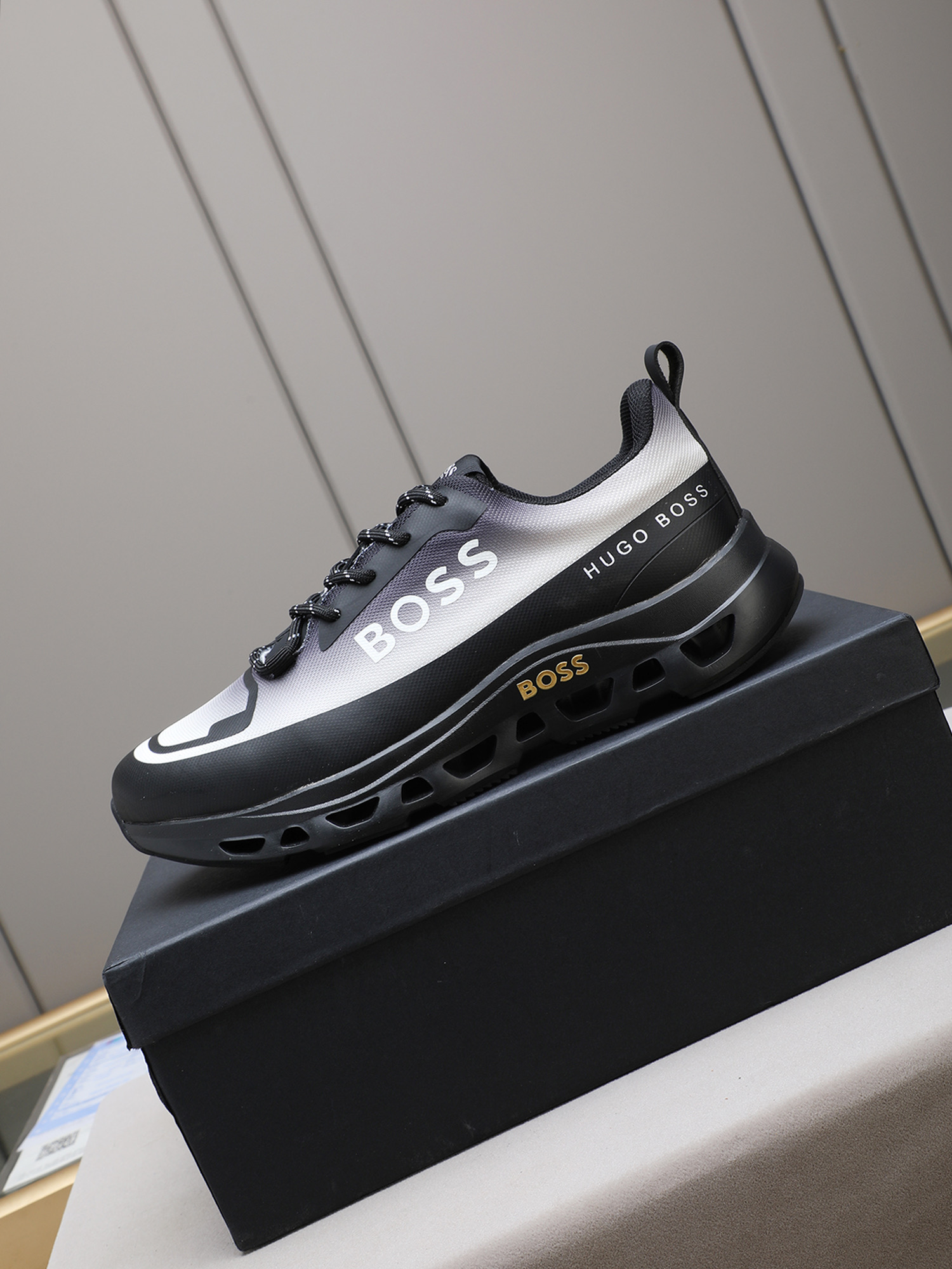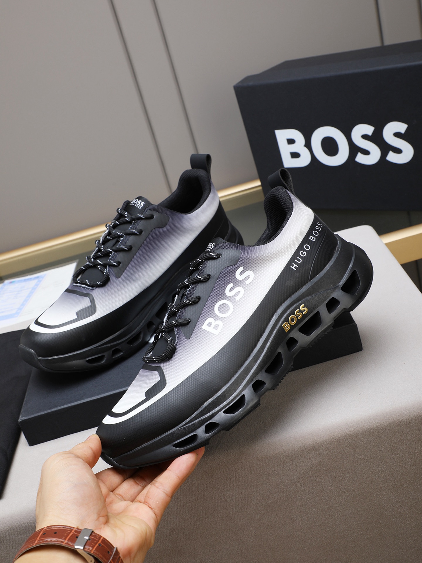 这款鞋子是AAAAA 1:1 质量 (非常棒). 使用了和原版一模一样的材料. 商标部分也保持了和BOSS一样. 图片拍摄是实物鞋子拍摄, 您所收到的实物保证和我们图片一模一样.