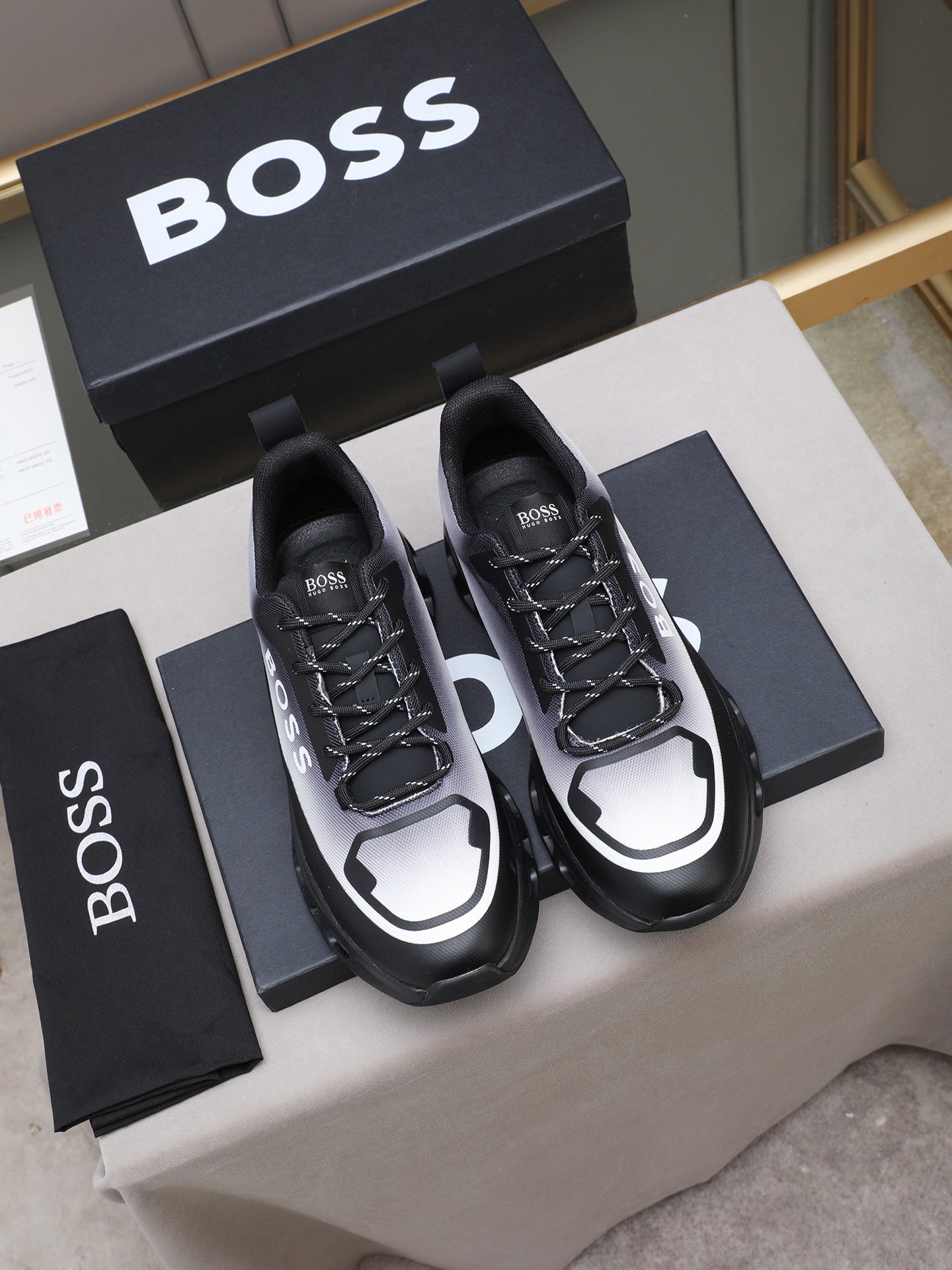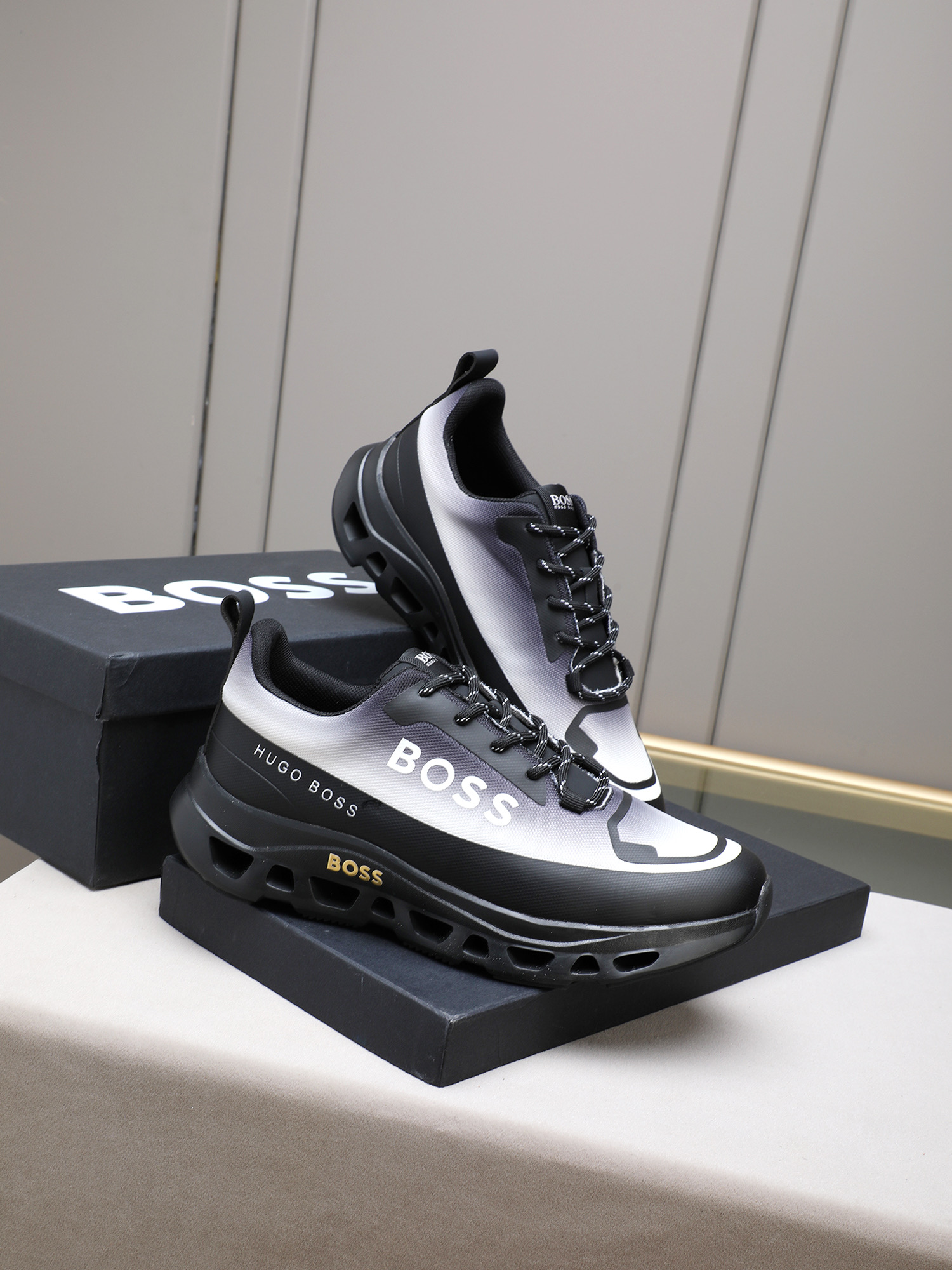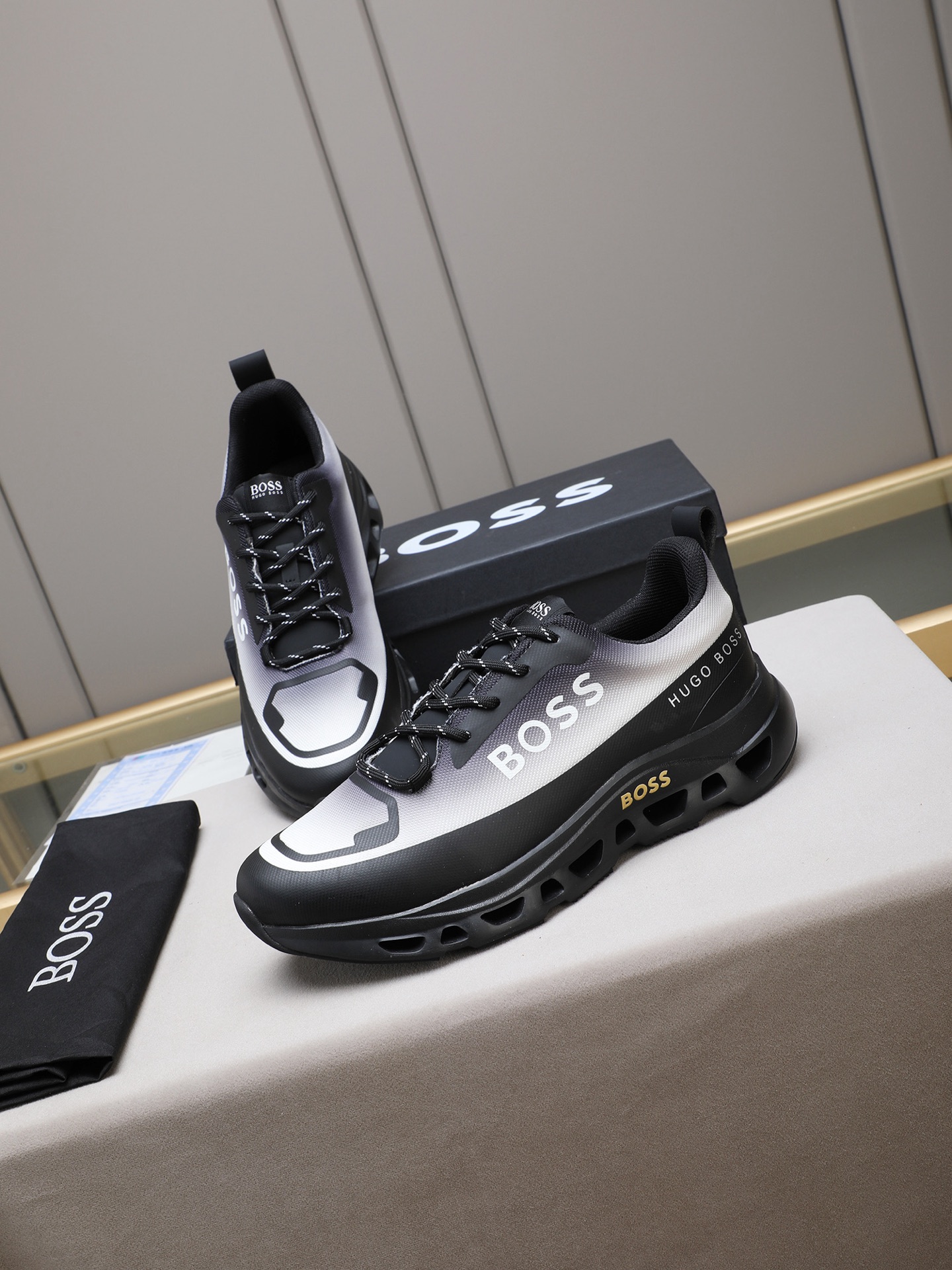 这款鞋子是AAAAA 1:1 质量 (非常棒). 使用了和原版一模一样的材料. 商标部分也保持了和BOSS一样. 图片拍摄是实物鞋子拍摄, 您所收到的实物保证和我们图片一模一样.