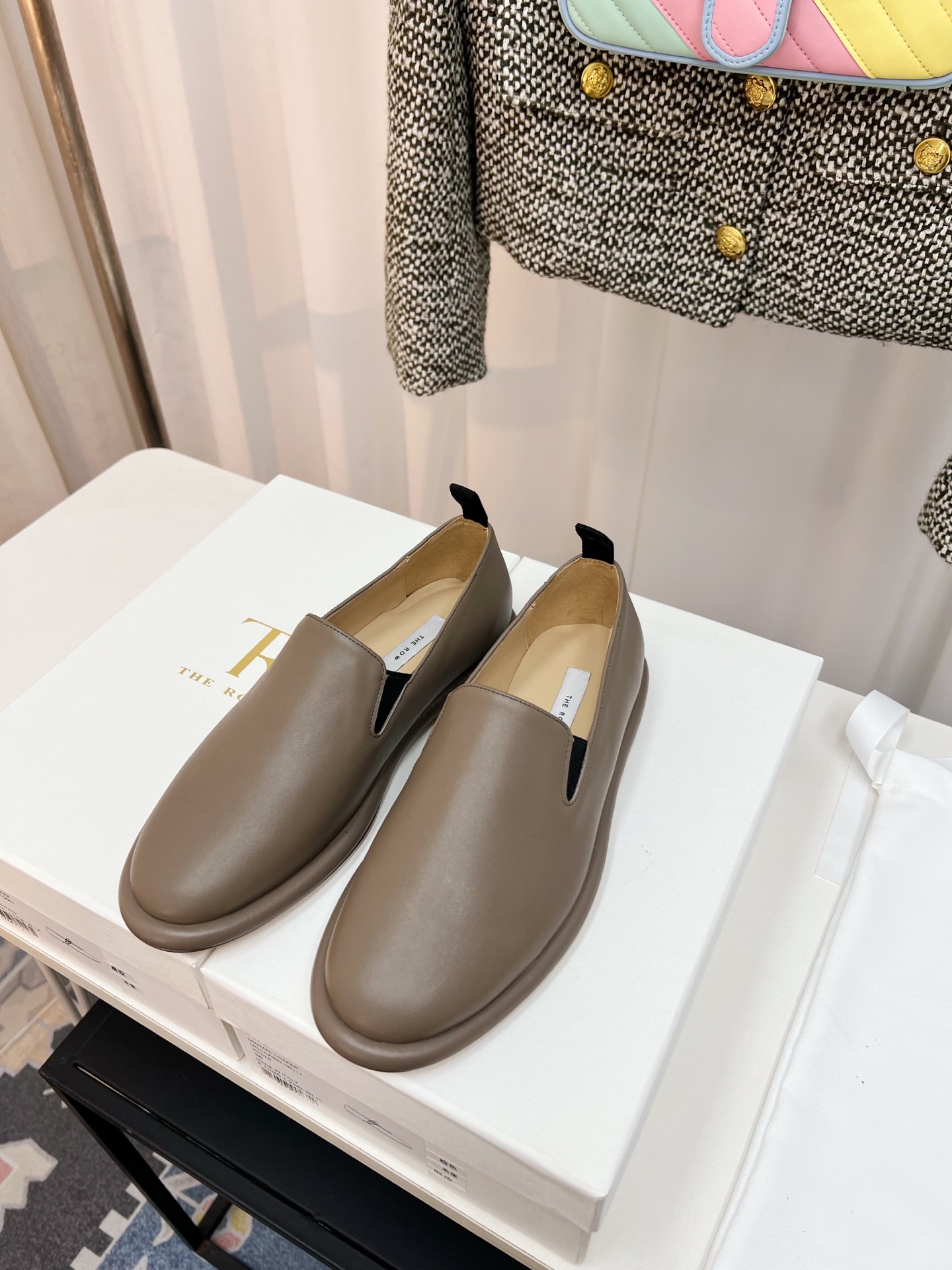 这款鞋子是AAAAA 1:1 质量 (非常棒). 使用了和原版一模一样的材料. 商标部分也保持了和The Row一样. 图片拍摄是实物鞋子拍摄, 您所收到的实物保证和我们图片一模一样.