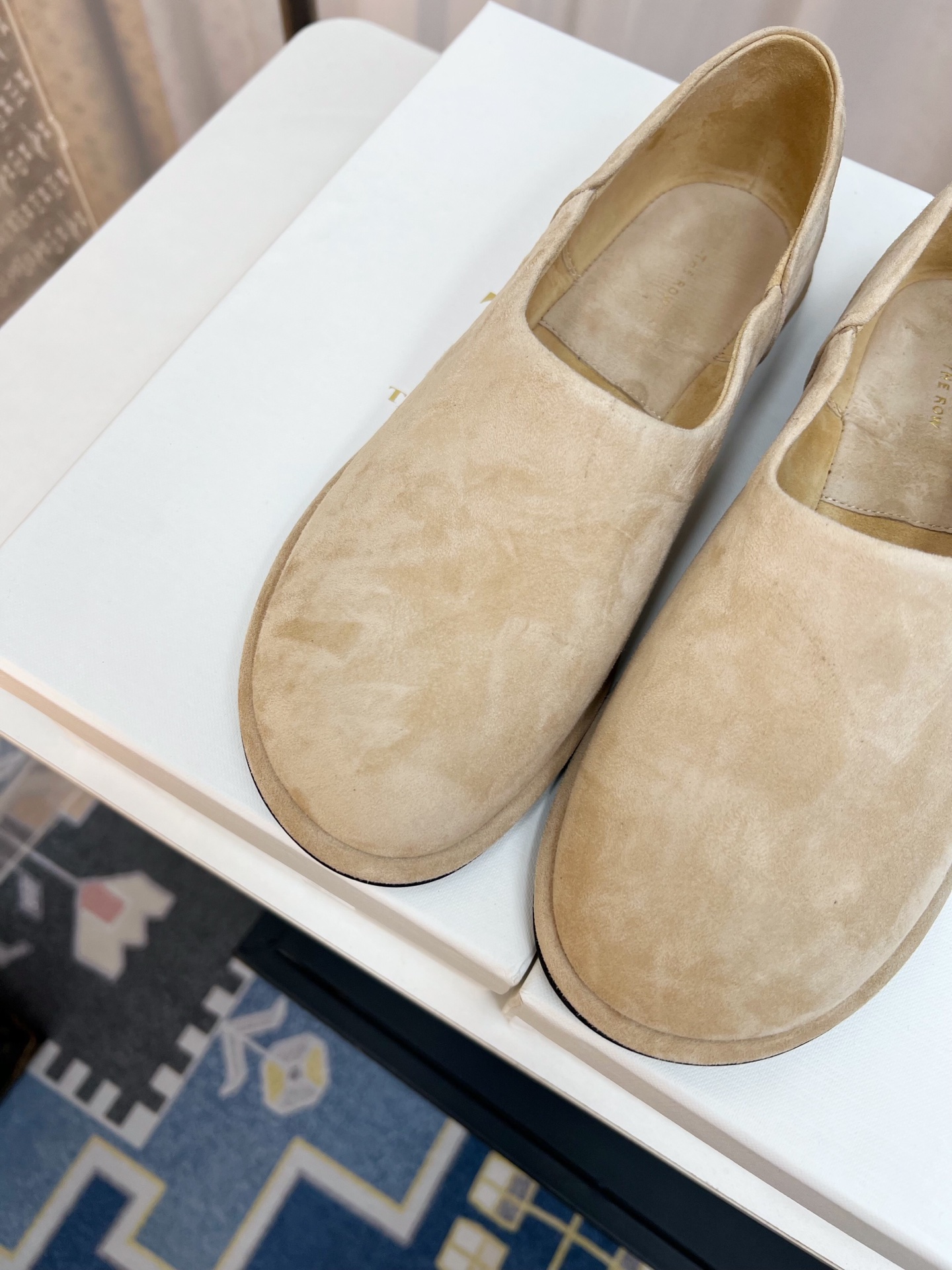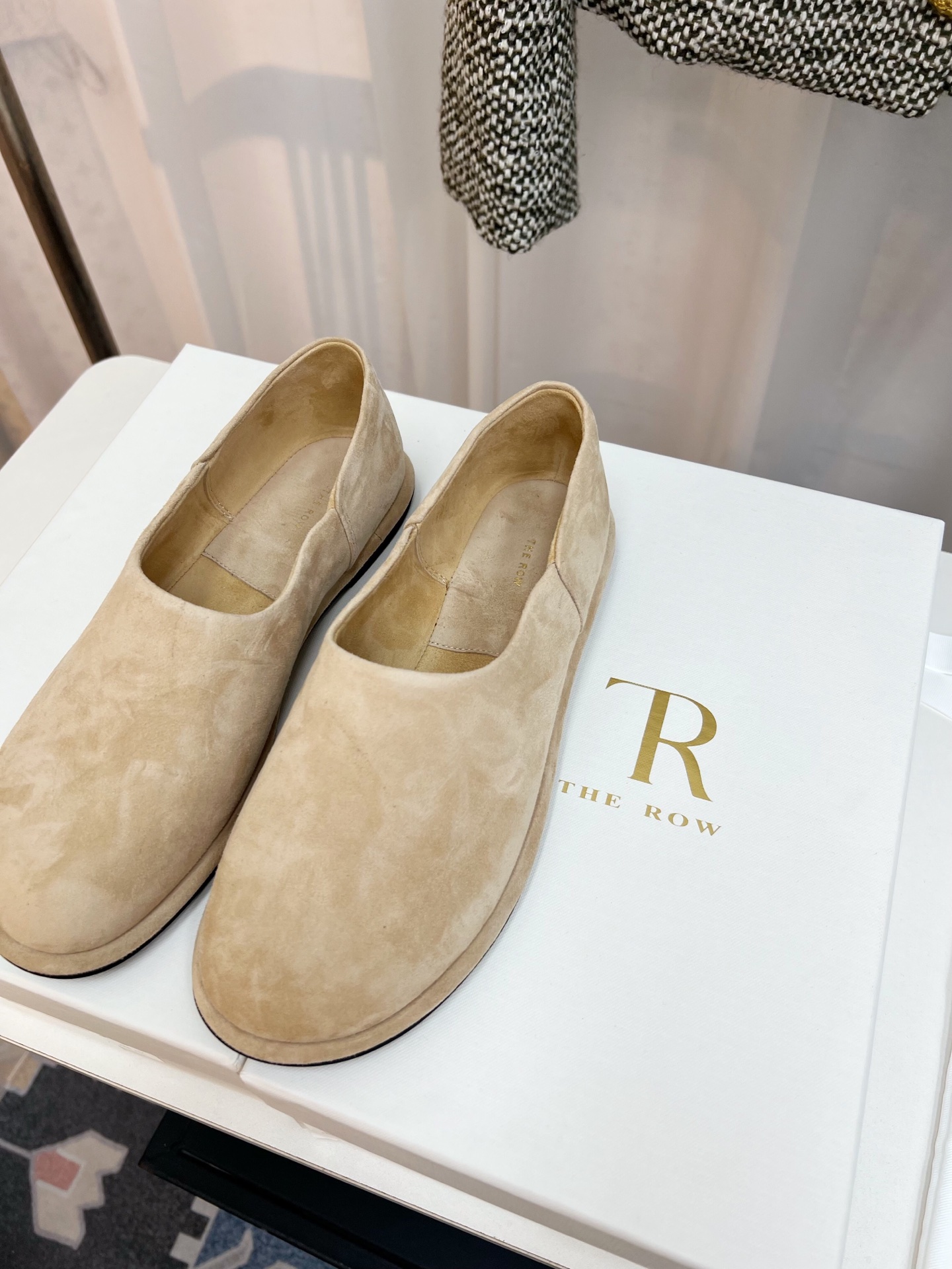 这款鞋子是AAAAA 1:1 质量 (非常棒). 使用了和原版一模一样的材料. 商标部分也保持了和The Row一样. 图片拍摄是实物鞋子拍摄, 您所收到的实物保证和我们图片一模一样.