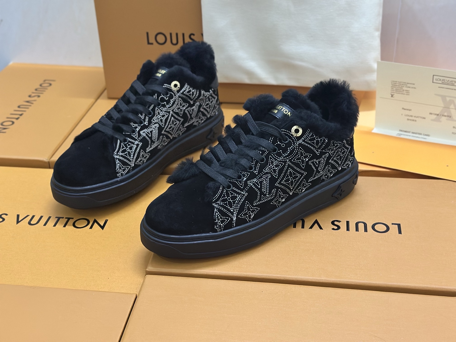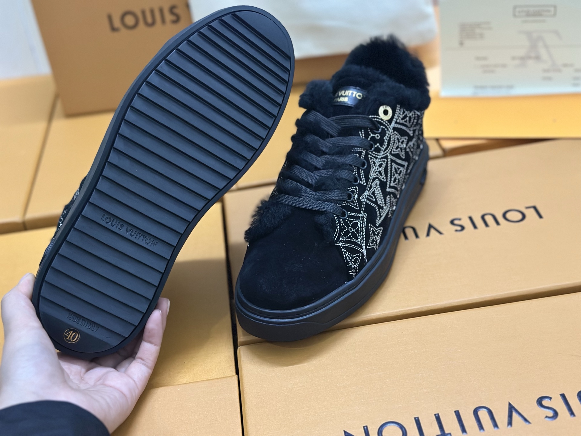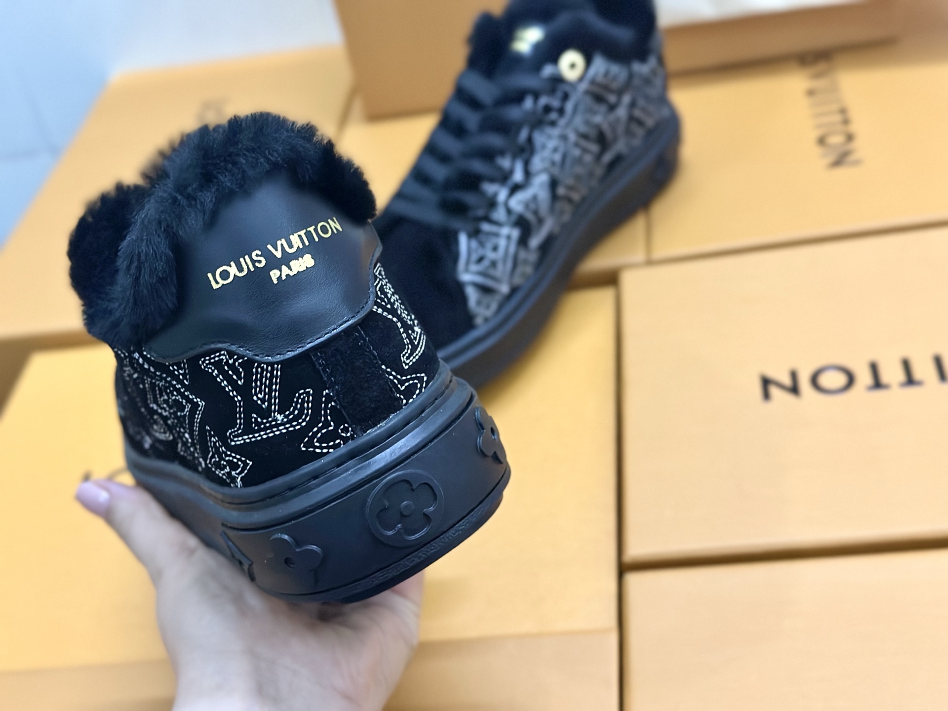 这款鞋子是AAAAA 1:1 质量 (非常棒). 使用了和原版一模一样的材料. 商标部分也保持了和路易威登/Louis Vuitton一样. 图片拍摄是实物鞋子拍摄, 您所收到的实物保证和我们图片一模一样.