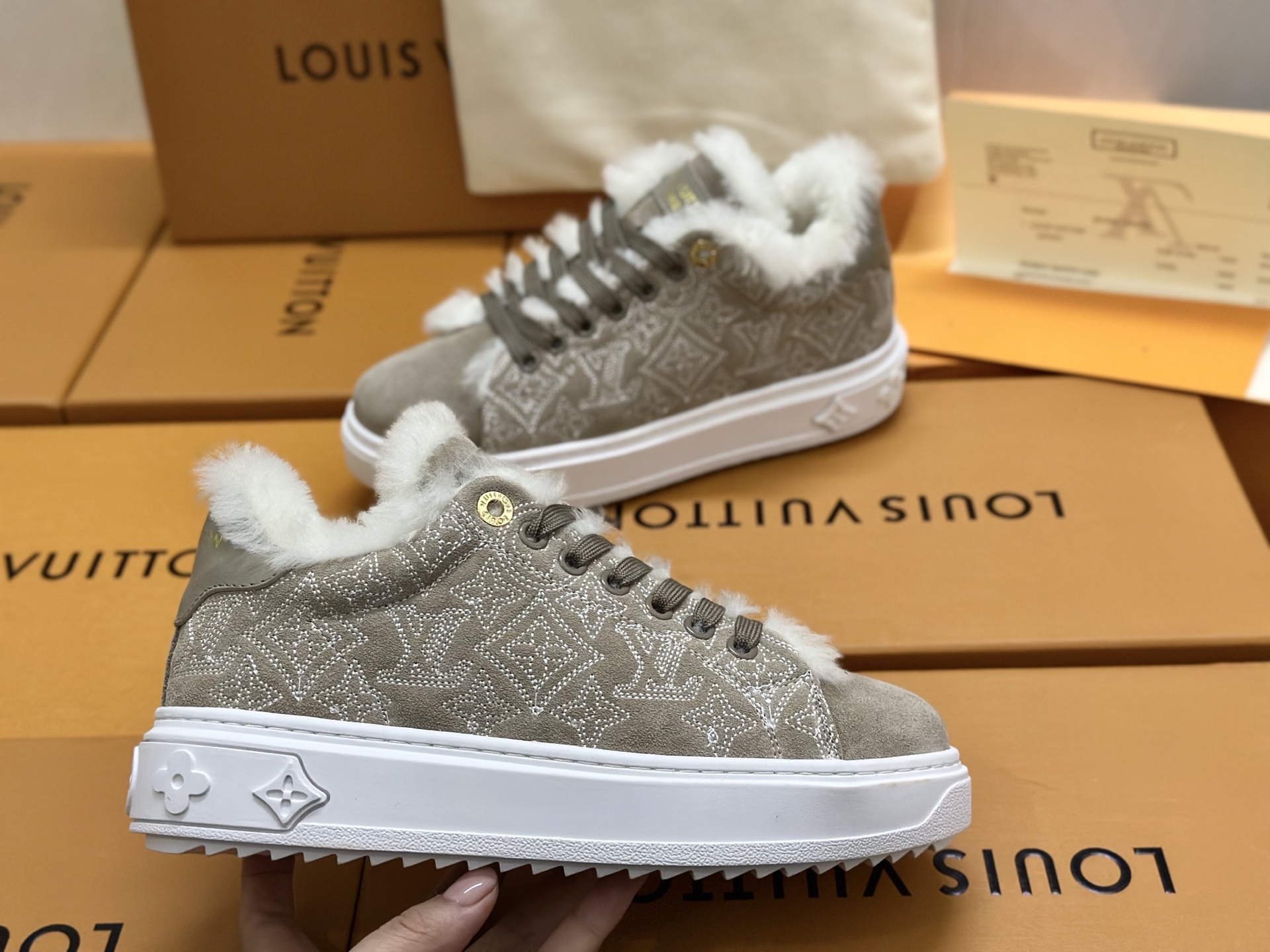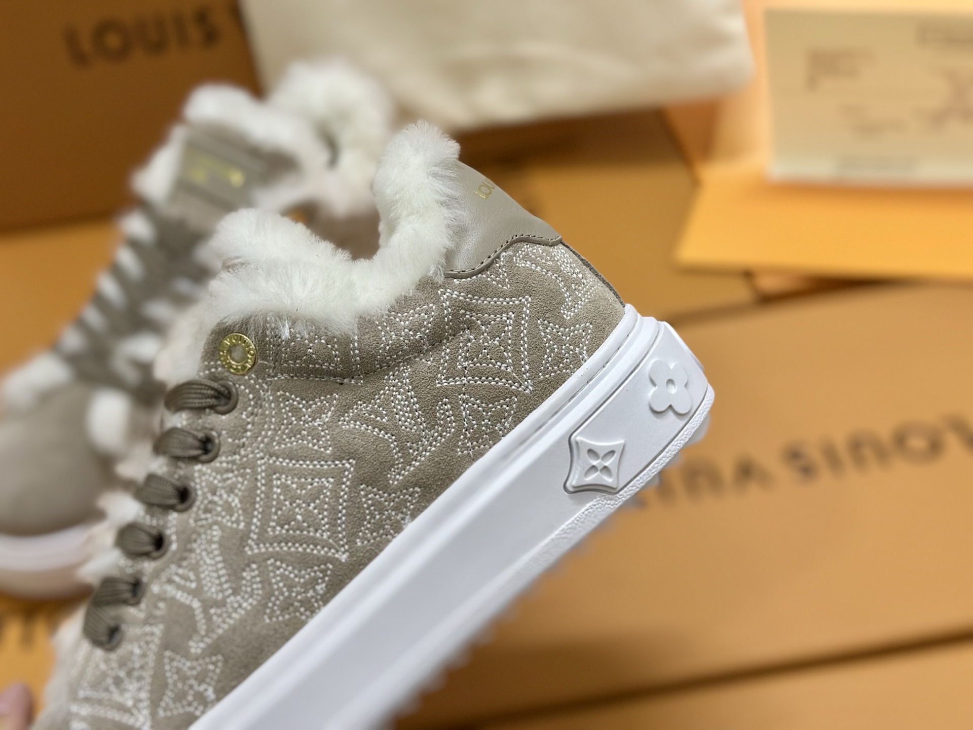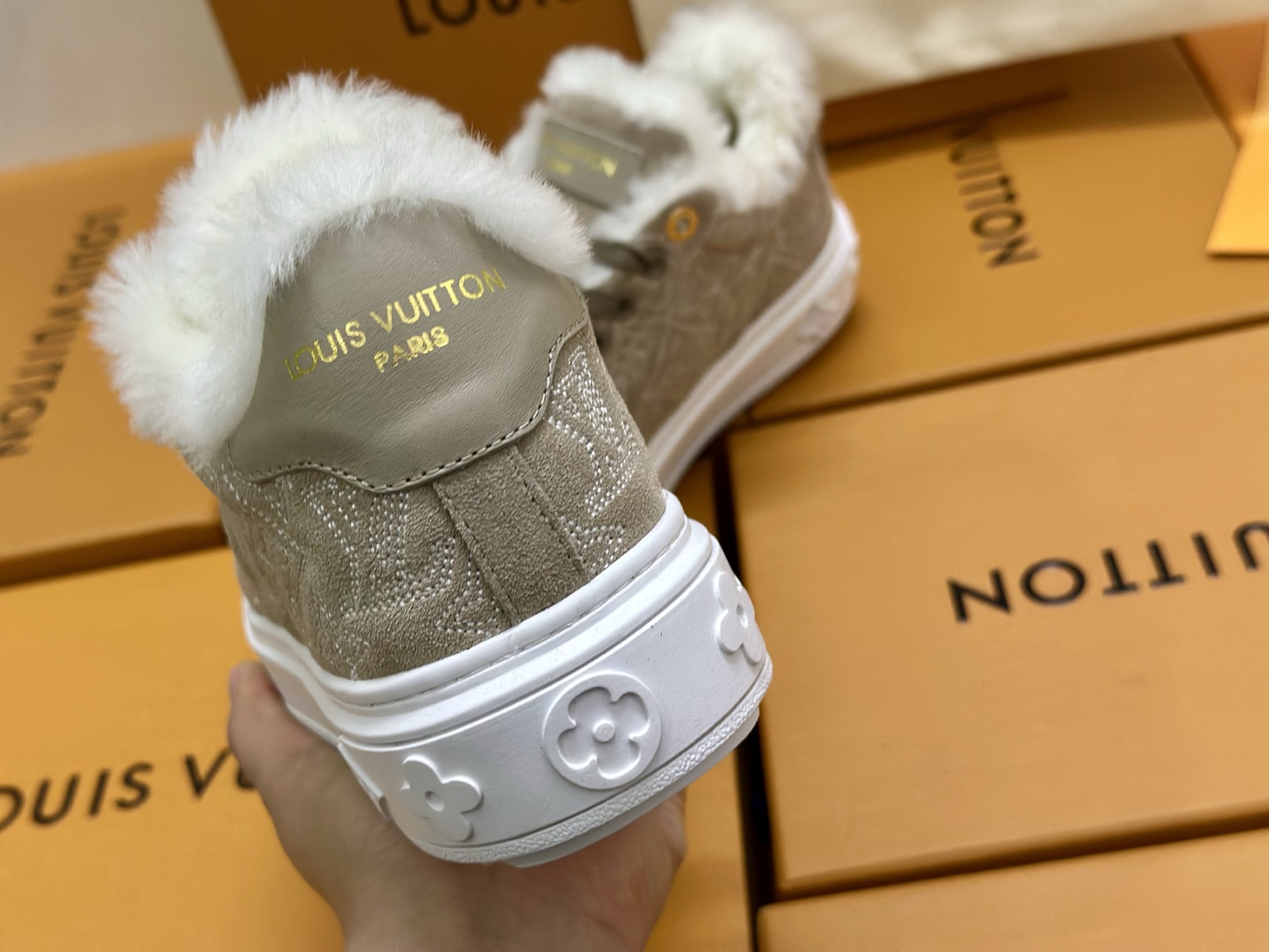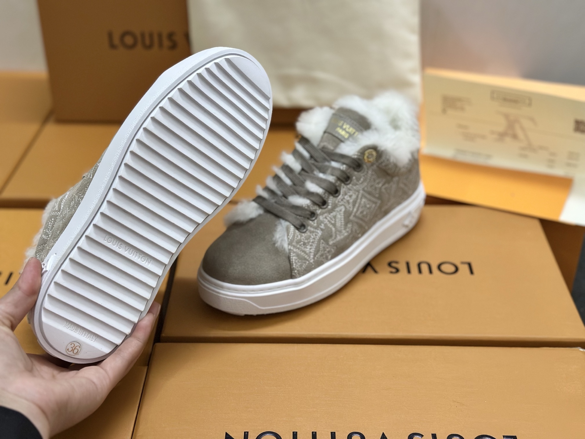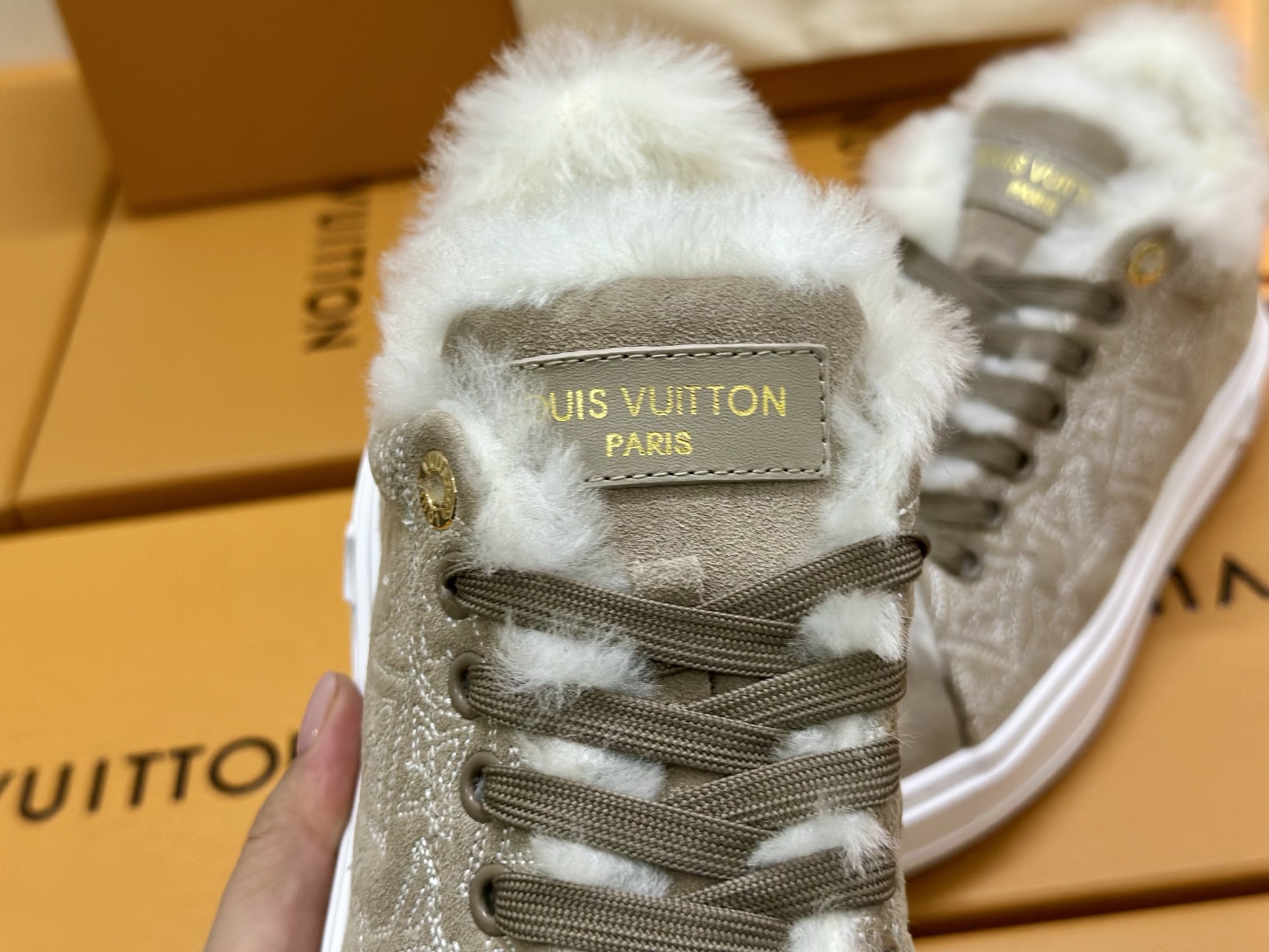 这款鞋子是AAAAA 1:1 质量 (非常棒). 使用了和原版一模一样的材料. 商标部分也保持了和路易威登/Louis Vuitton一样. 图片拍摄是实物鞋子拍摄, 您所收到的实物保证和我们图片一模一样.