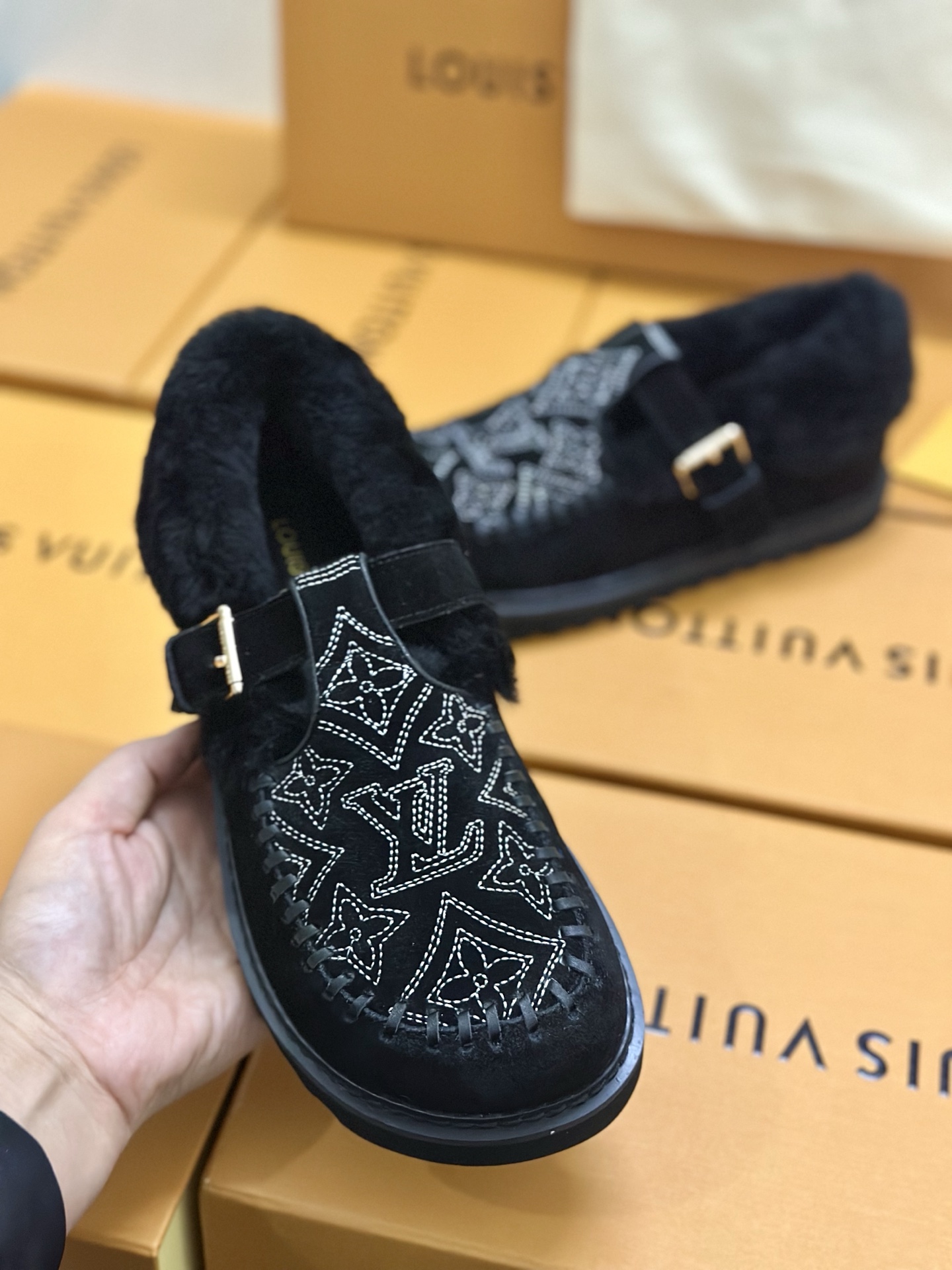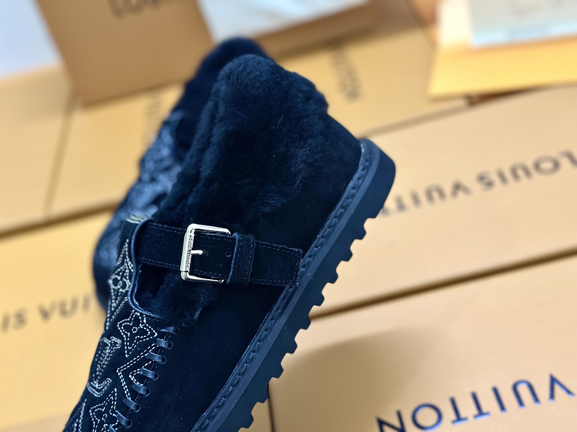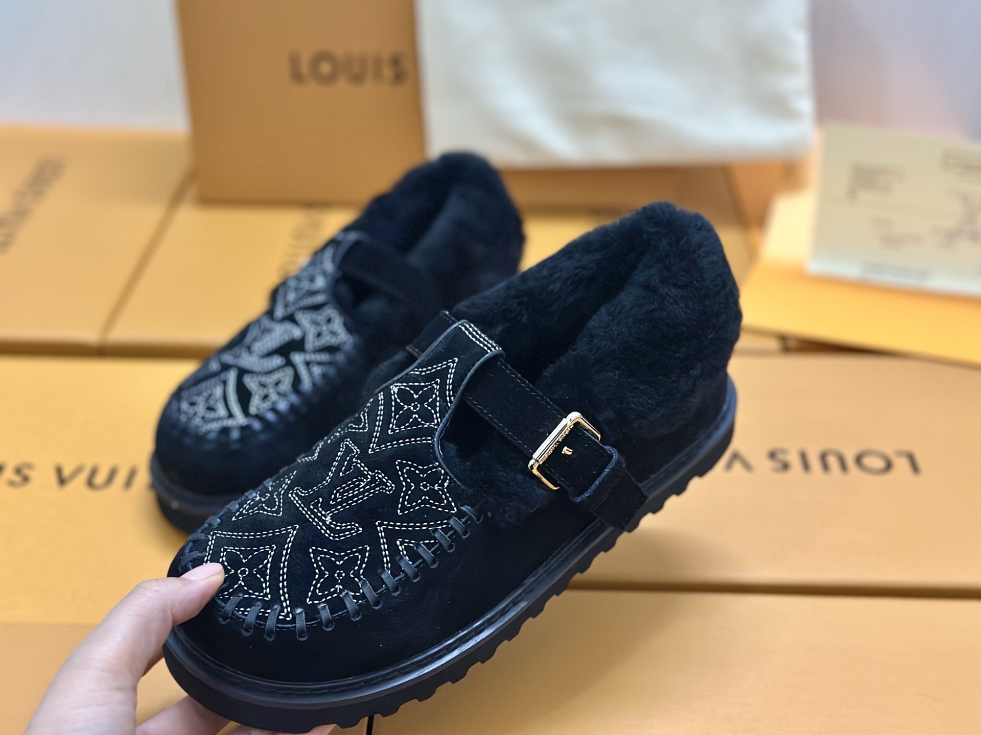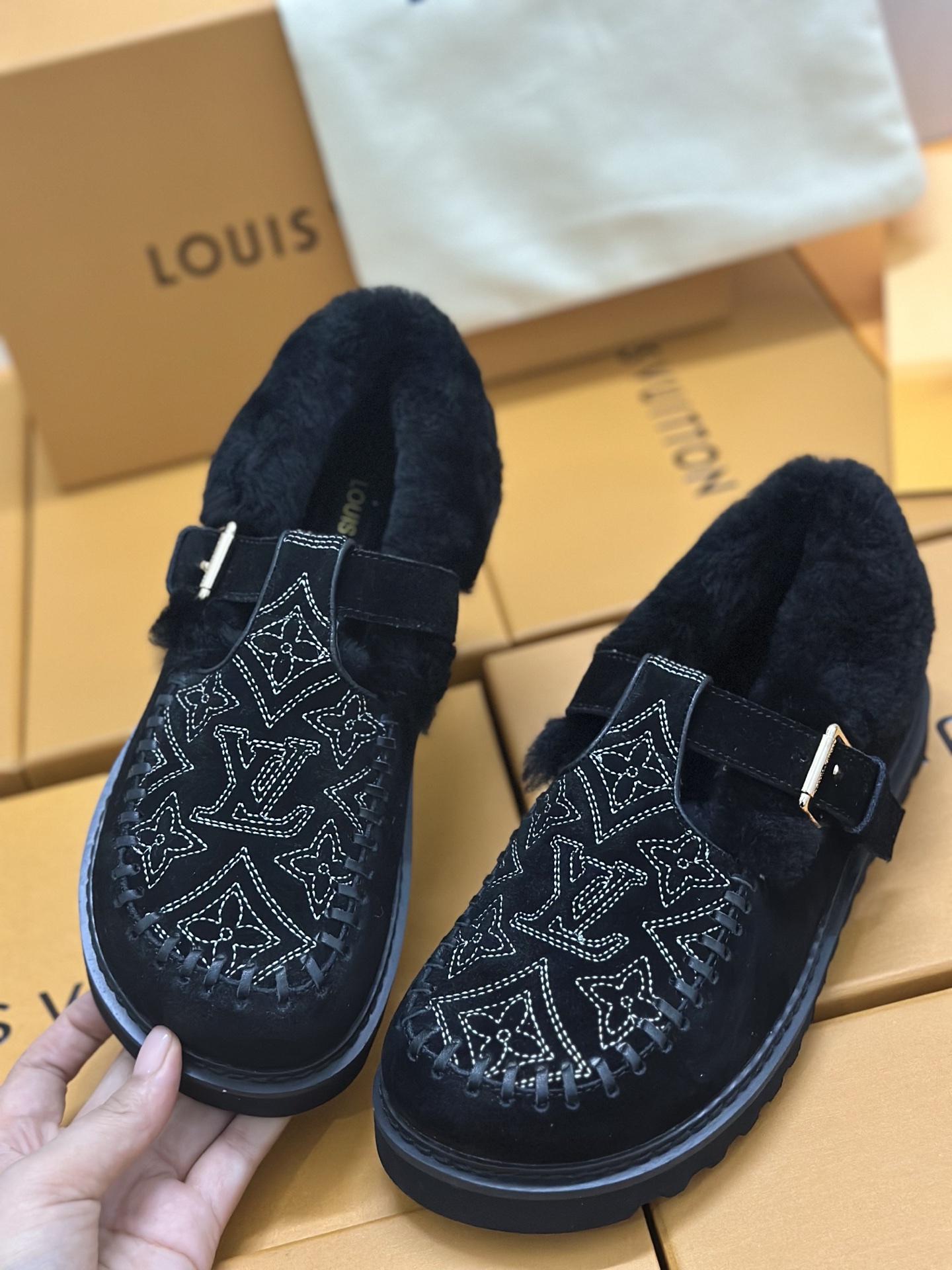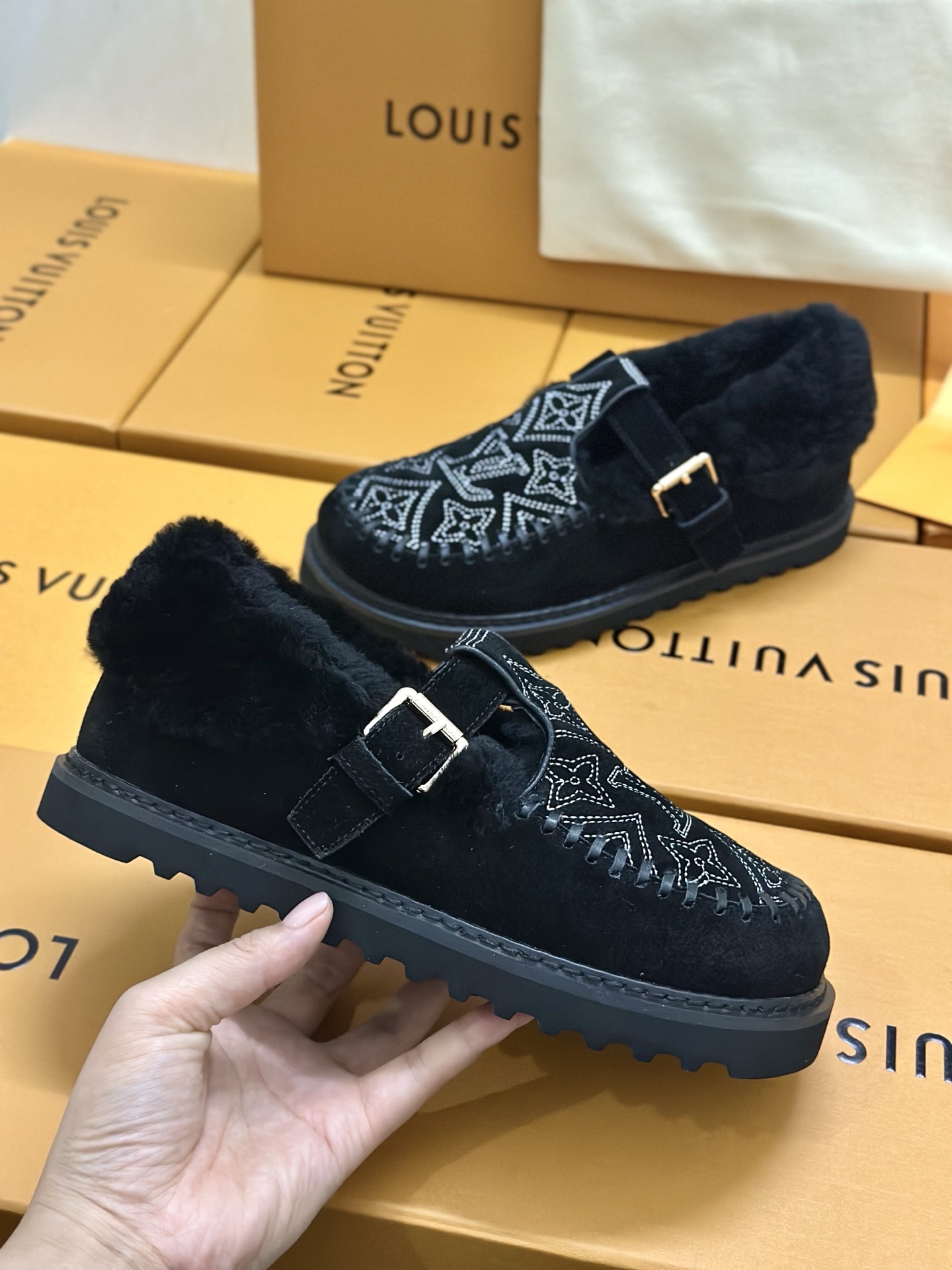 这款鞋子是AAAAA 1:1 质量 (非常棒). 使用了和原版一模一样的材料. 商标部分也保持了和路易威登/Louis Vuitton一样. 图片拍摄是实物鞋子拍摄, 您所收到的实物保证和我们图片一模一样.