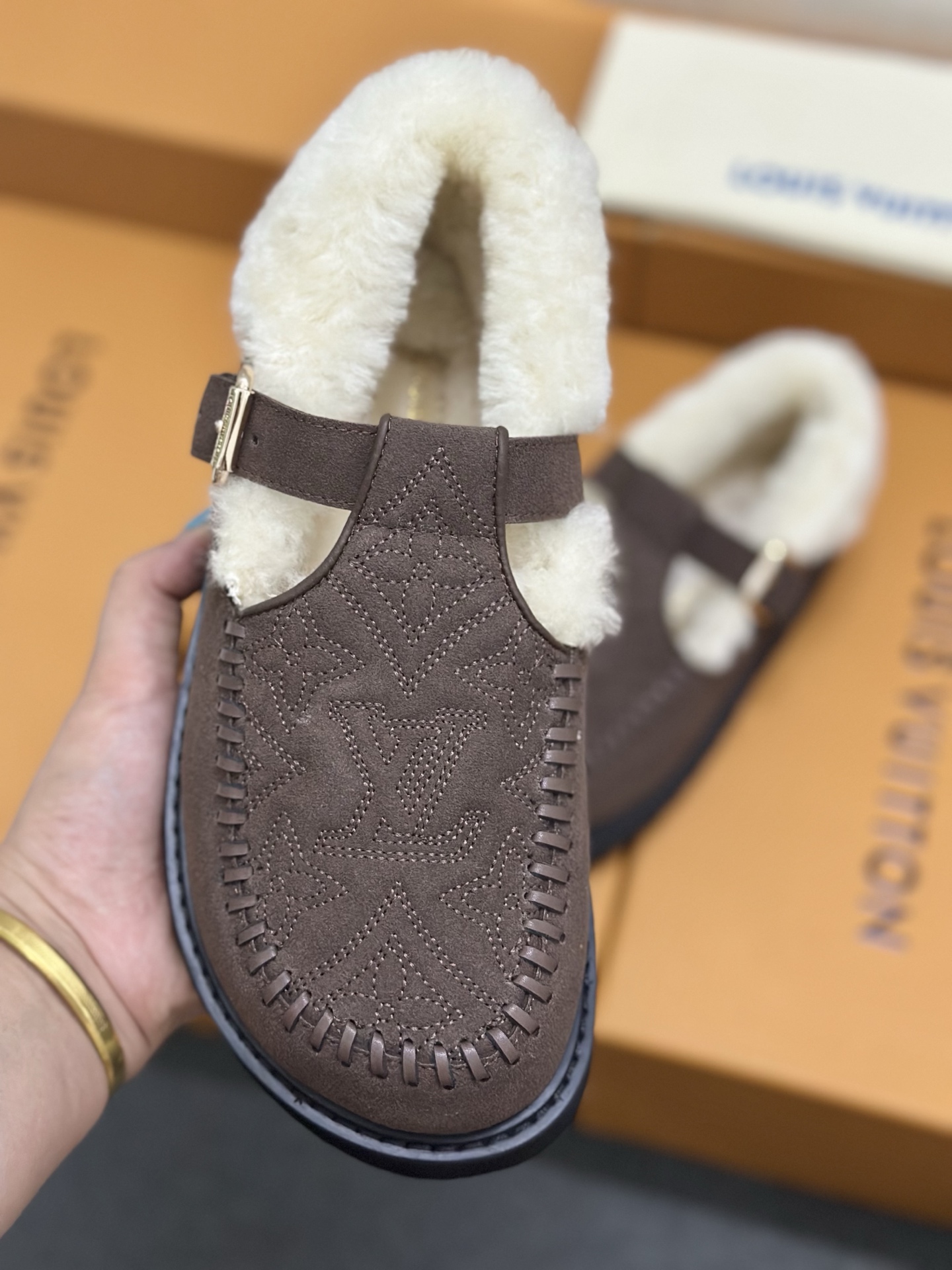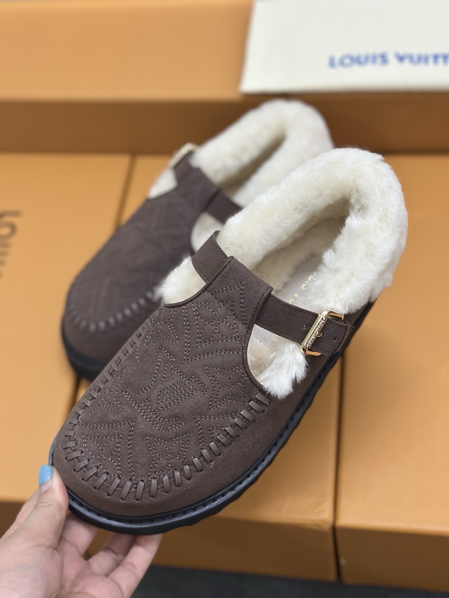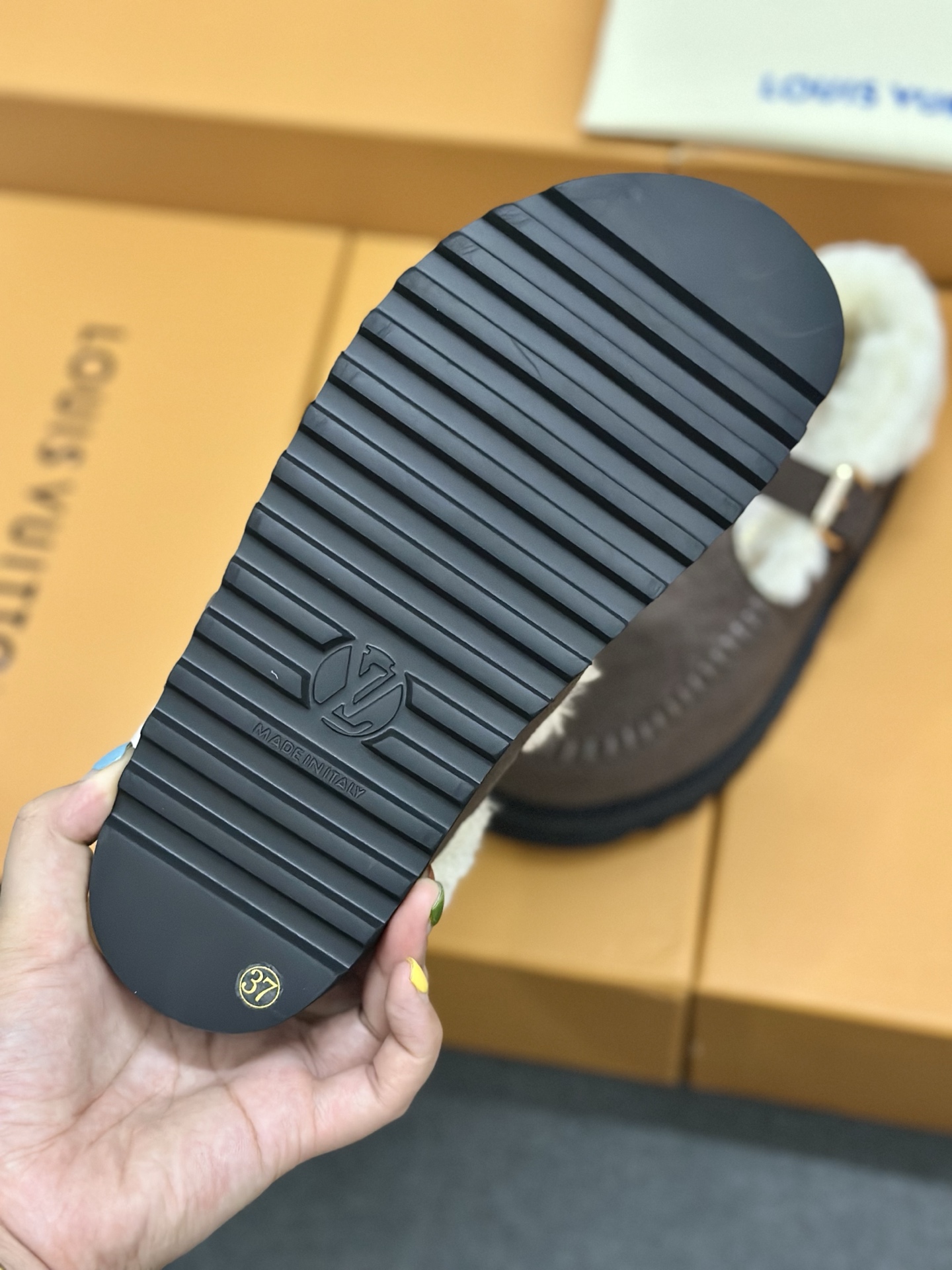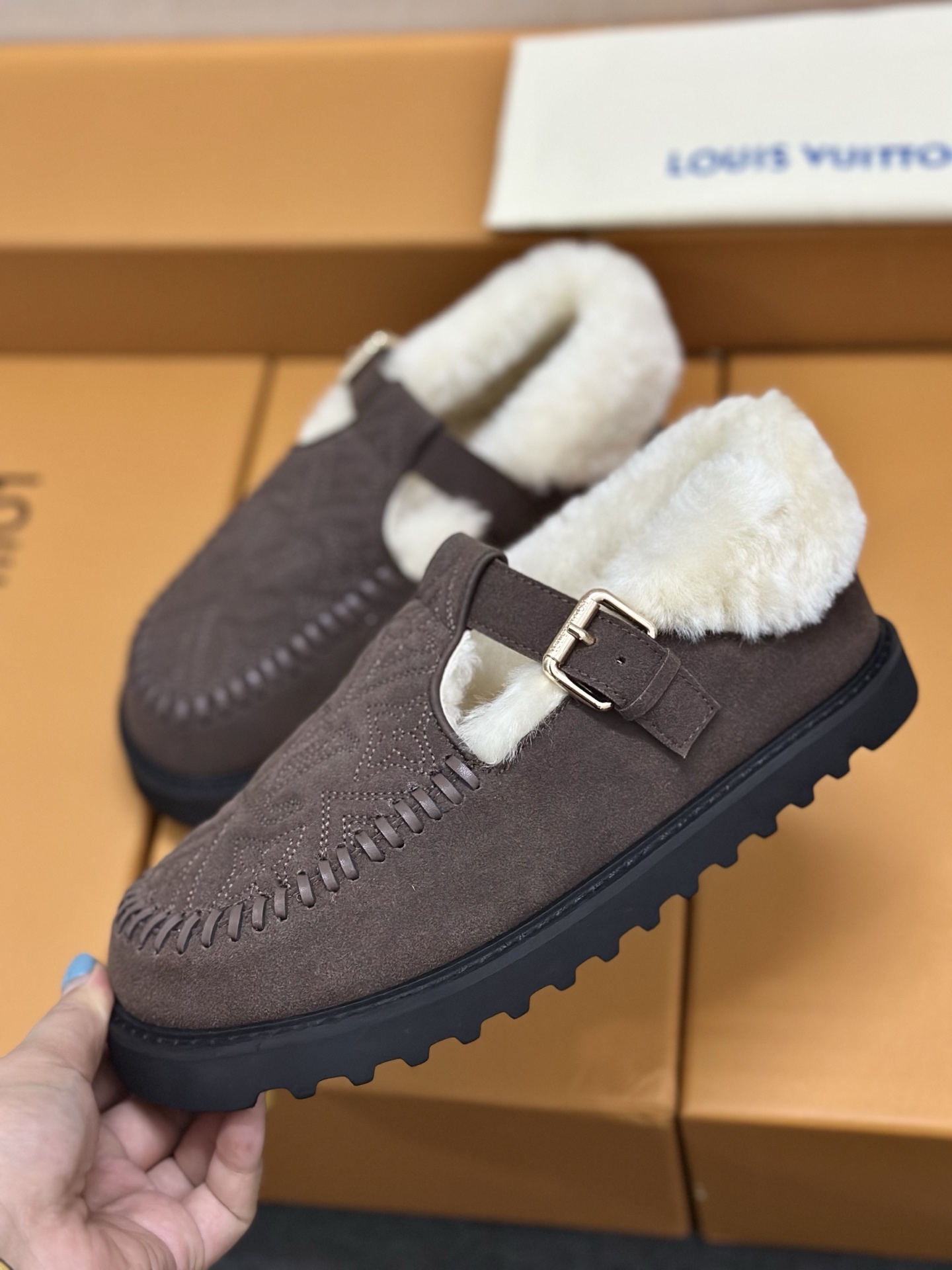 这款鞋子是AAAAA 1:1 质量 (非常棒). 使用了和原版一模一样的材料. 商标部分也保持了和路易威登/Louis Vuitton一样. 图片拍摄是实物鞋子拍摄, 您所收到的实物保证和我们图片一模一样.