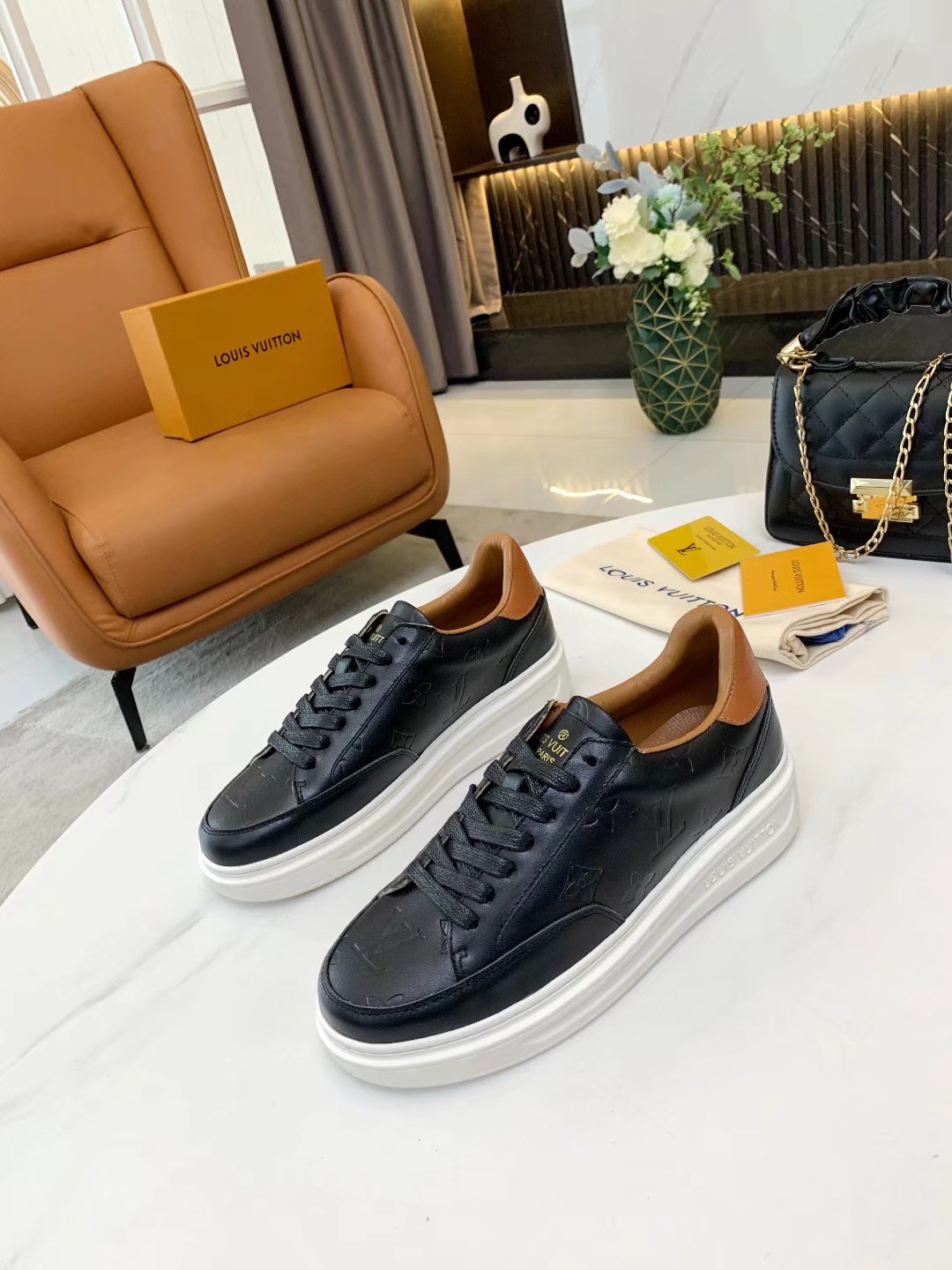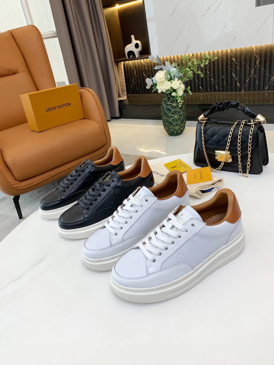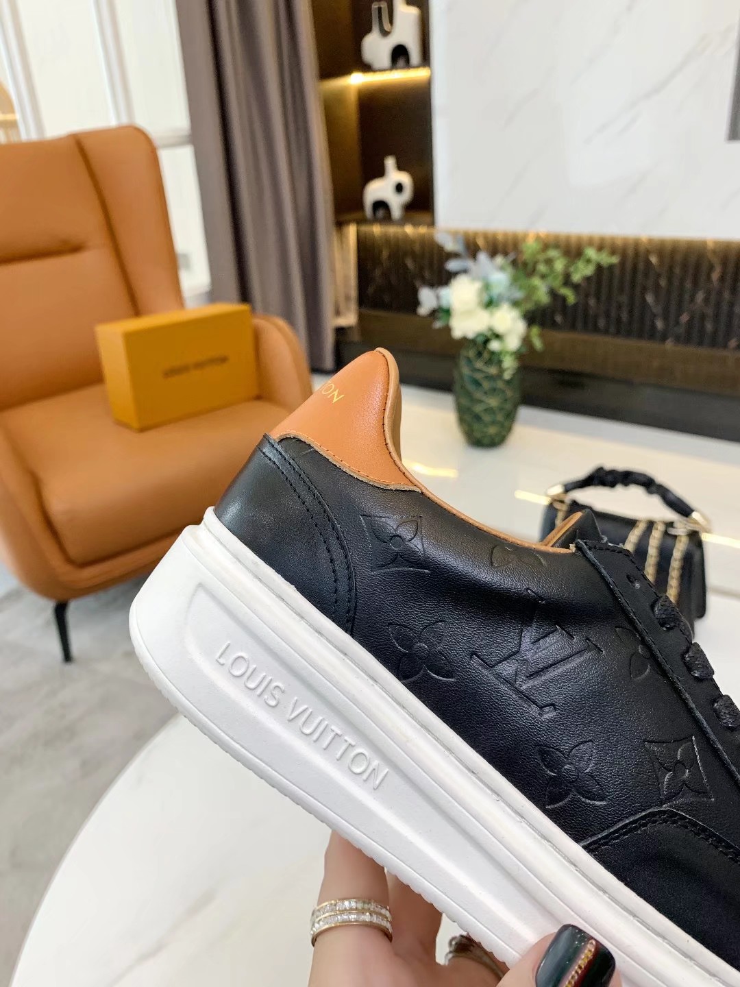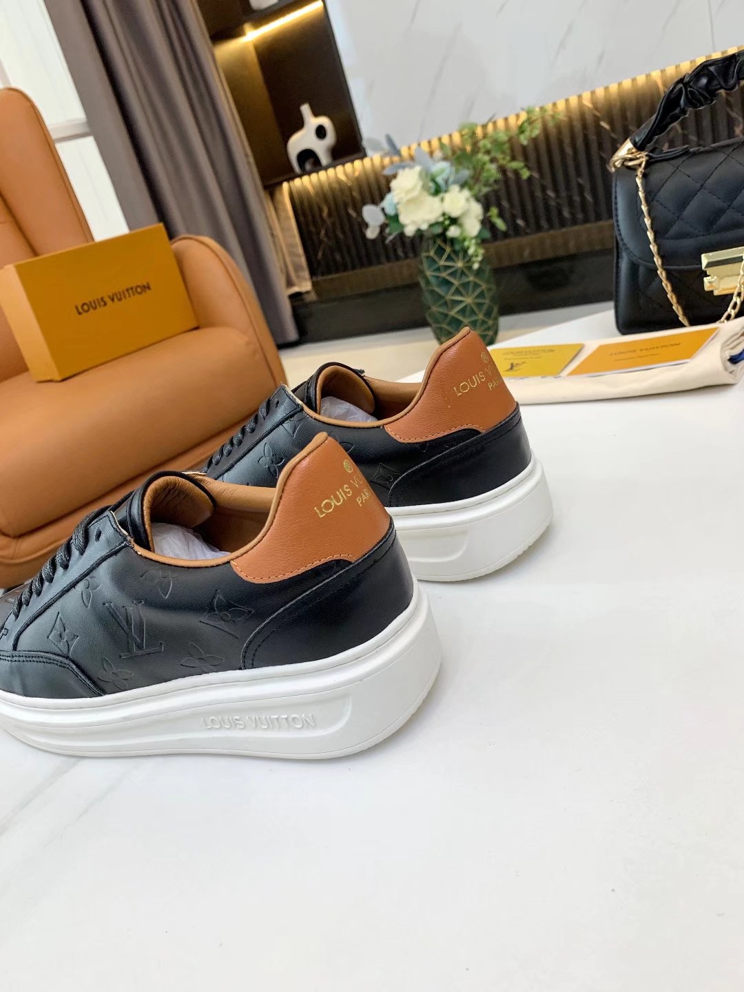这款鞋子是AAAAA 1:1 质量 (非常棒). 使用了和原版一模一样的材料. 商标部分也保持了和路易威登/Louis Vuitton一样. 图片拍摄是实物鞋子拍摄, 您所收到的实物保证和我们图片一模一样.