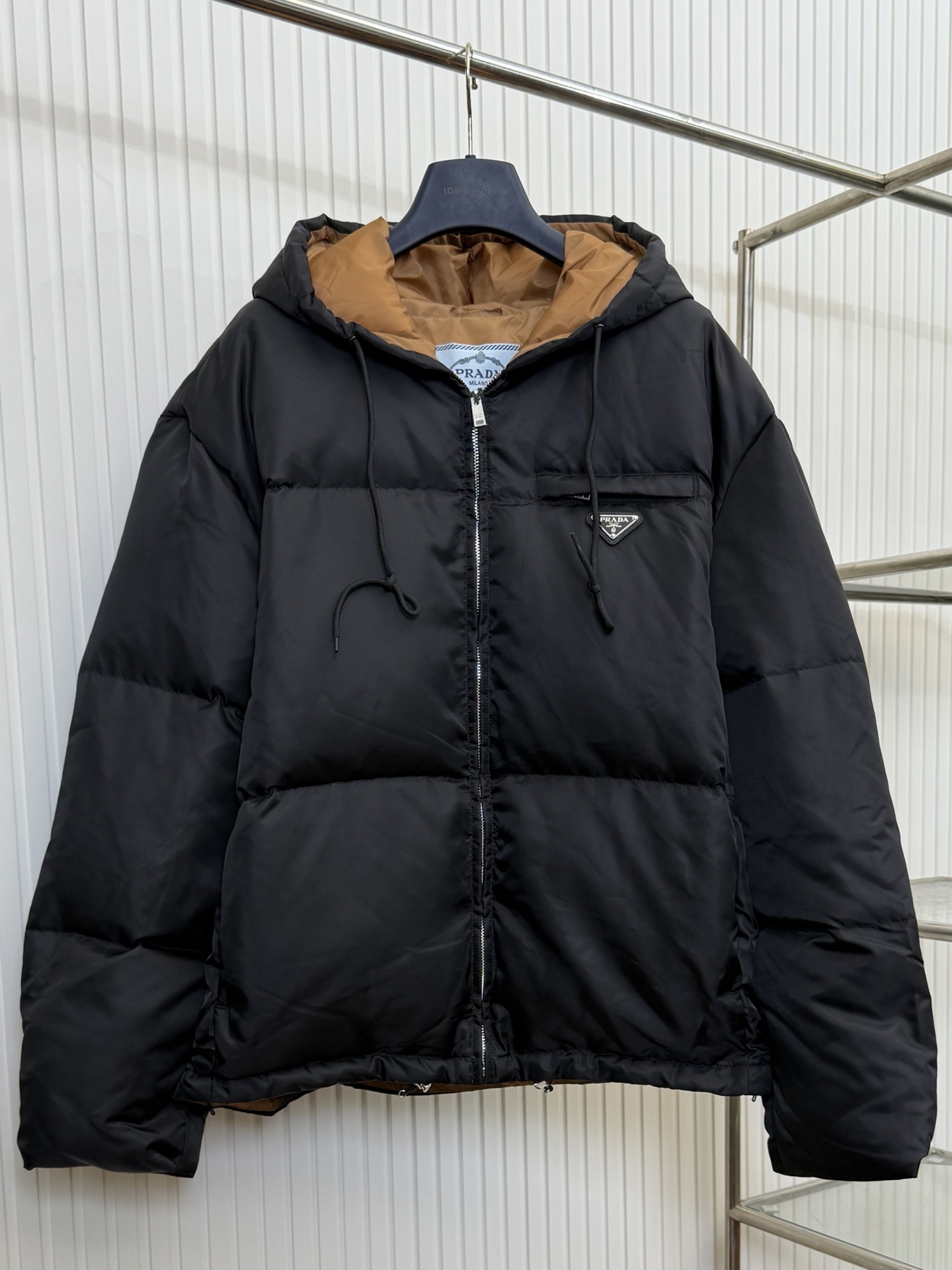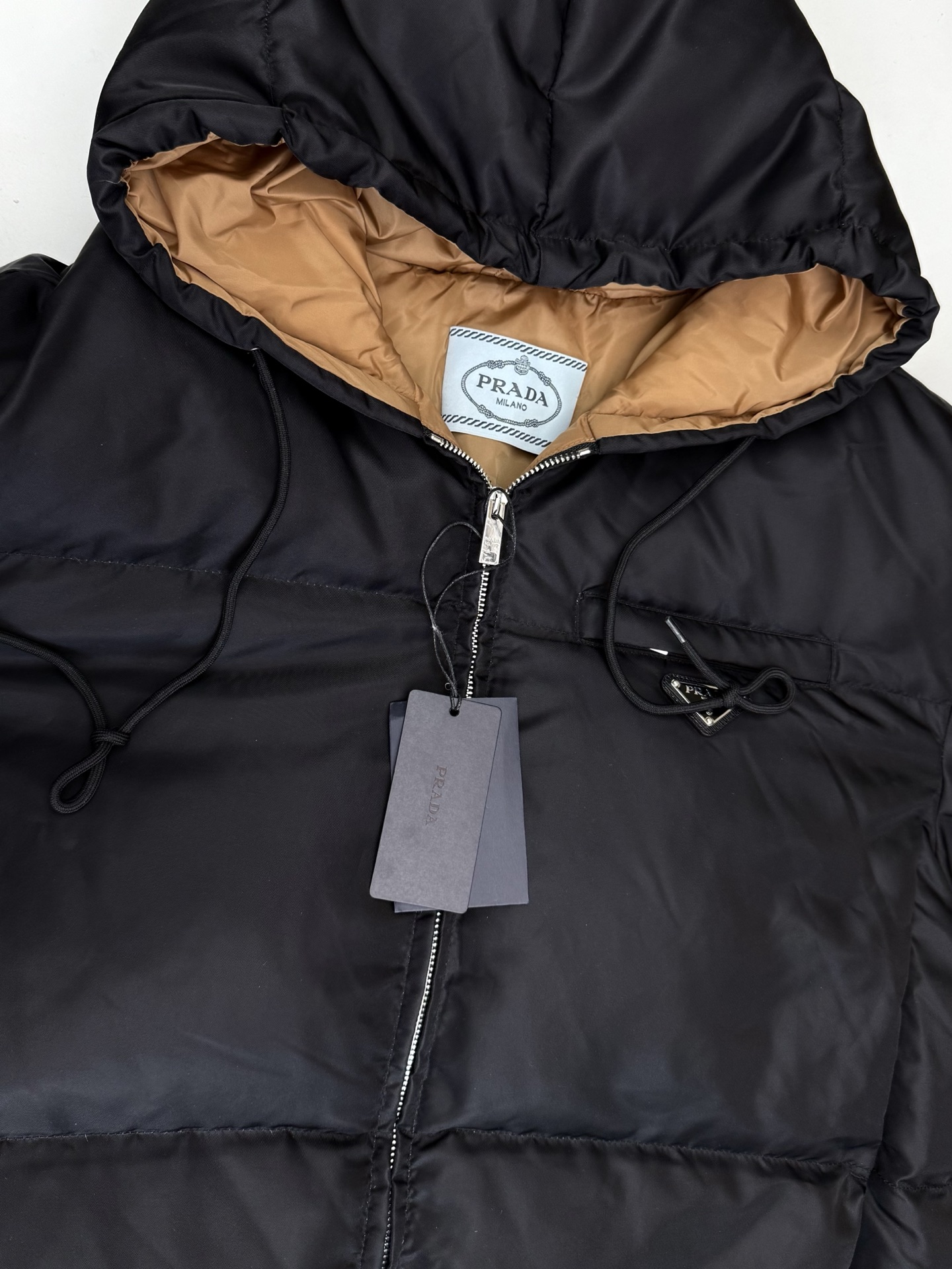 这款衣服是AAAAA 1:1 质量 (非常棒). 使用了和原版一模一样的材料. 商标部分也保持了和普拉达/Prada一样. 图片拍摄是实物衣服拍摄, 您所收到的实物保证和我们图片一模一样.