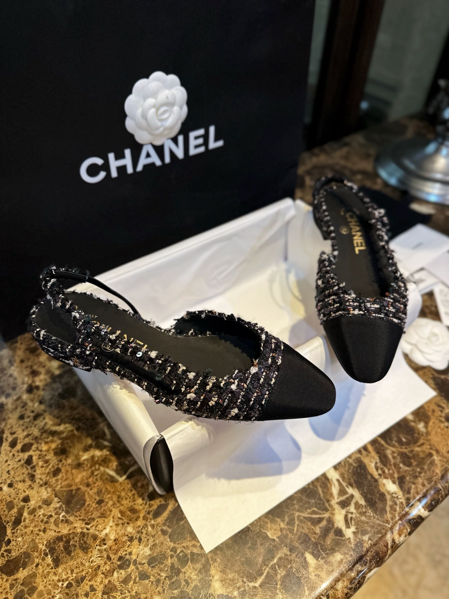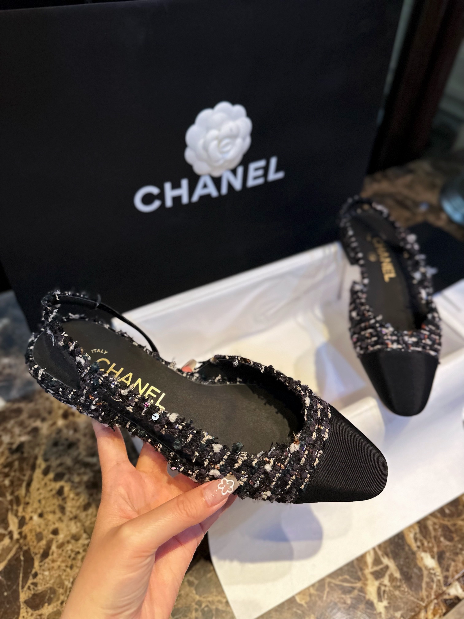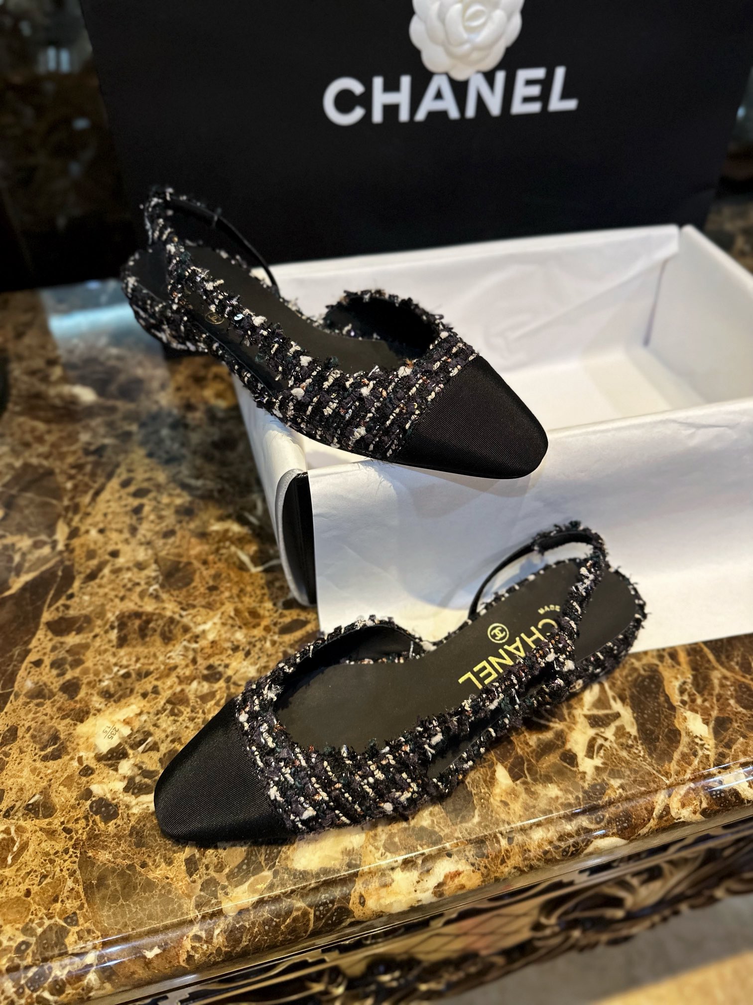 这款鞋子是AAAAA 1:1 质量 (非常棒). 使用了和原版一模一样的材料. 商标部分也保持了和香奈儿/Chanel一样. 图片拍摄是实物鞋子拍摄, 您所收到的实物保证和我们图片一模一样.