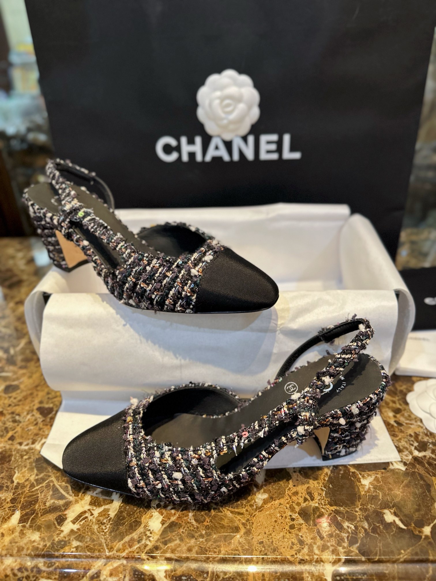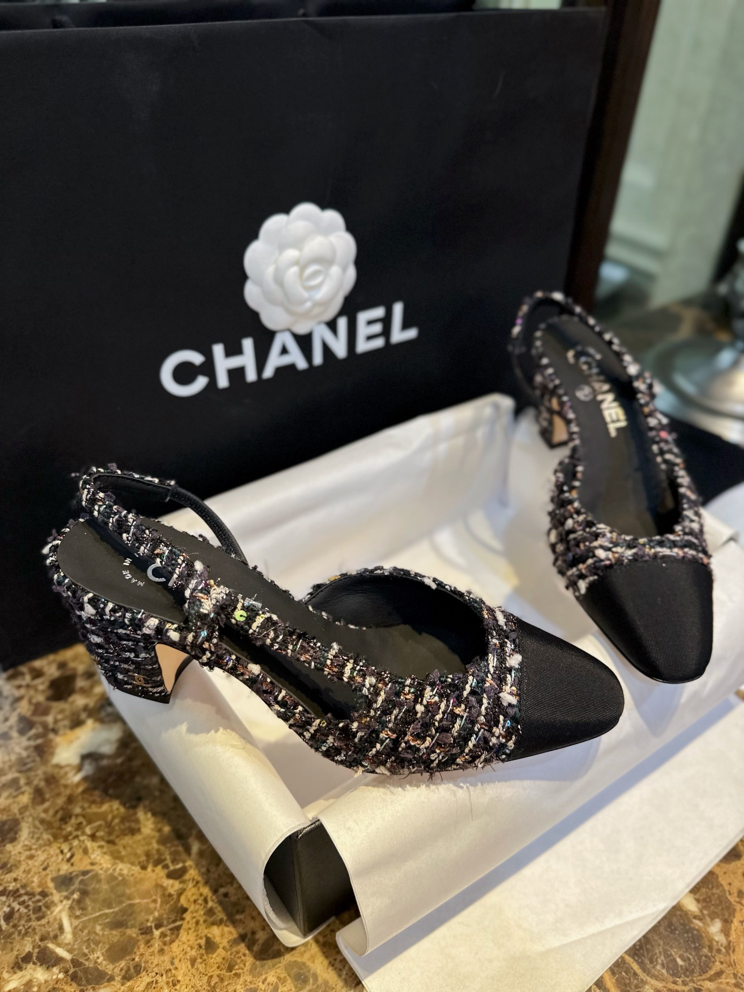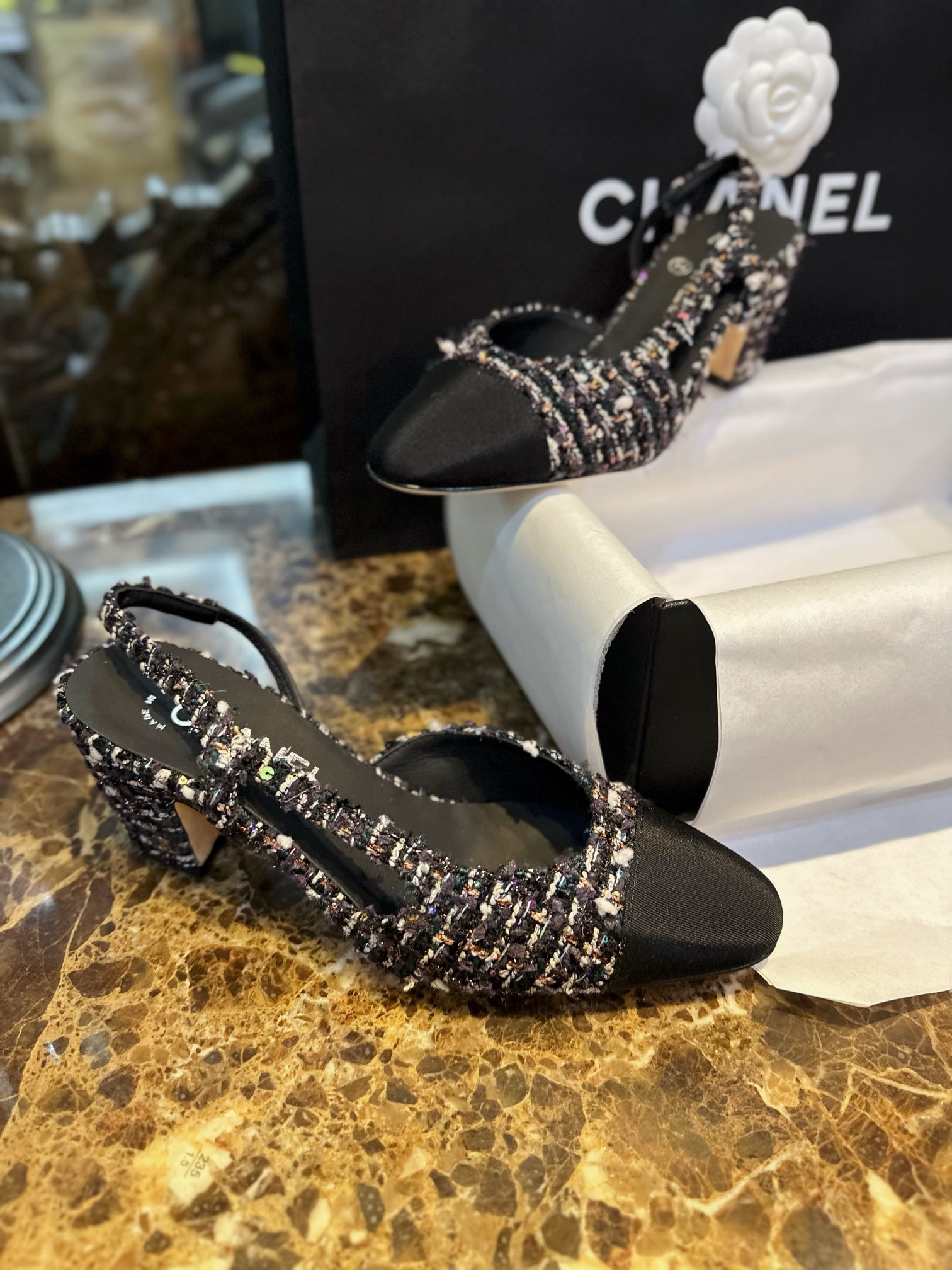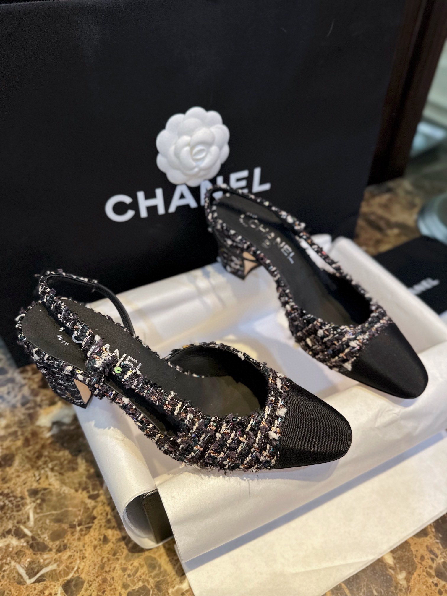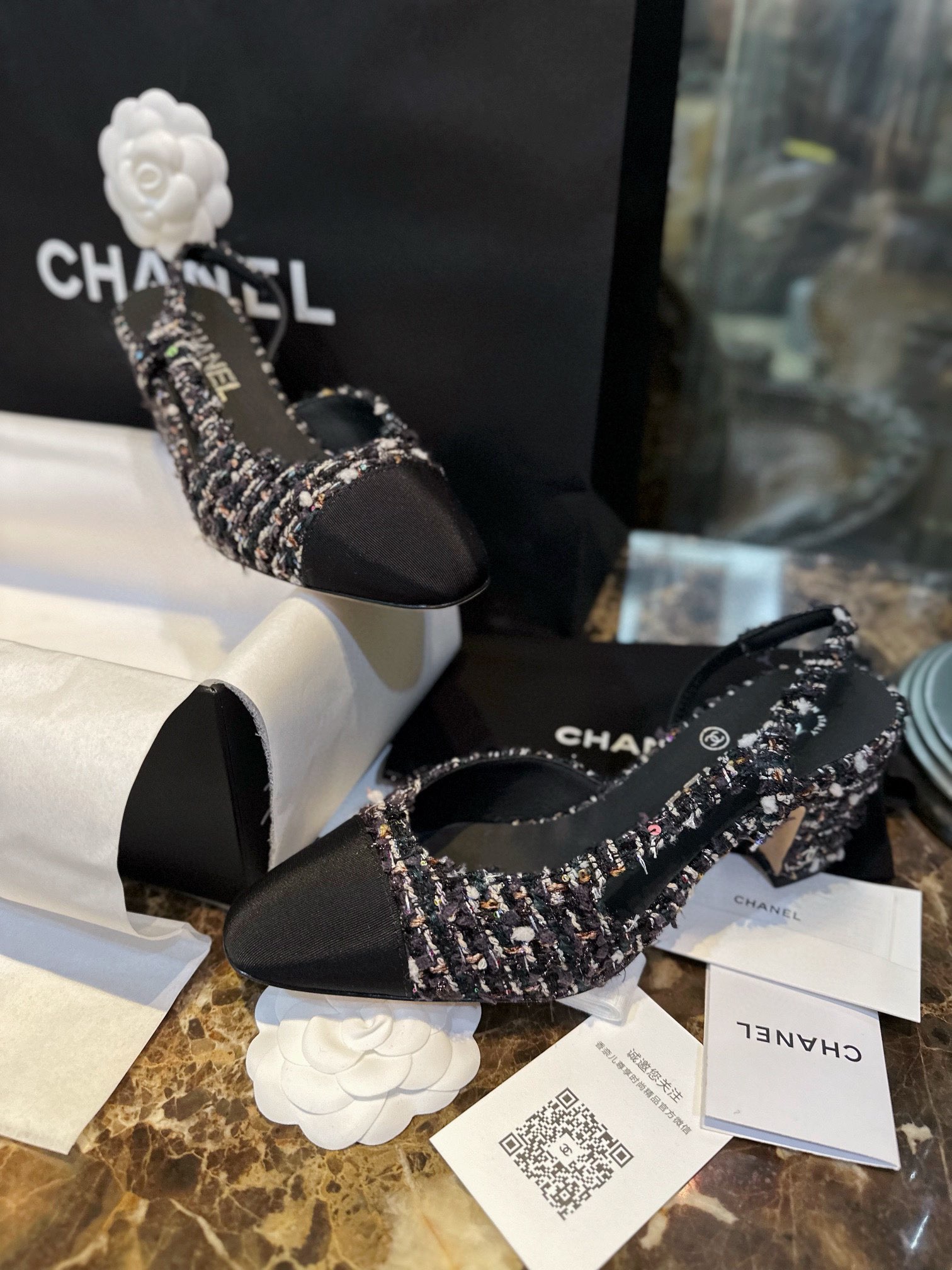 这款鞋子是AAAAA 1:1 质量 (非常棒). 使用了和原版一模一样的材料. 商标部分也保持了和香奈儿/Chanel一样. 图片拍摄是实物鞋子拍摄, 您所收到的实物保证和我们图片一模一样.