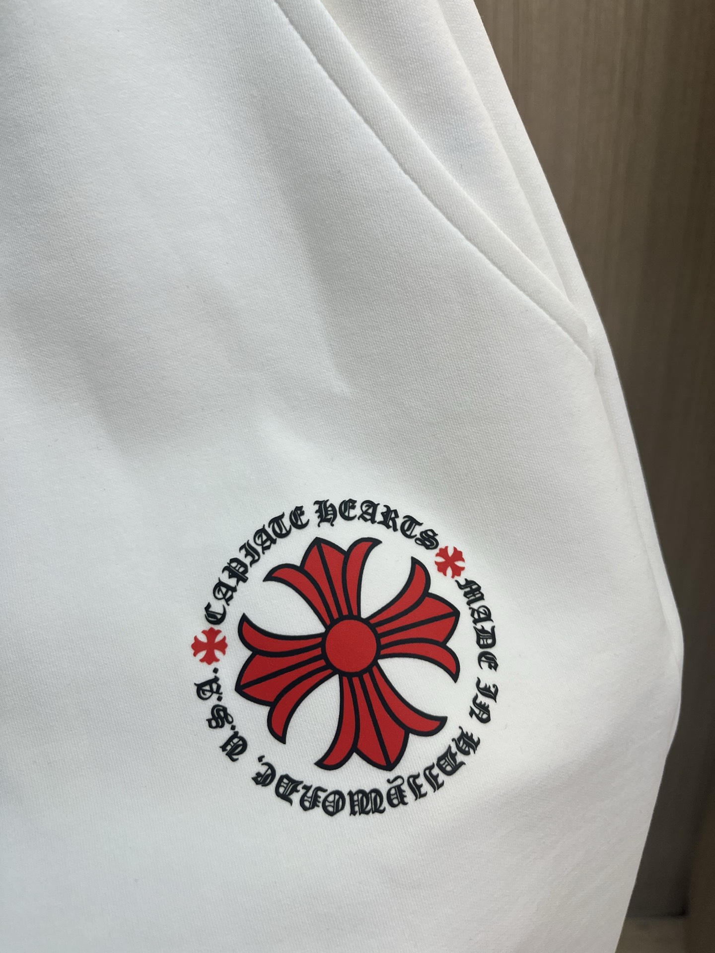 这款衣服是AAAAA 1:1 质量 (非常棒). 使用了和原版一模一样的材料. 商标部分也保持了和克罗心/Chrome Hearts一样. 图片拍摄是实物衣服拍摄, 您所收到的实物保证和我们图片一模一样.