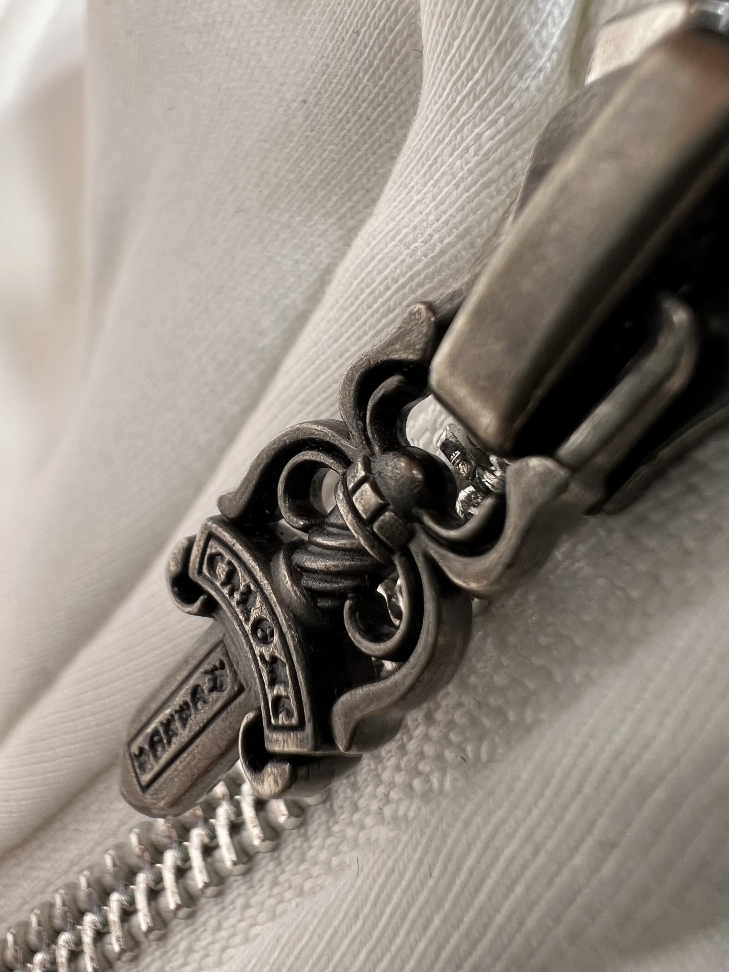 这款衣服是AAAAA 1:1 质量 (非常棒). 使用了和原版一模一样的材料. 商标部分也保持了和克罗心/Chrome Hearts一样. 图片拍摄是实物衣服拍摄, 您所收到的实物保证和我们图片一模一样.