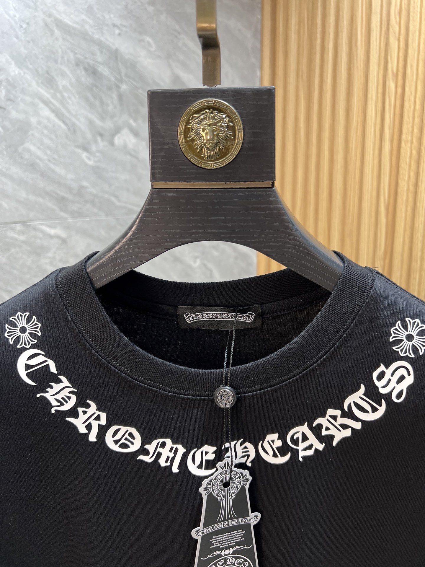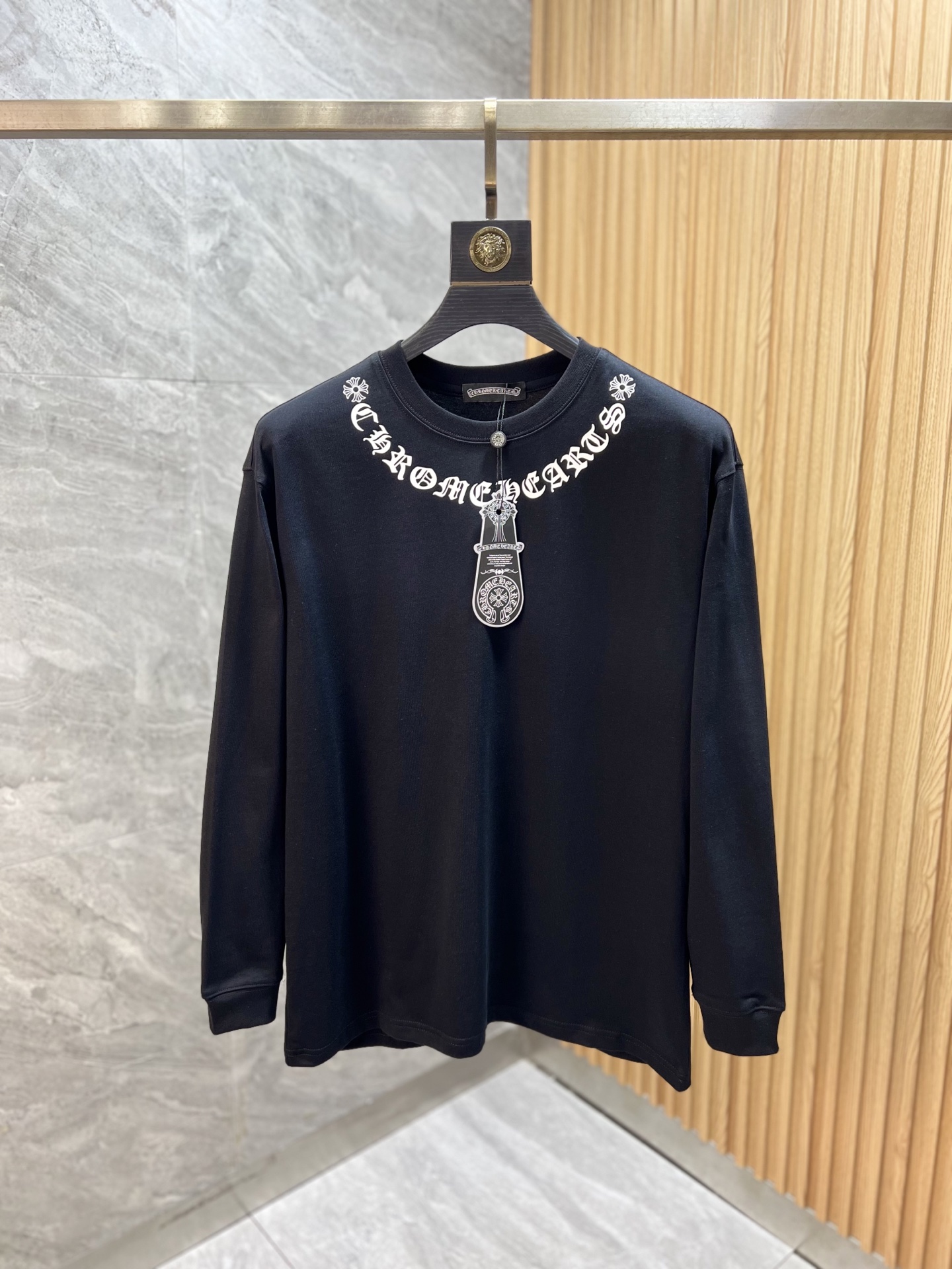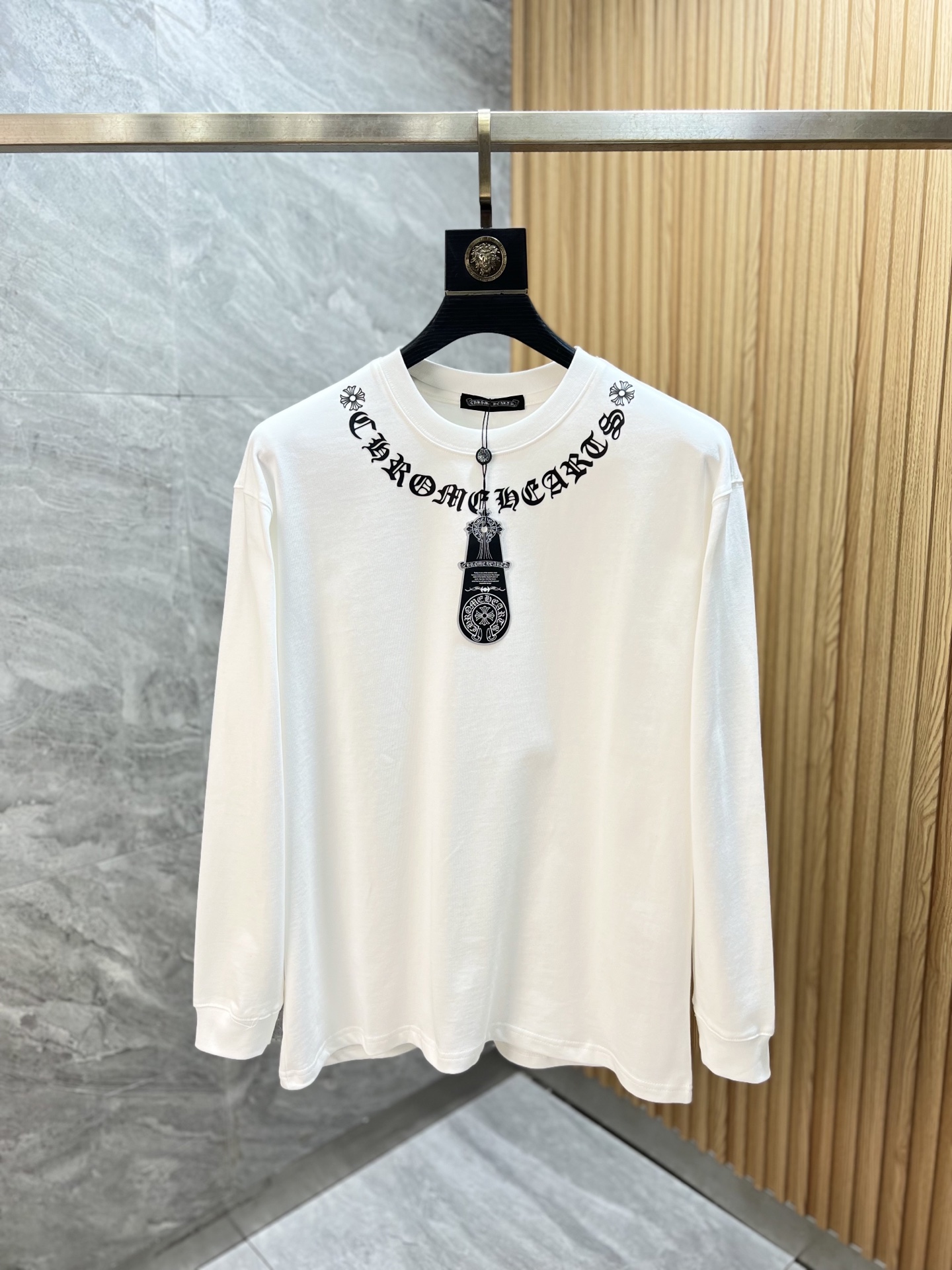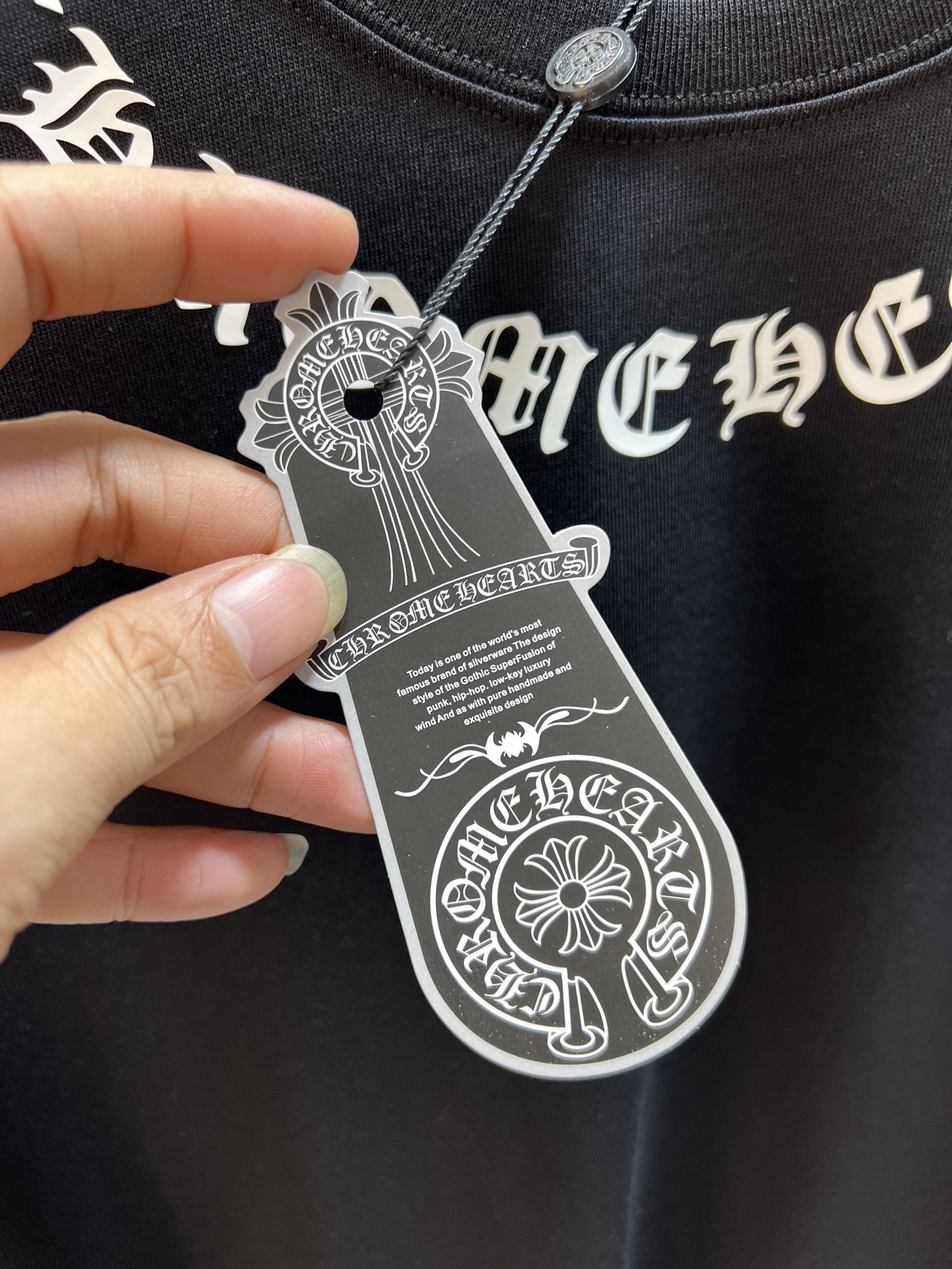 这款衣服是AAAAA 1:1 质量 (非常棒). 使用了和原版一模一样的材料. 商标部分也保持了和克罗心/Chrome Hearts一样. 图片拍摄是实物衣服拍摄, 您所收到的实物保证和我们图片一模一样.