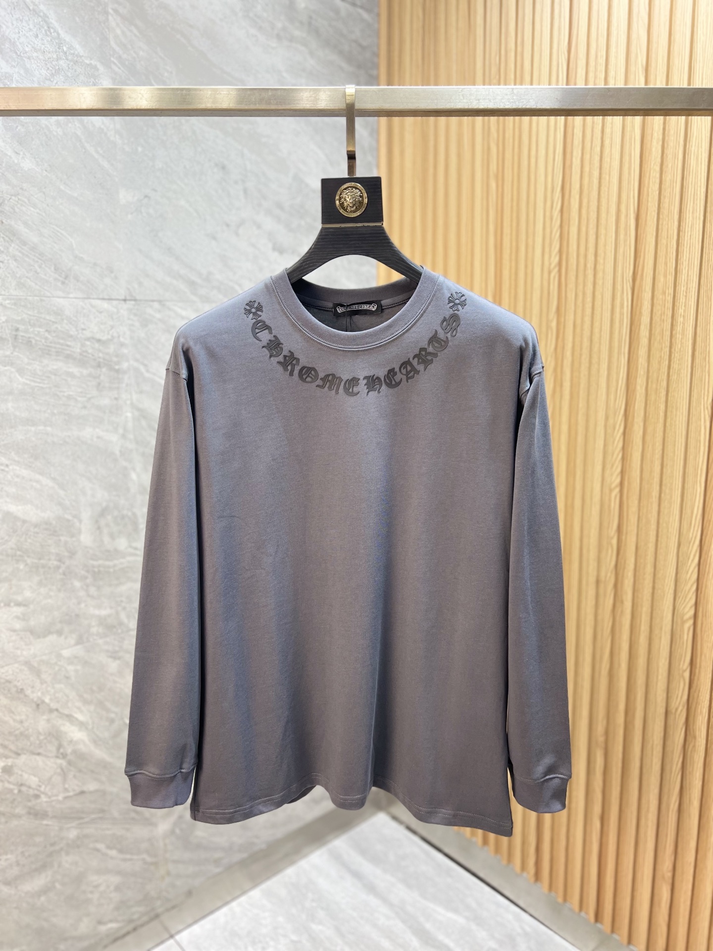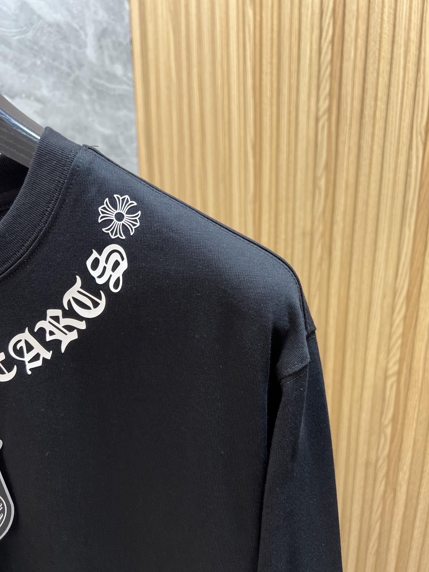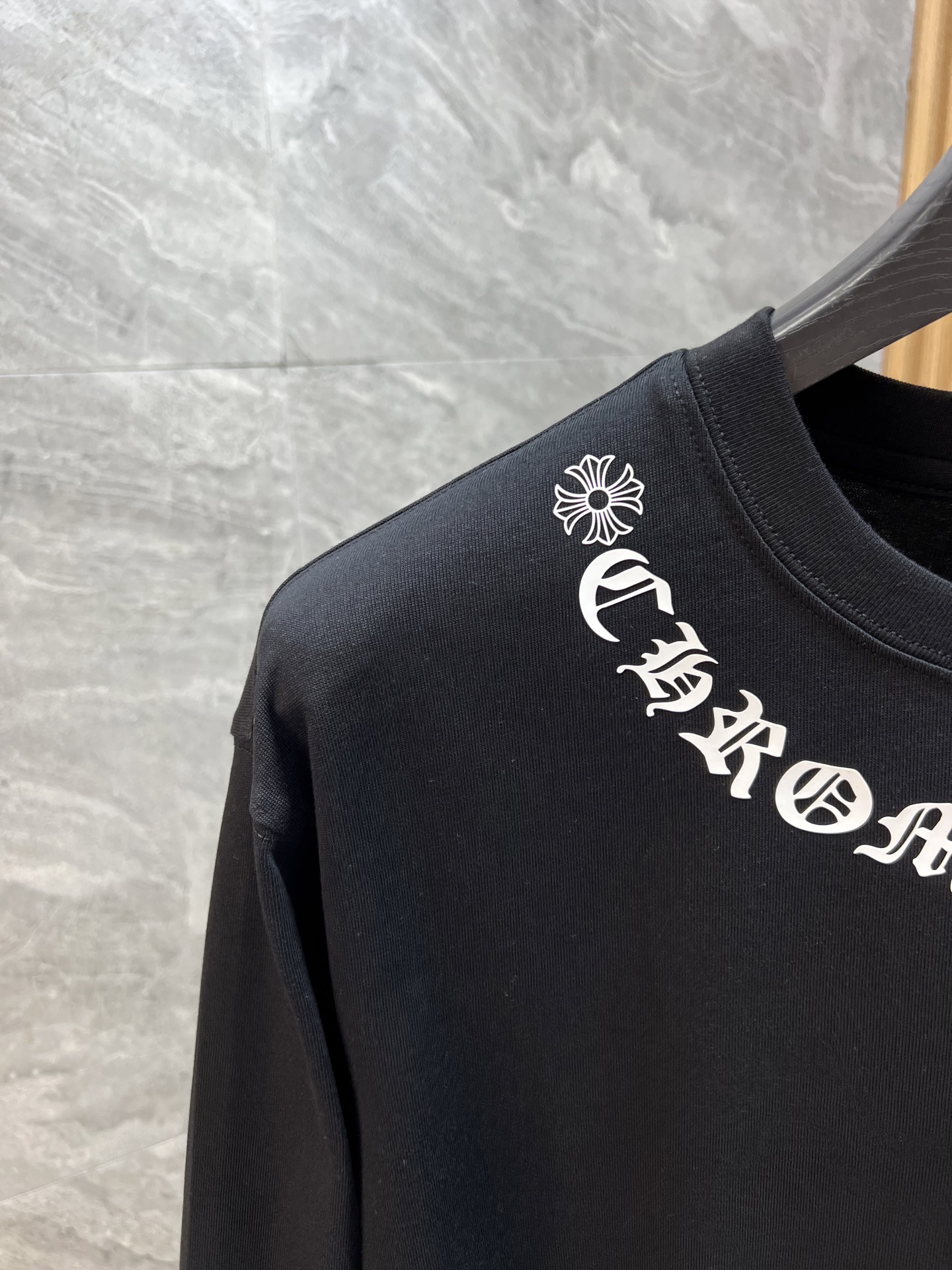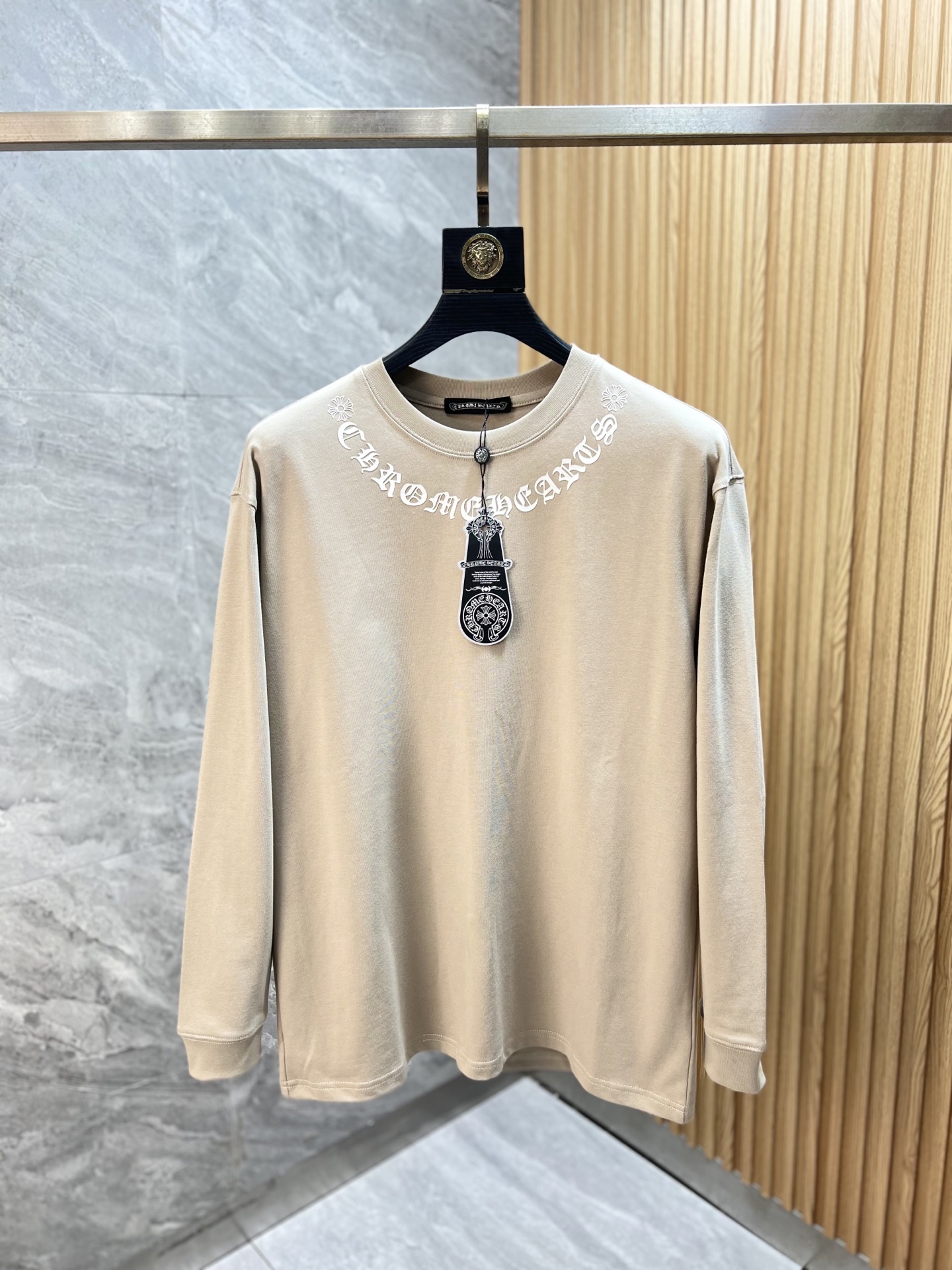 这款衣服是AAAAA 1:1 质量 (非常棒). 使用了和原版一模一样的材料. 商标部分也保持了和克罗心/Chrome Hearts一样. 图片拍摄是实物衣服拍摄, 您所收到的实物保证和我们图片一模一样.