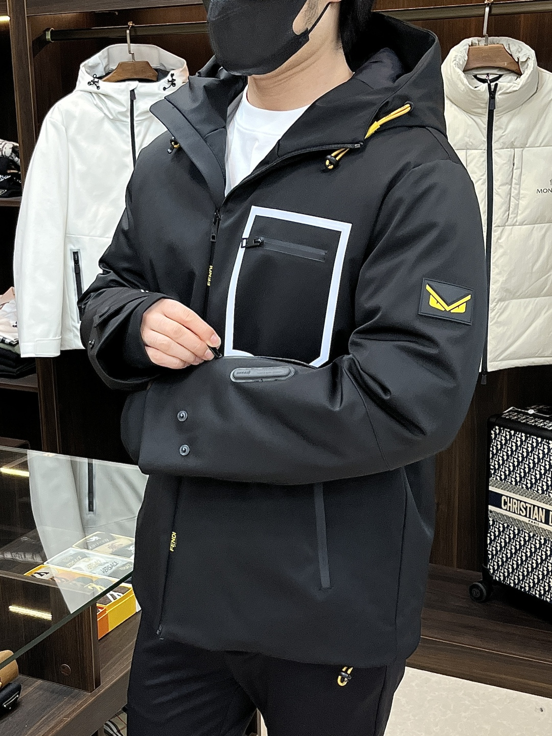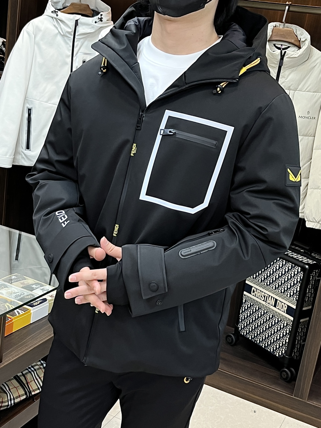 这款衣服是AAAAA 1:1 质量 (非常棒). 使用了和原版一模一样的材料. 商标部分也保持了和芬迪/Fendi一样. 图片拍摄是实物衣服拍摄, 您所收到的实物保证和我们图片一模一样.