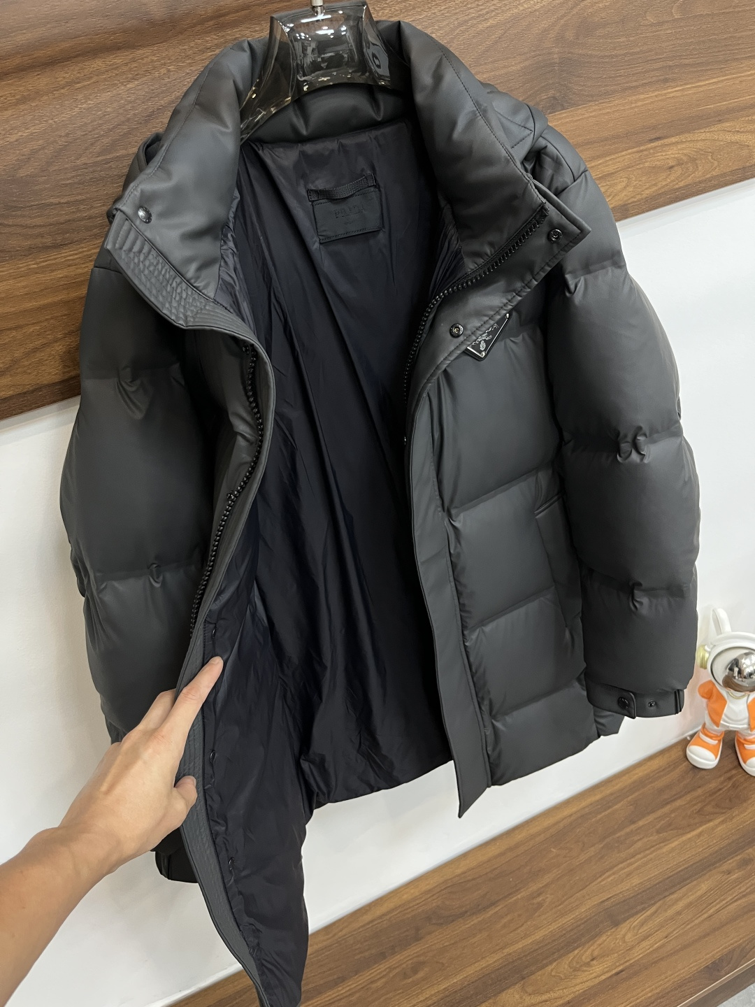 这款衣服是AAAAA 1:1 质量 (非常棒). 使用了和原版一模一样的材料. 商标部分也保持了和普拉达/Prada一样. 图片拍摄是实物衣服拍摄, 您所收到的实物保证和我们图片一模一样.