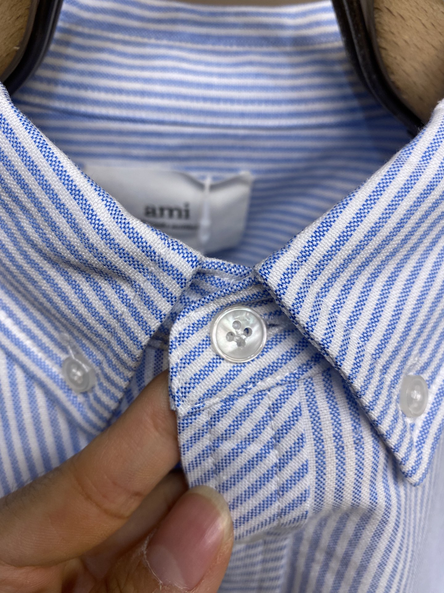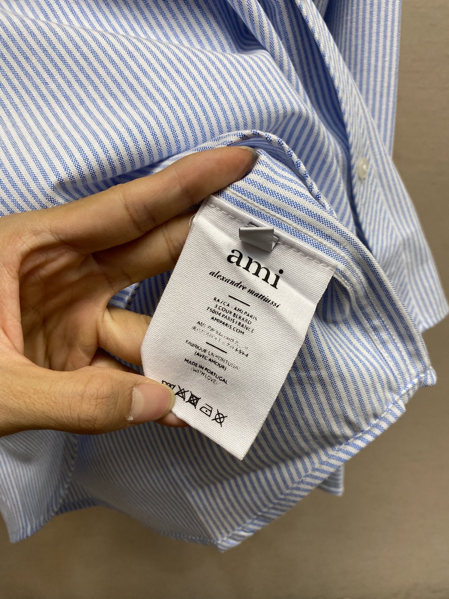 这款衣服是AAAAA 1:1 质量 (非常棒). 使用了和原版一模一样的材料. 商标部分也保持了和Ami一样. 图片拍摄是实物衣服拍摄, 您所收到的实物保证和我们图片一模一样.