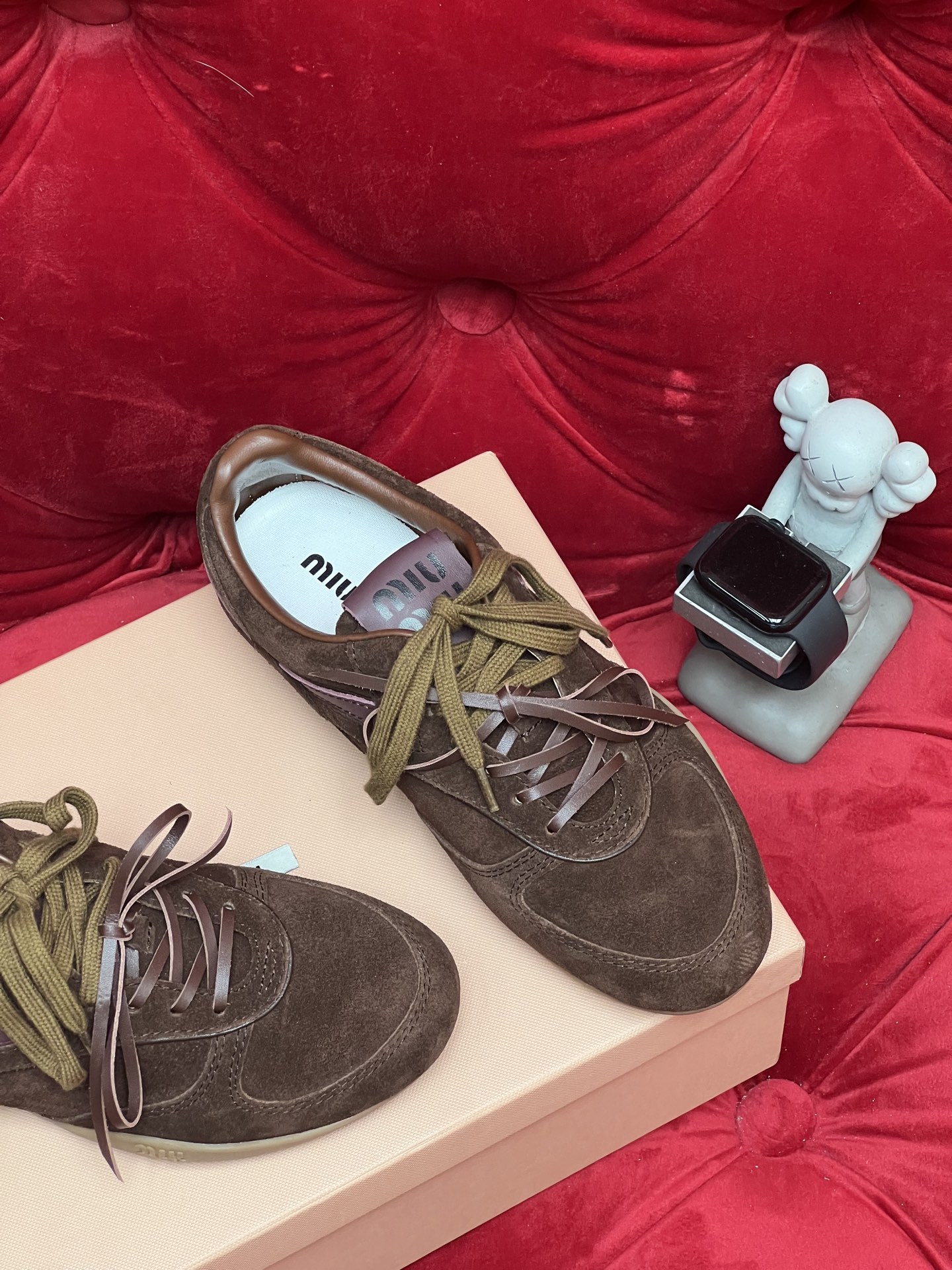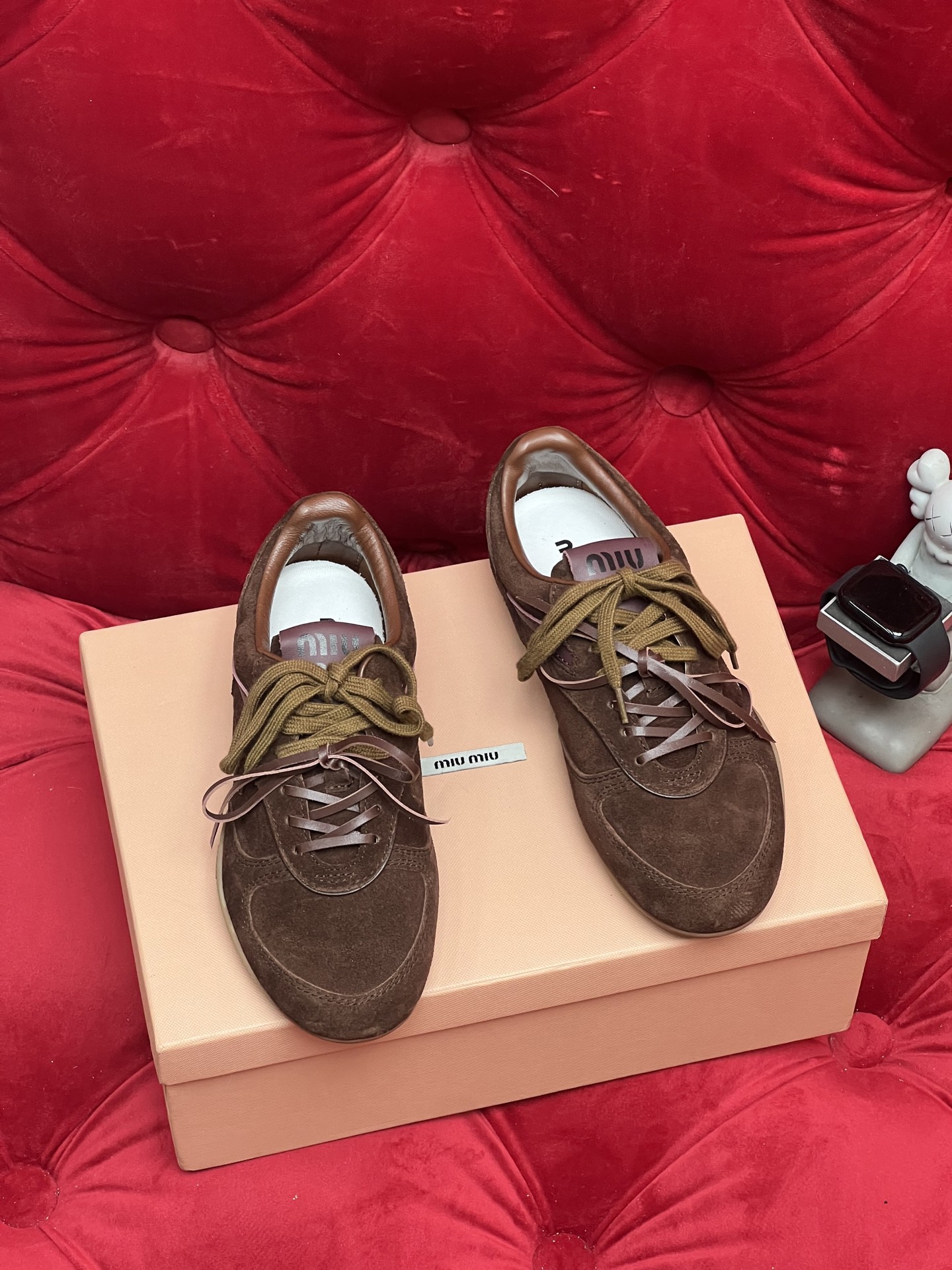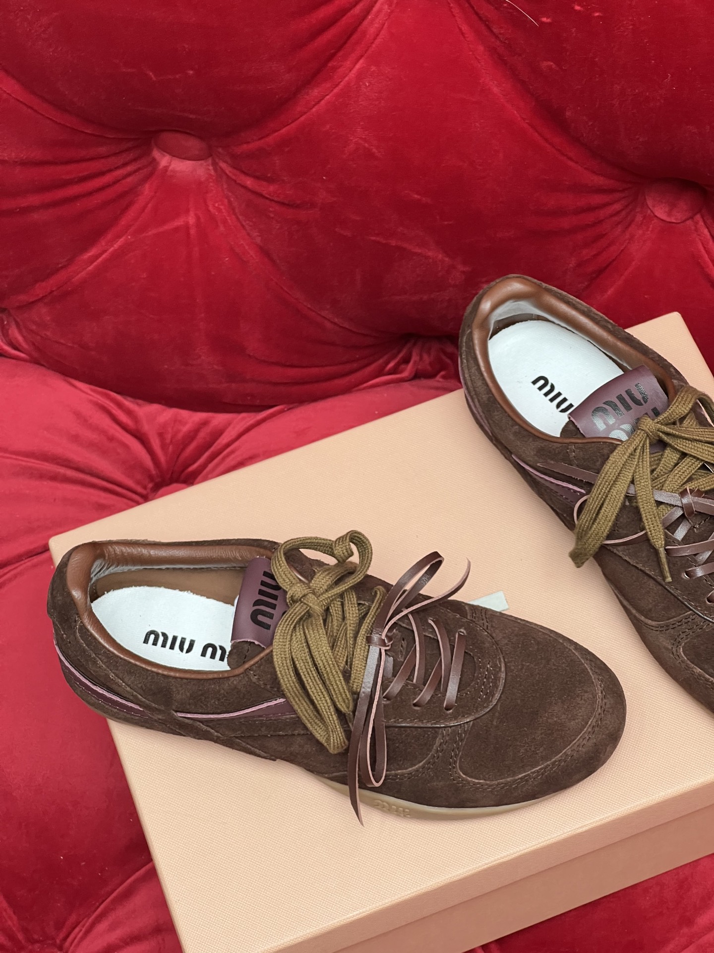 这款鞋子是AAAAA 1:1 质量 (非常棒). 使用了和原版一模一样的材料. 商标部分也保持了和缪缪/Miu Miu一样. 图片拍摄是实物鞋子拍摄, 您所收到的实物保证和我们图片一模一样.