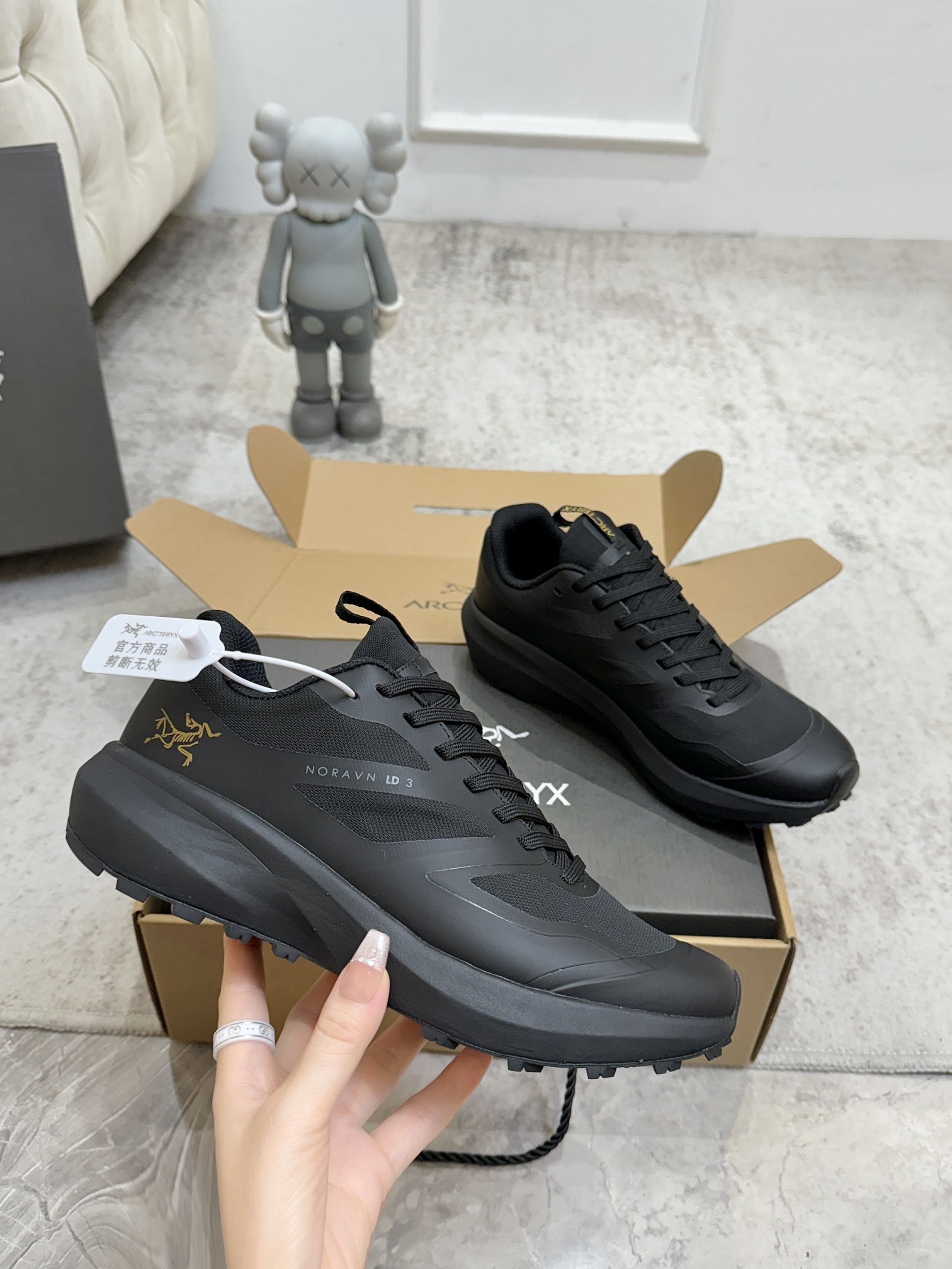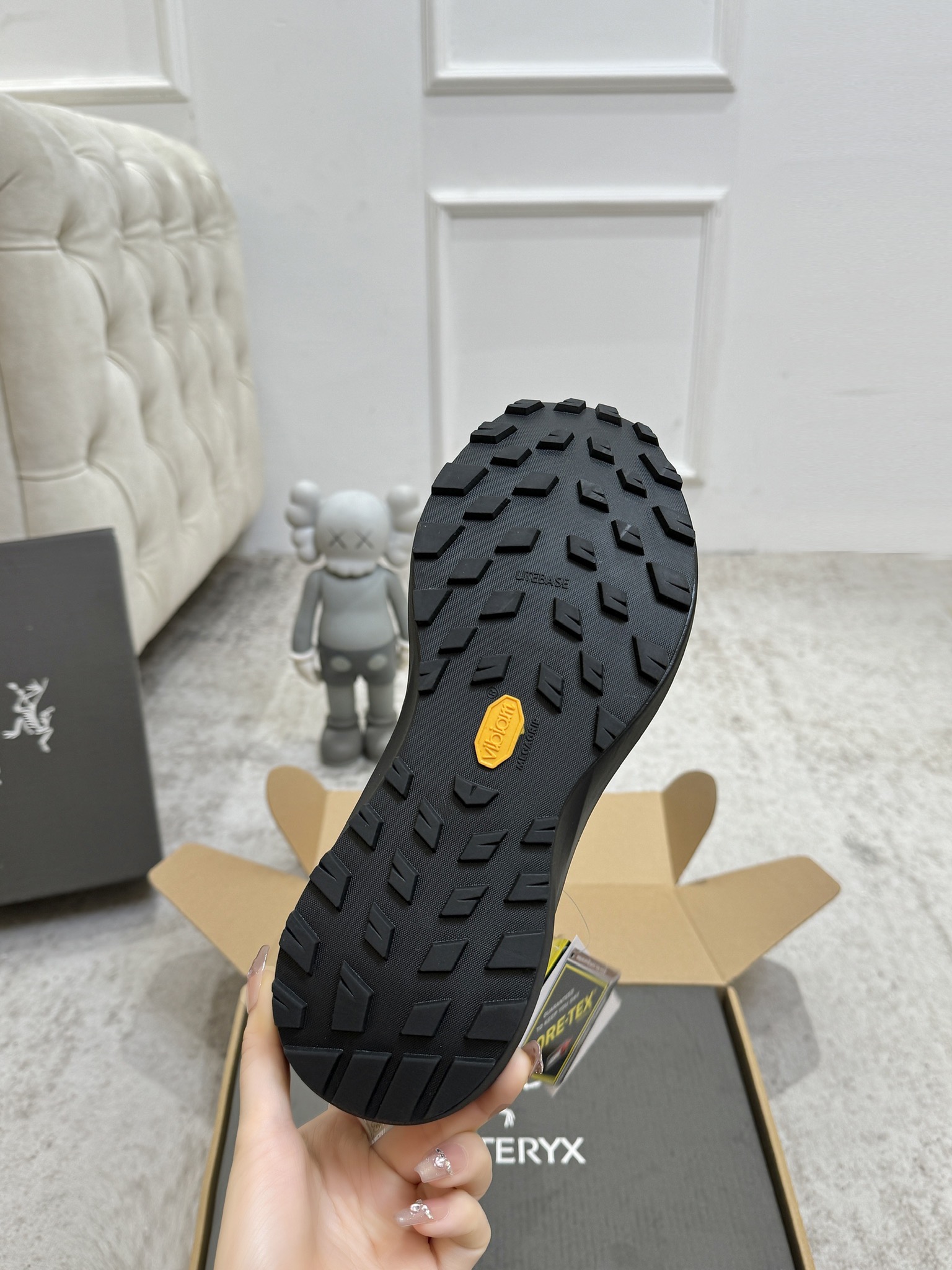 这款鞋子是AAAAA 1:1 质量 (非常棒). 使用了和原版一模一样的材料. 商标部分也保持了和ARC'TERYX一样. 图片拍摄是实物鞋子拍摄, 您所收到的实物保证和我们图片一模一样.