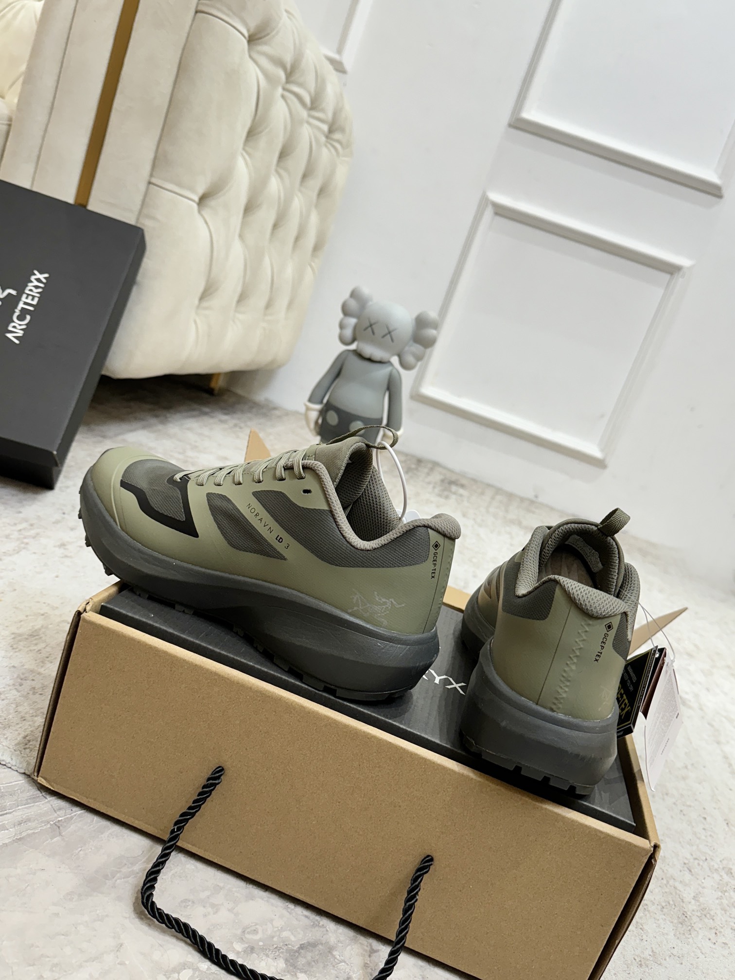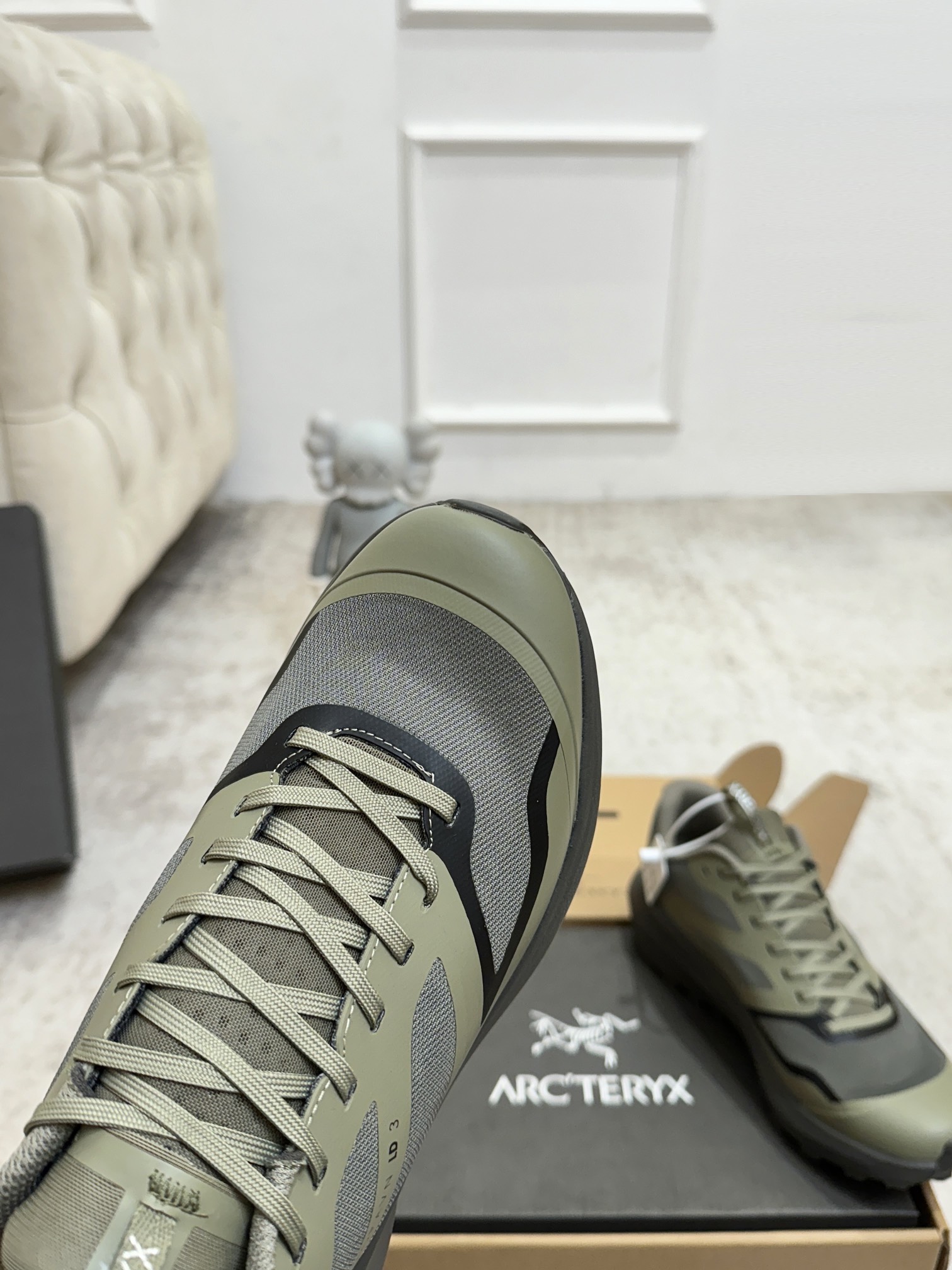 这款鞋子是AAAAA 1:1 质量 (非常棒). 使用了和原版一模一样的材料. 商标部分也保持了和ARC'TERYX一样. 图片拍摄是实物鞋子拍摄, 您所收到的实物保证和我们图片一模一样.
