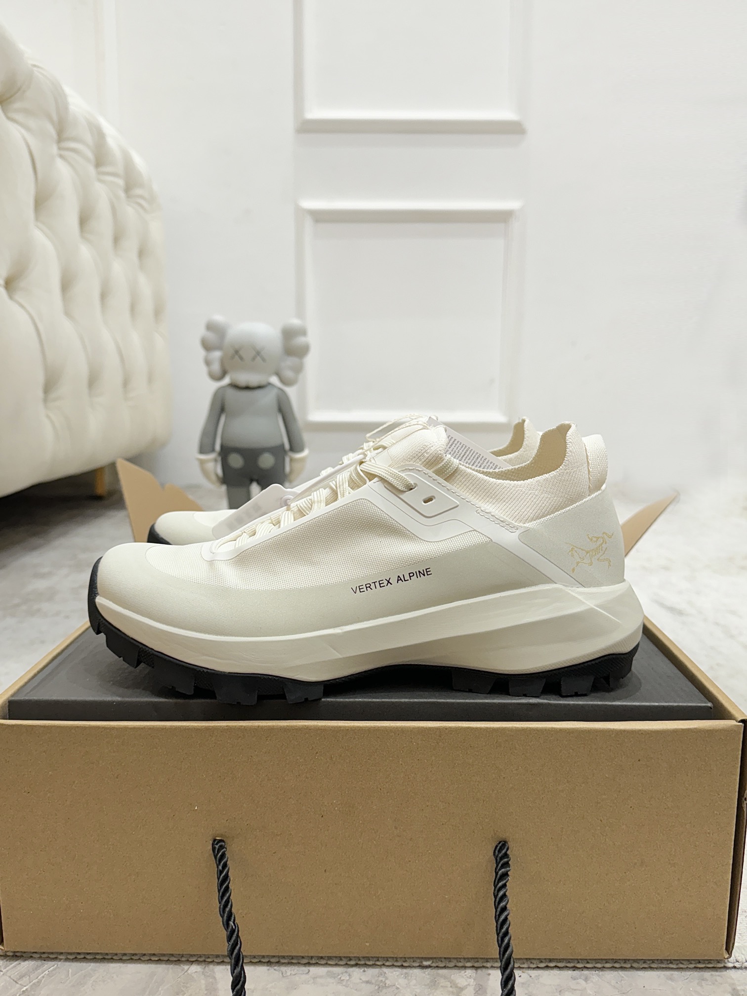 这款鞋子是AAAAA 1:1 质量 (非常棒). 使用了和原版一模一样的材料. 商标部分也保持了和ARC'TERYX一样. 图片拍摄是实物鞋子拍摄, 您所收到的实物保证和我们图片一模一样.