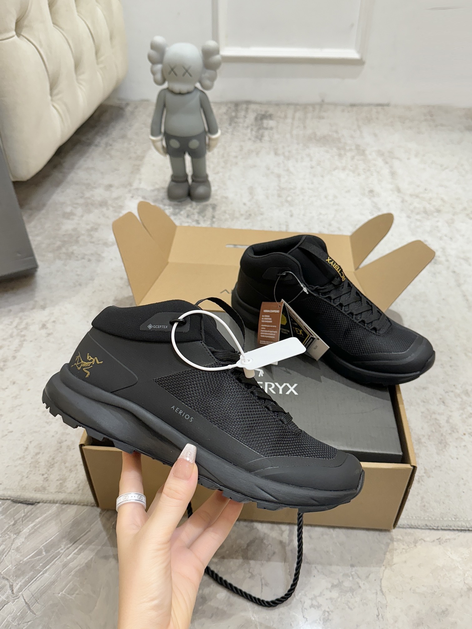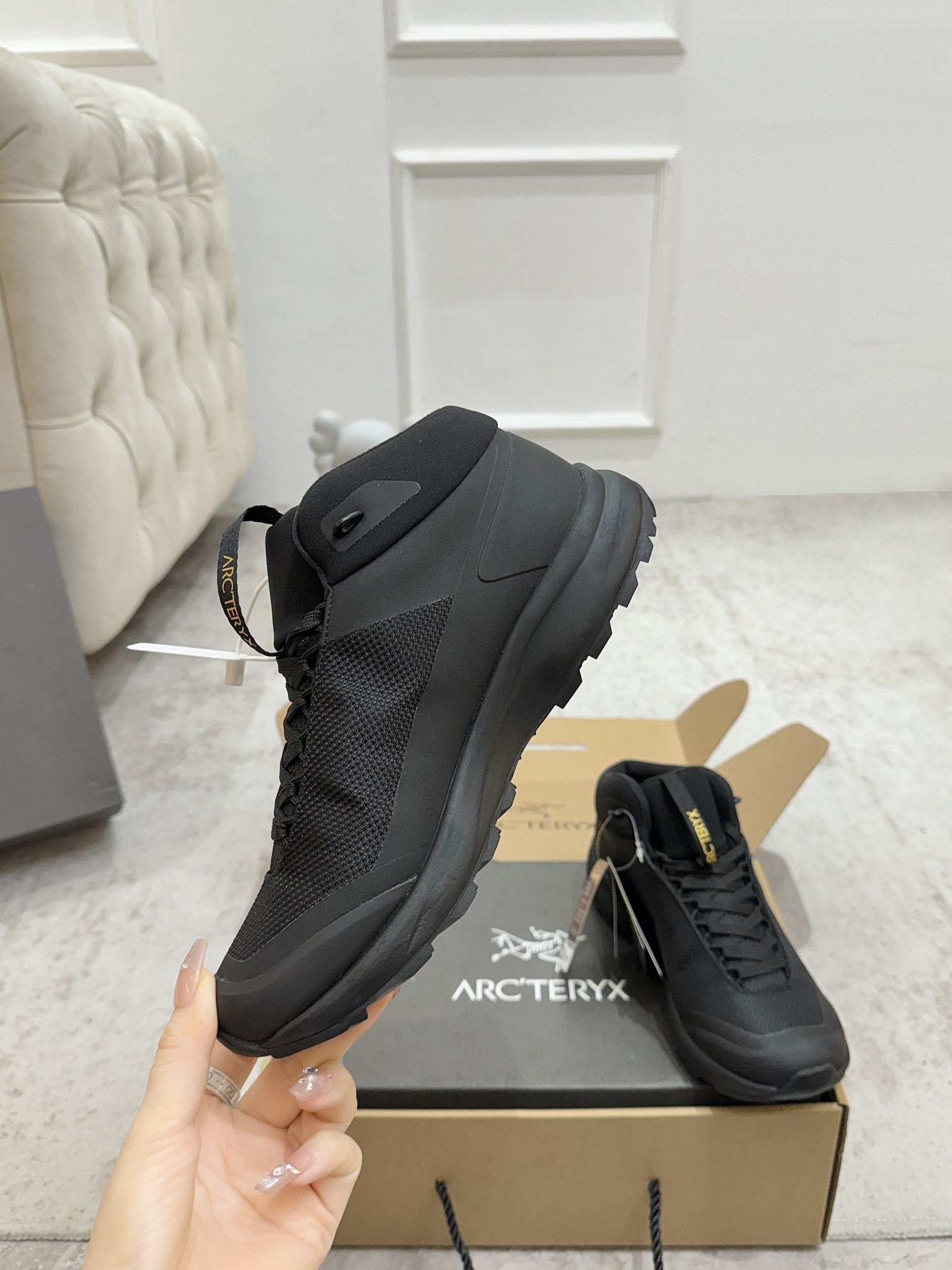 这款鞋子是AAAAA 1:1 质量 (非常棒). 使用了和原版一模一样的材料. 商标部分也保持了和ARC'TERYX一样. 图片拍摄是实物鞋子拍摄, 您所收到的实物保证和我们图片一模一样.
