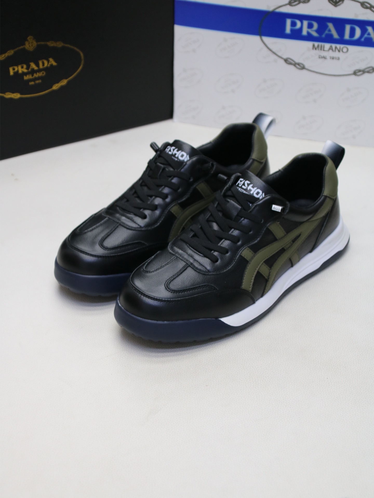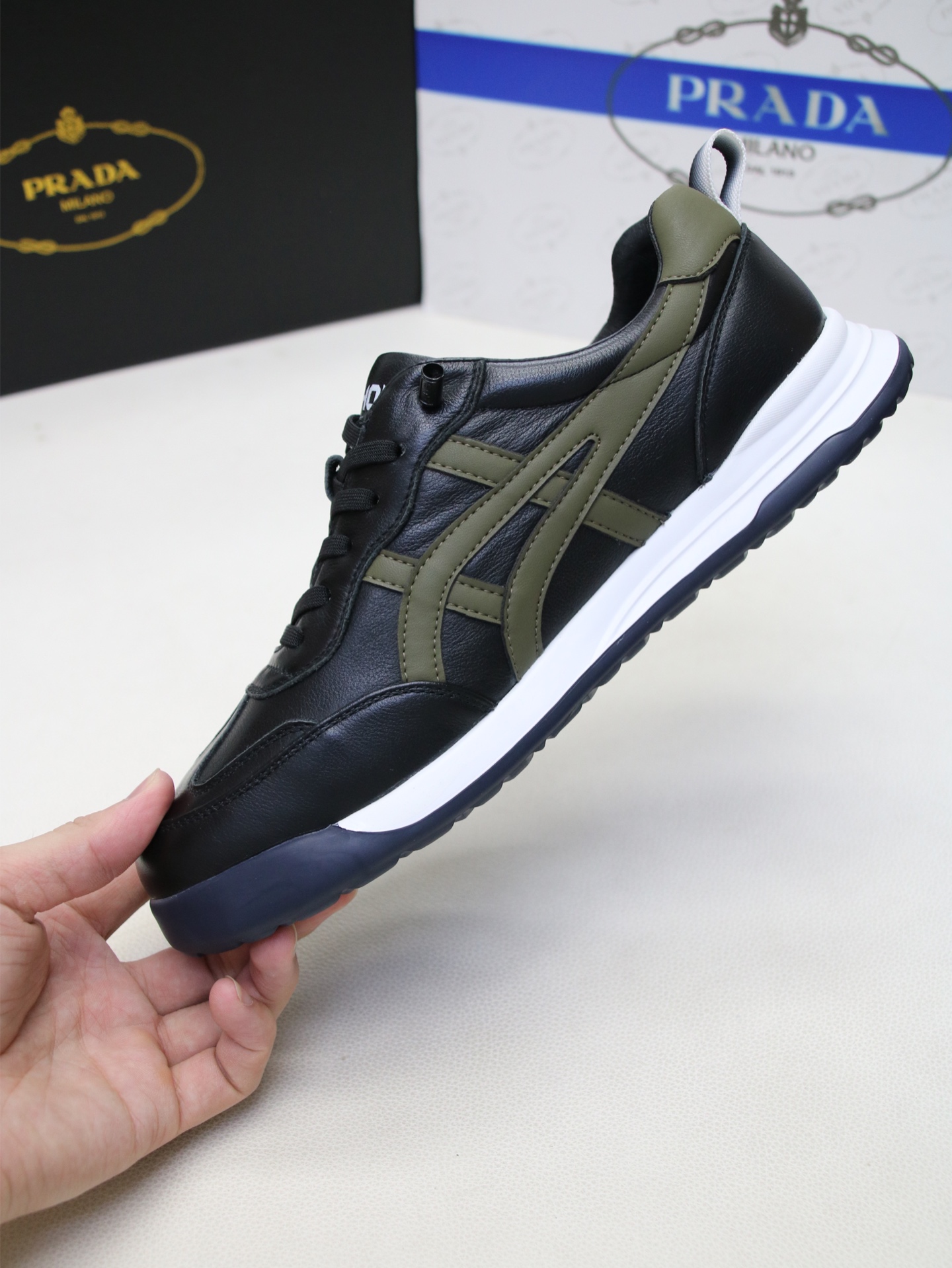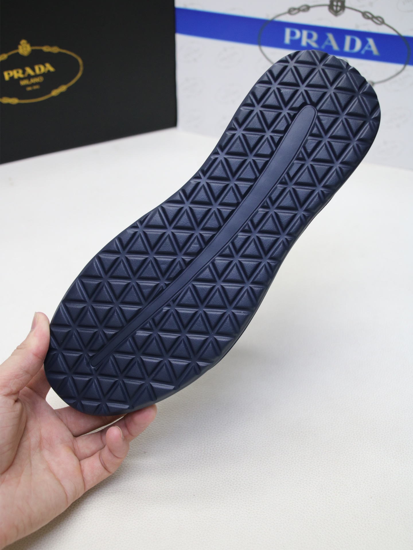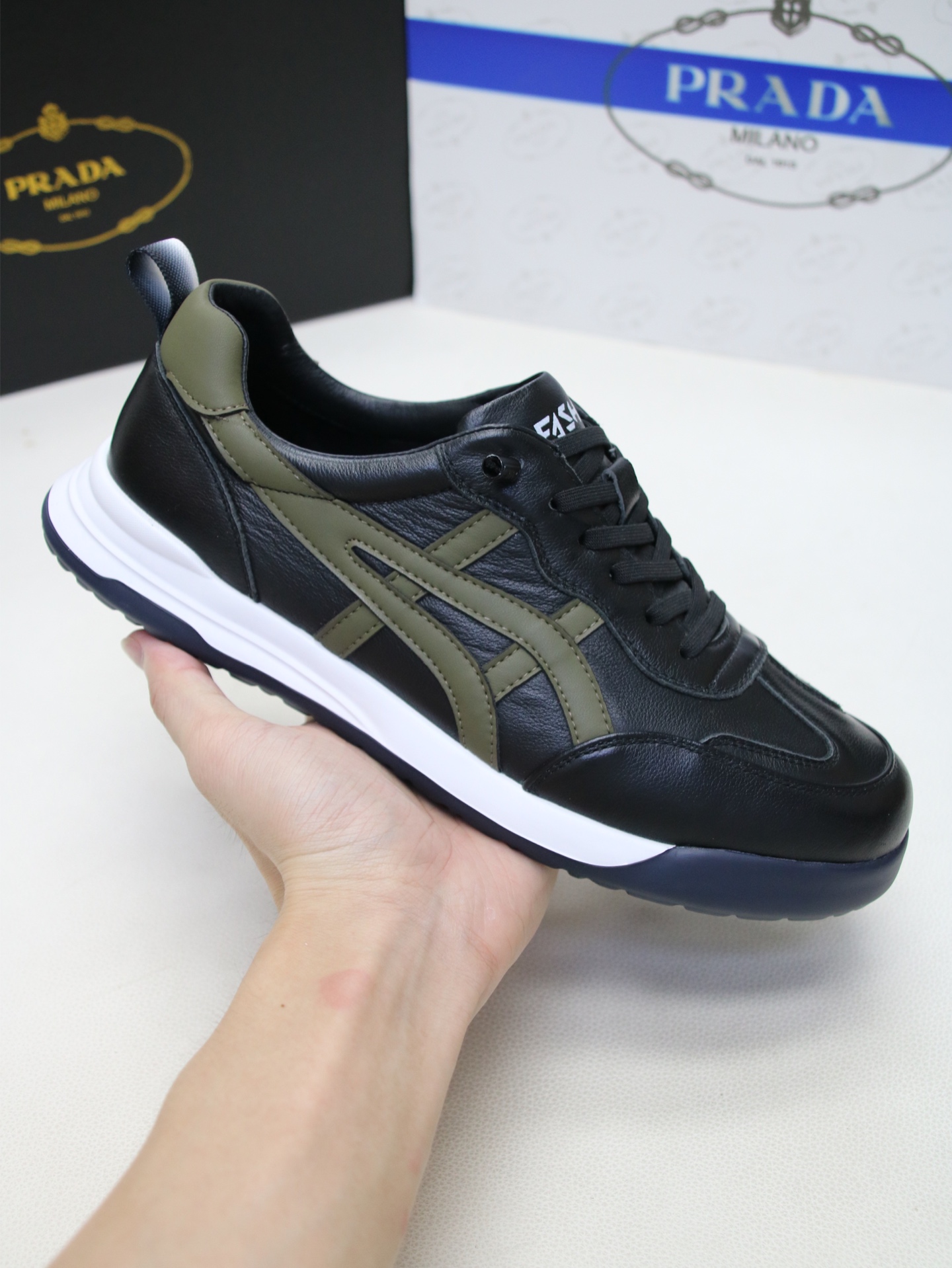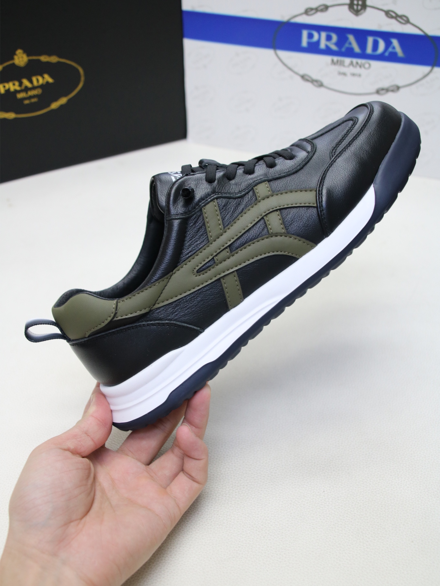 这款鞋子是AAAAA 1:1 质量 (非常棒). 使用了和原版一模一样的材料. 商标部分也保持了和普拉达/Prada一样. 图片拍摄是实物鞋子拍摄, 您所收到的实物保证和我们图片一模一样.