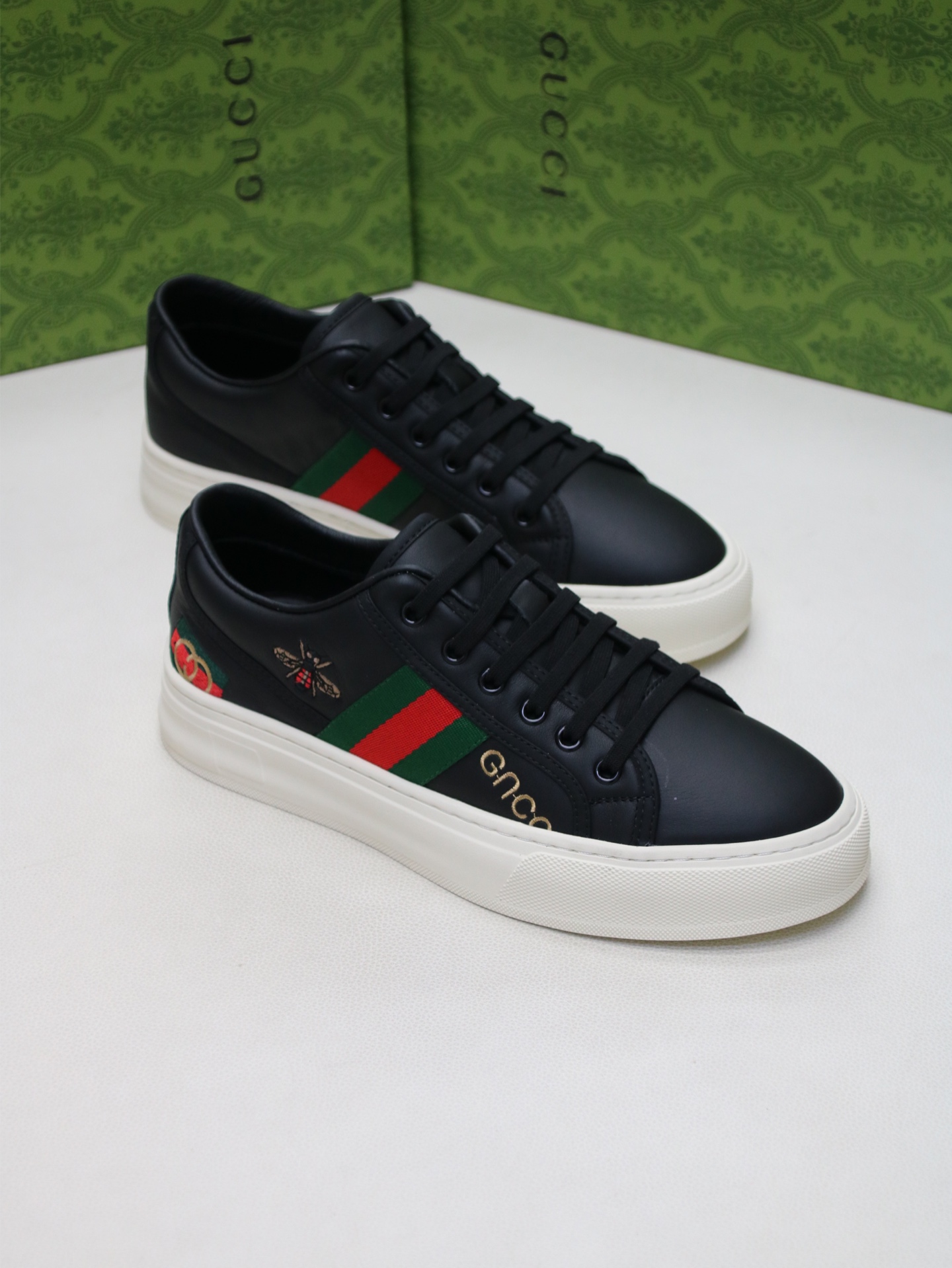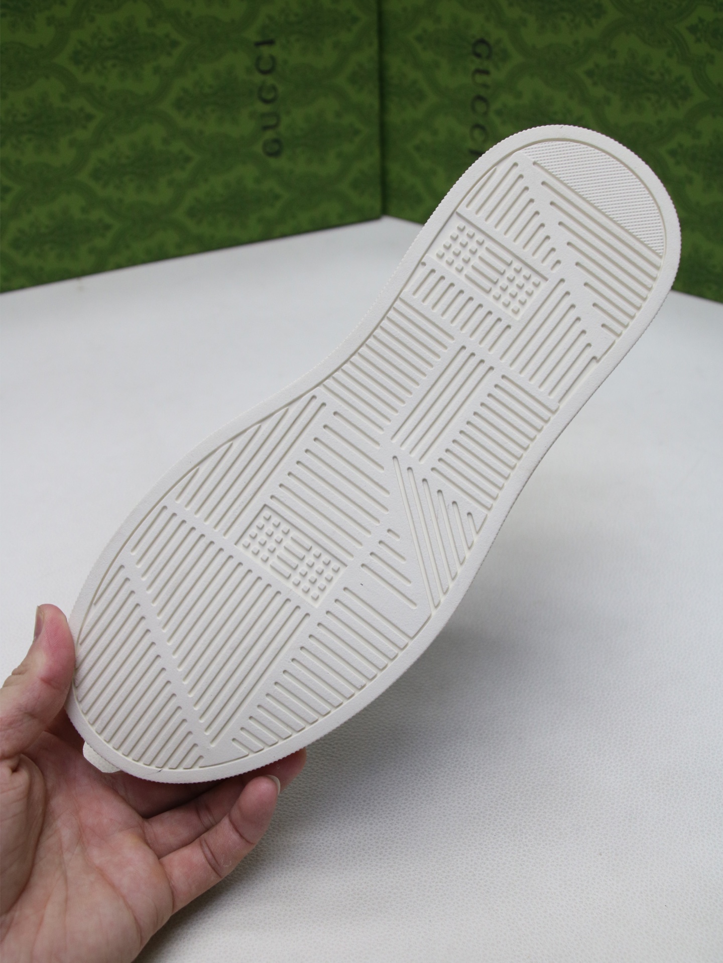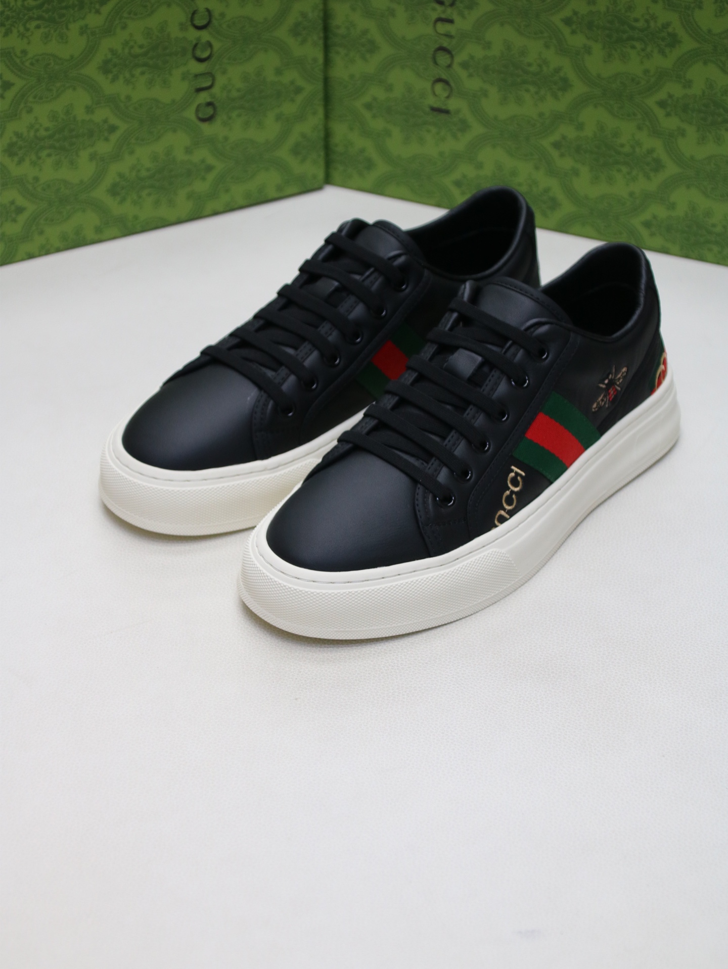 这款鞋子是AAAAA 1:1 质量 (非常棒). 使用了和原版一模一样的材料. 商标部分也保持了和古奇/Gucci一样. 图片拍摄是实物鞋子拍摄, 您所收到的实物保证和我们图片一模一样.