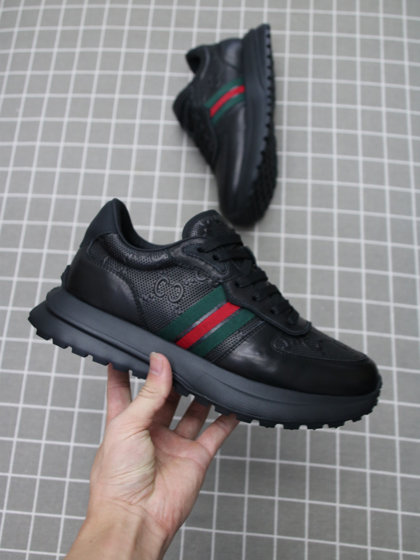 这款鞋子是AAAAA 1:1 质量 (非常棒). 使用了和原版一模一样的材料. 商标部分也保持了和古奇/Gucci一样. 图片拍摄是实物鞋子拍摄, 您所收到的实物保证和我们图片一模一样.