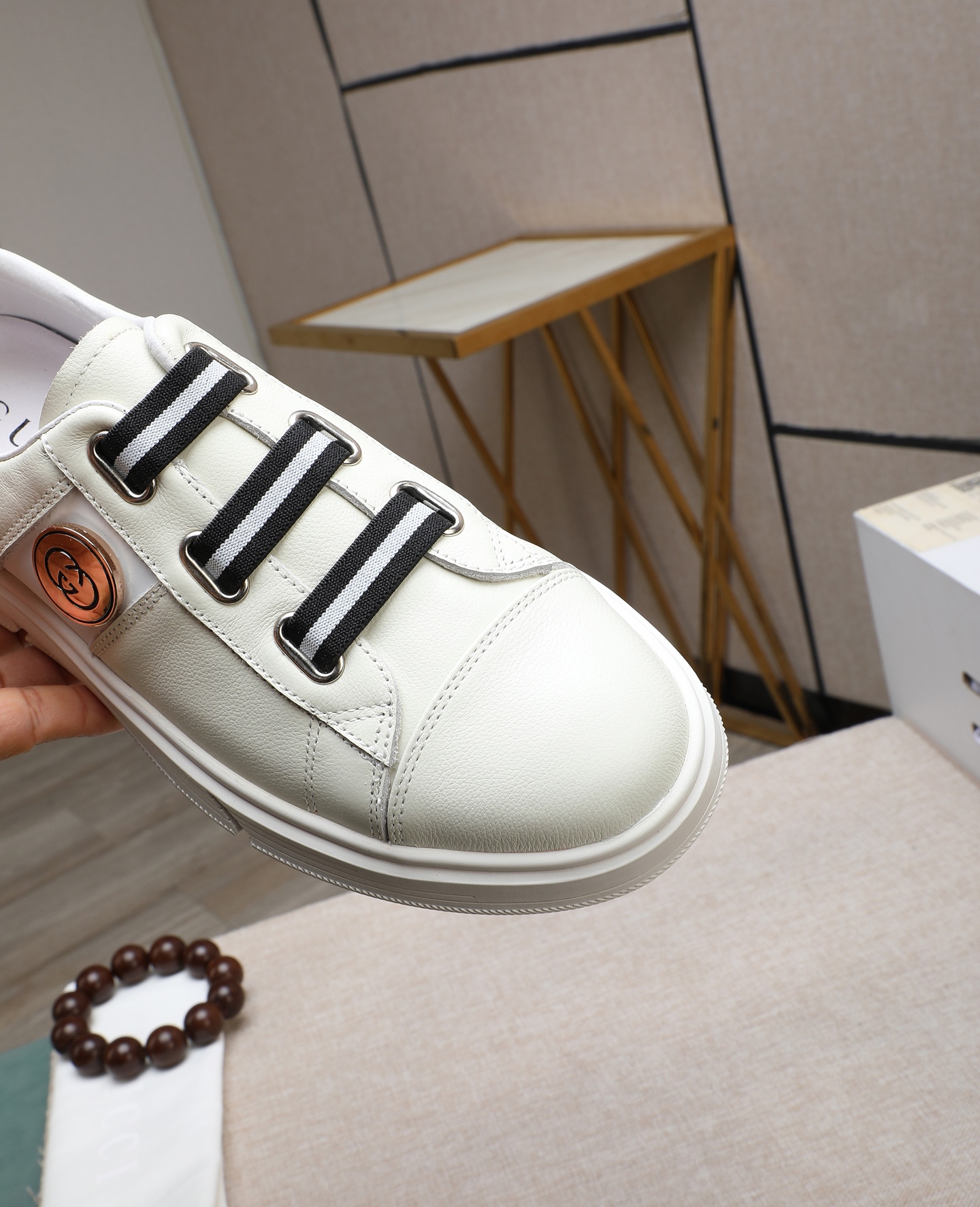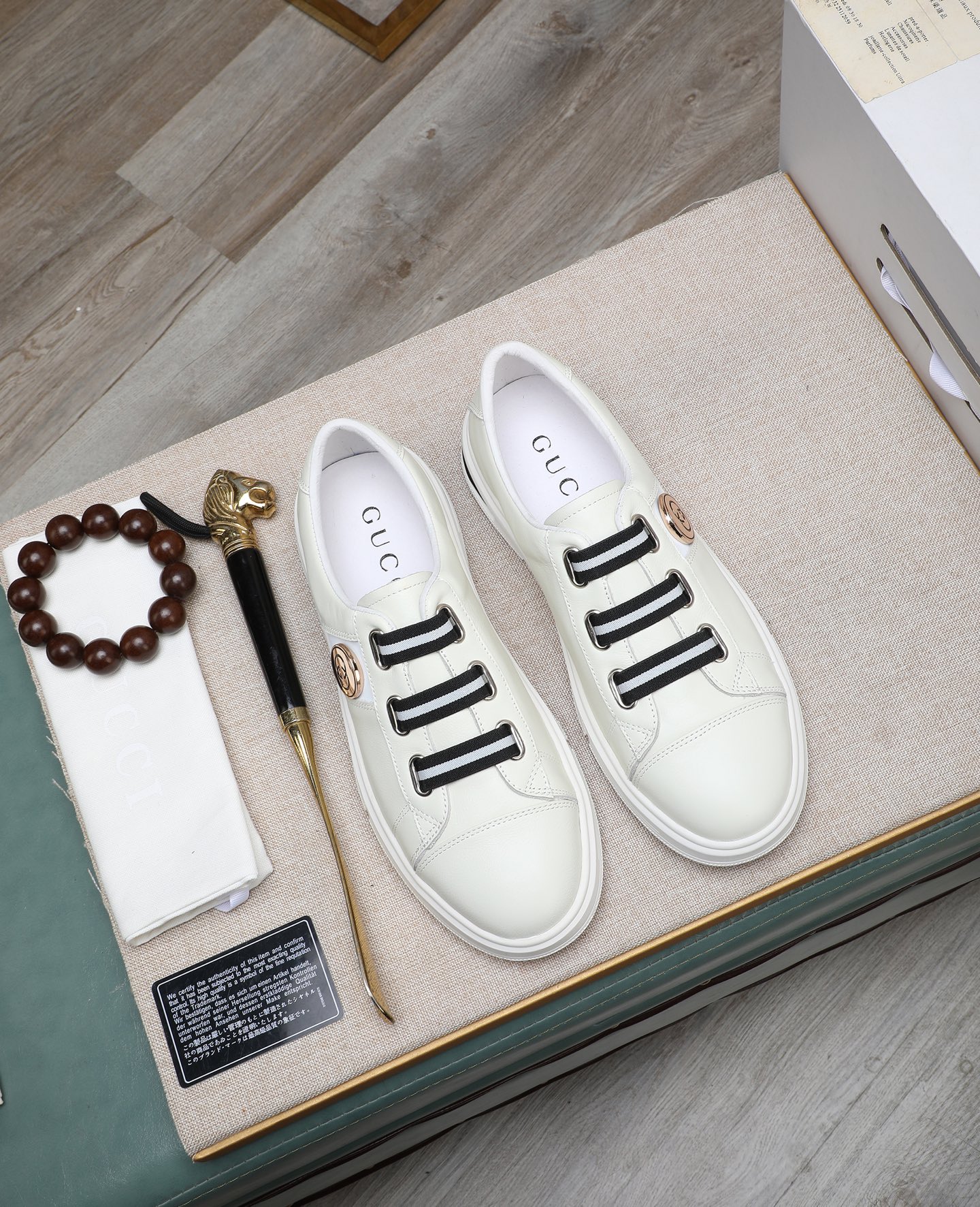 这款鞋子是AAAAA 1:1 质量 (非常棒). 使用了和原版一模一样的材料. 商标部分也保持了和古奇/Gucci一样. 图片拍摄是实物鞋子拍摄, 您所收到的实物保证和我们图片一模一样.