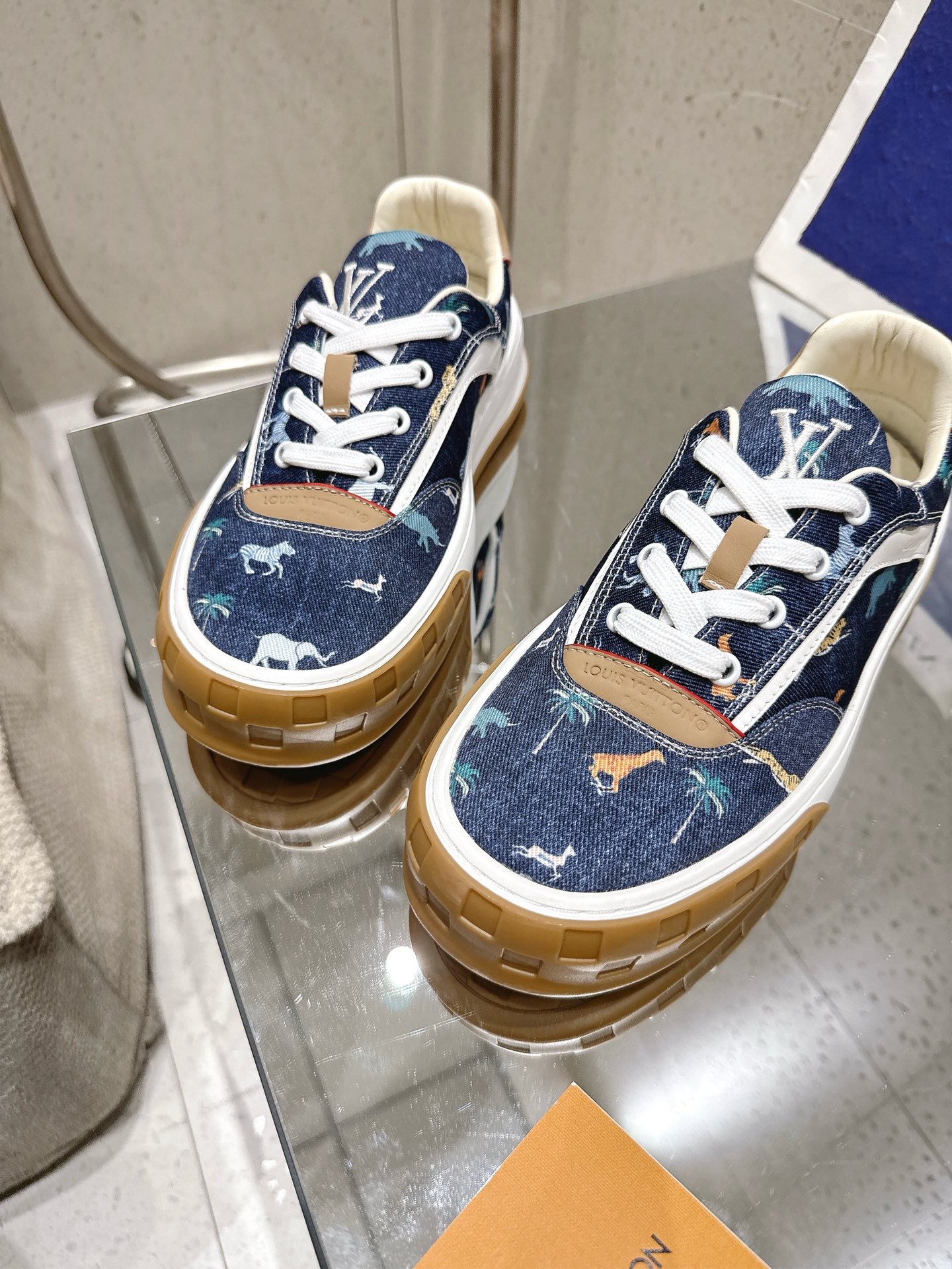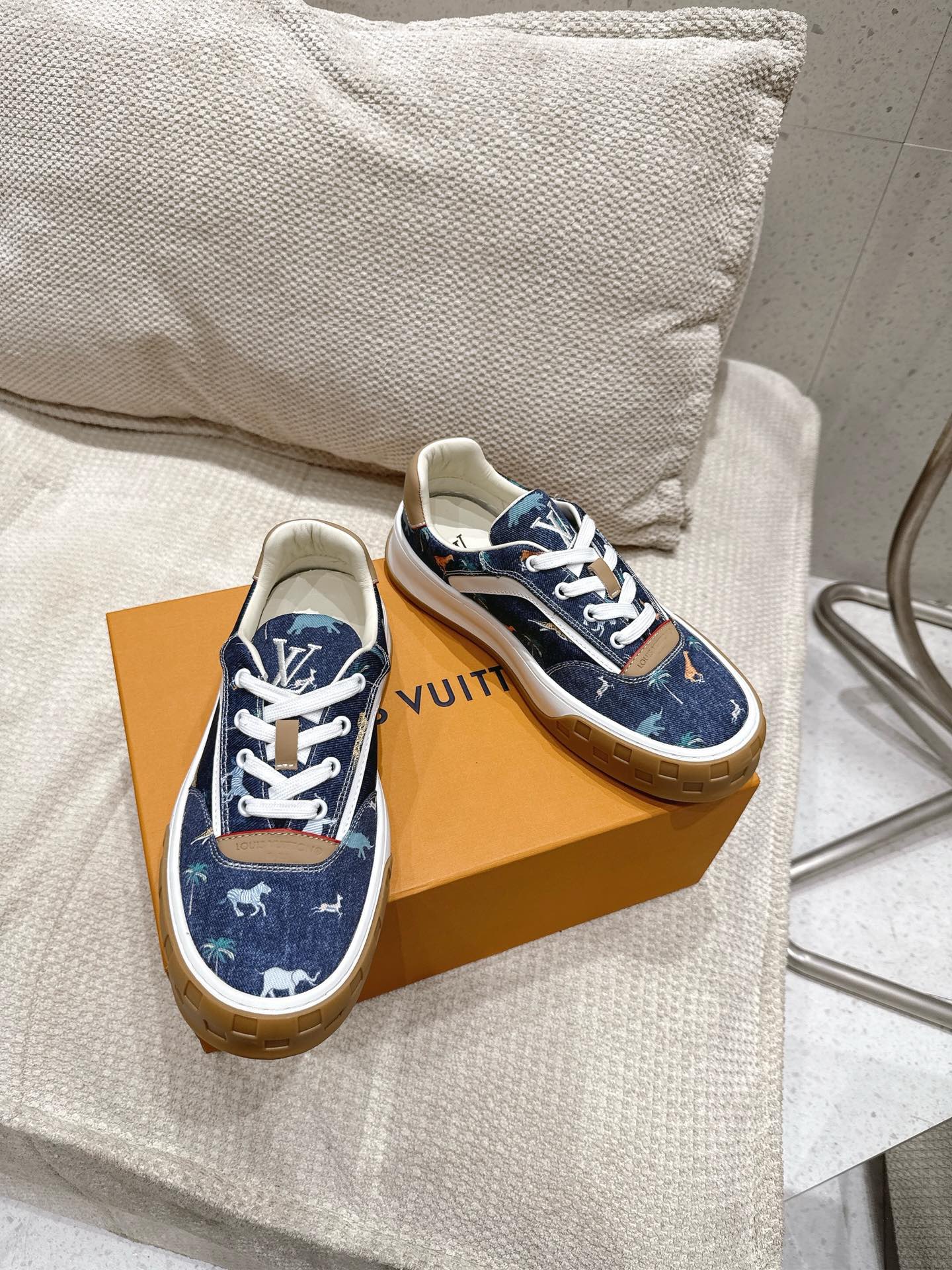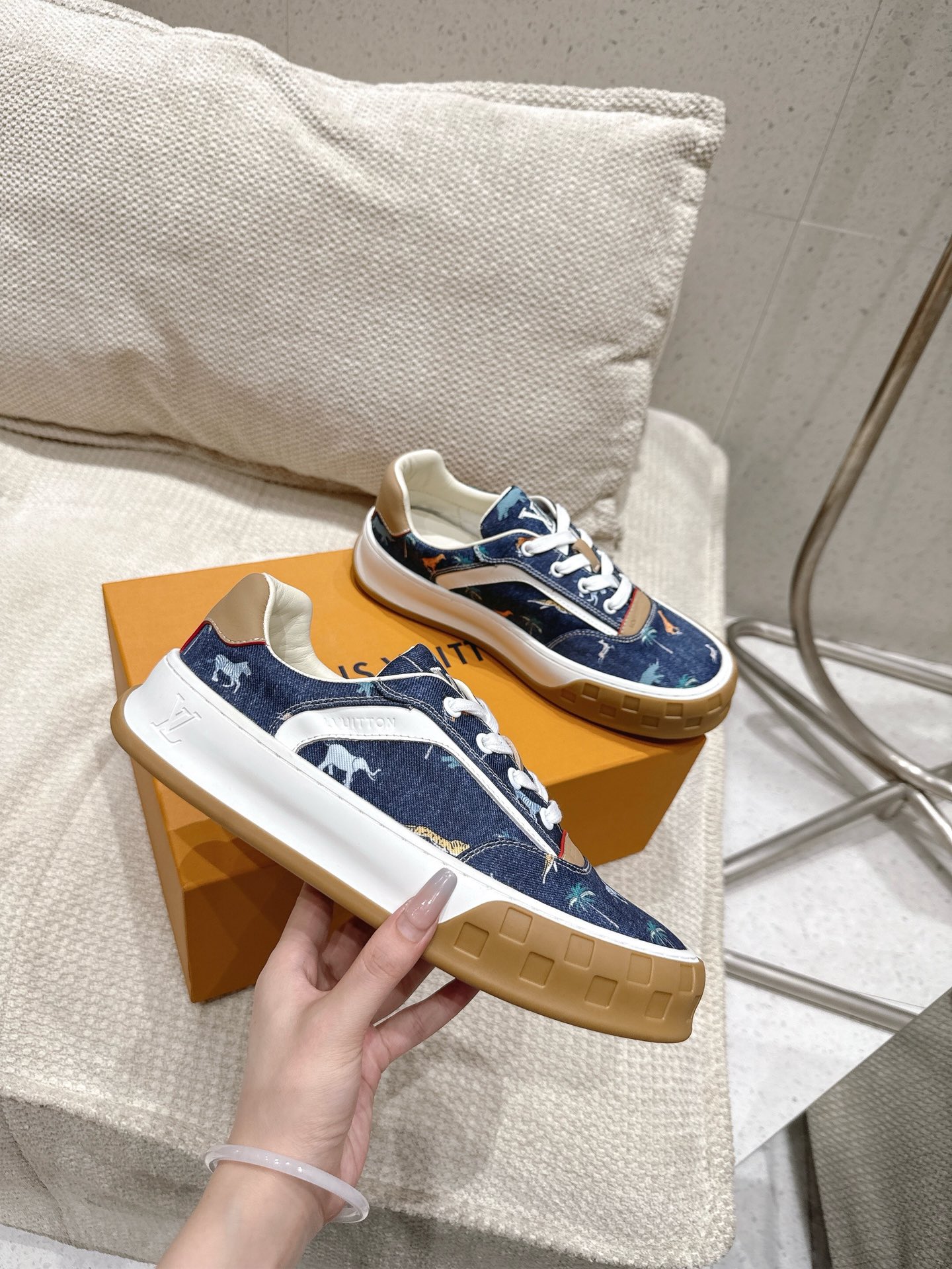 这款鞋子是AAAAA 1:1 质量 (非常棒). 使用了和原版一模一样的材料. 商标部分也保持了和路易威登/Louis Vuitton一样. 图片拍摄是实物鞋子拍摄, 您所收到的实物保证和我们图片一模一样.