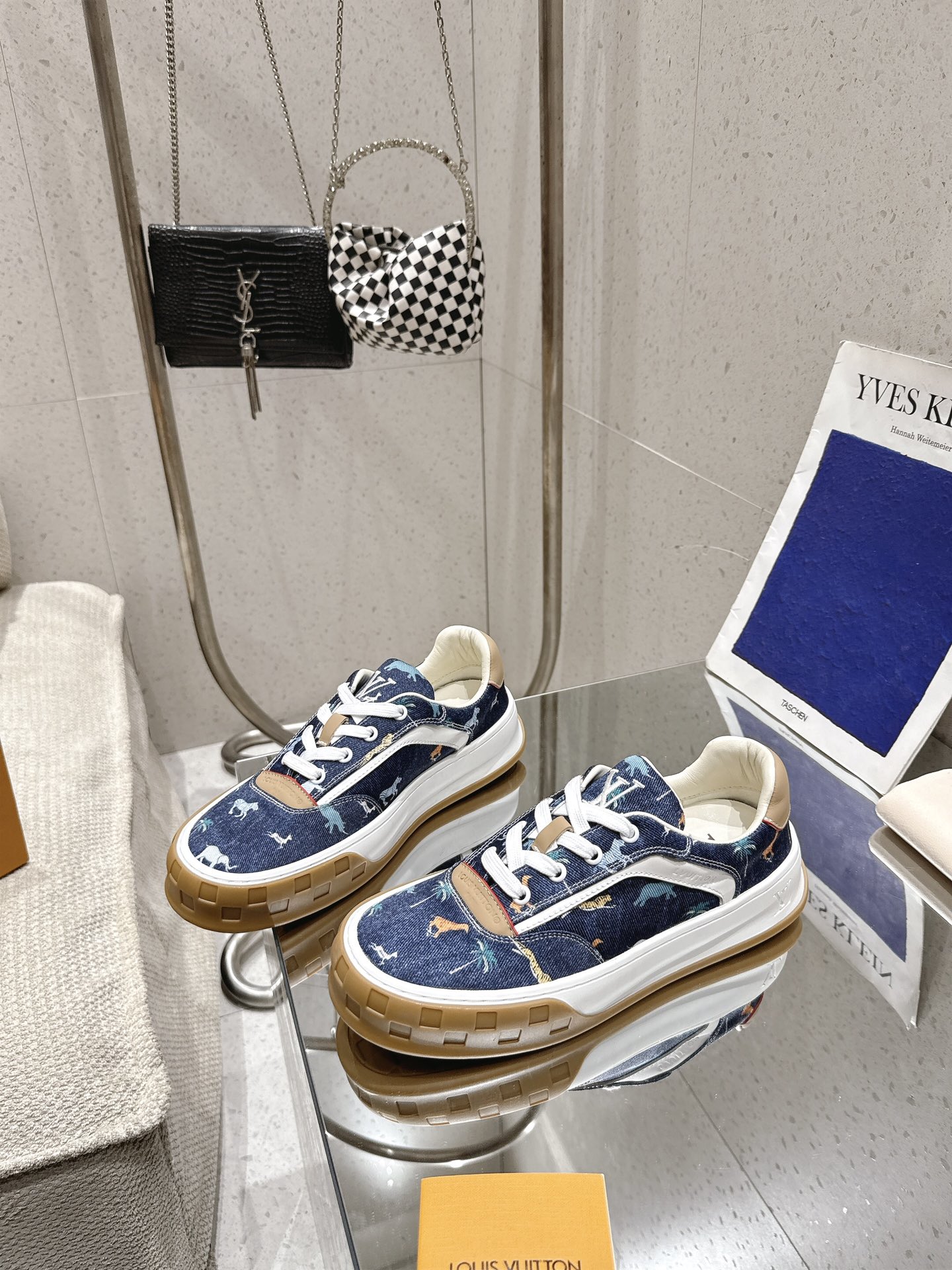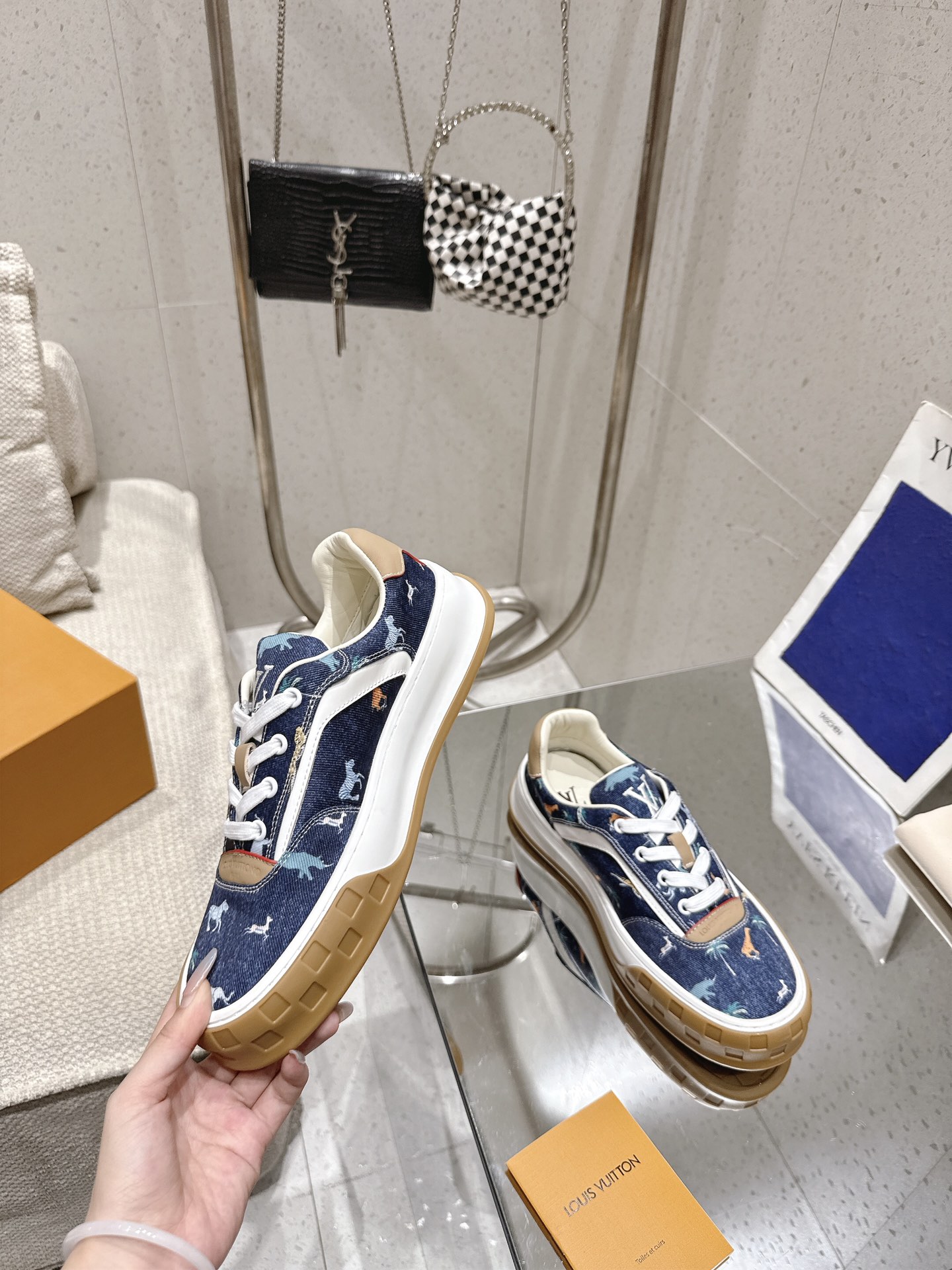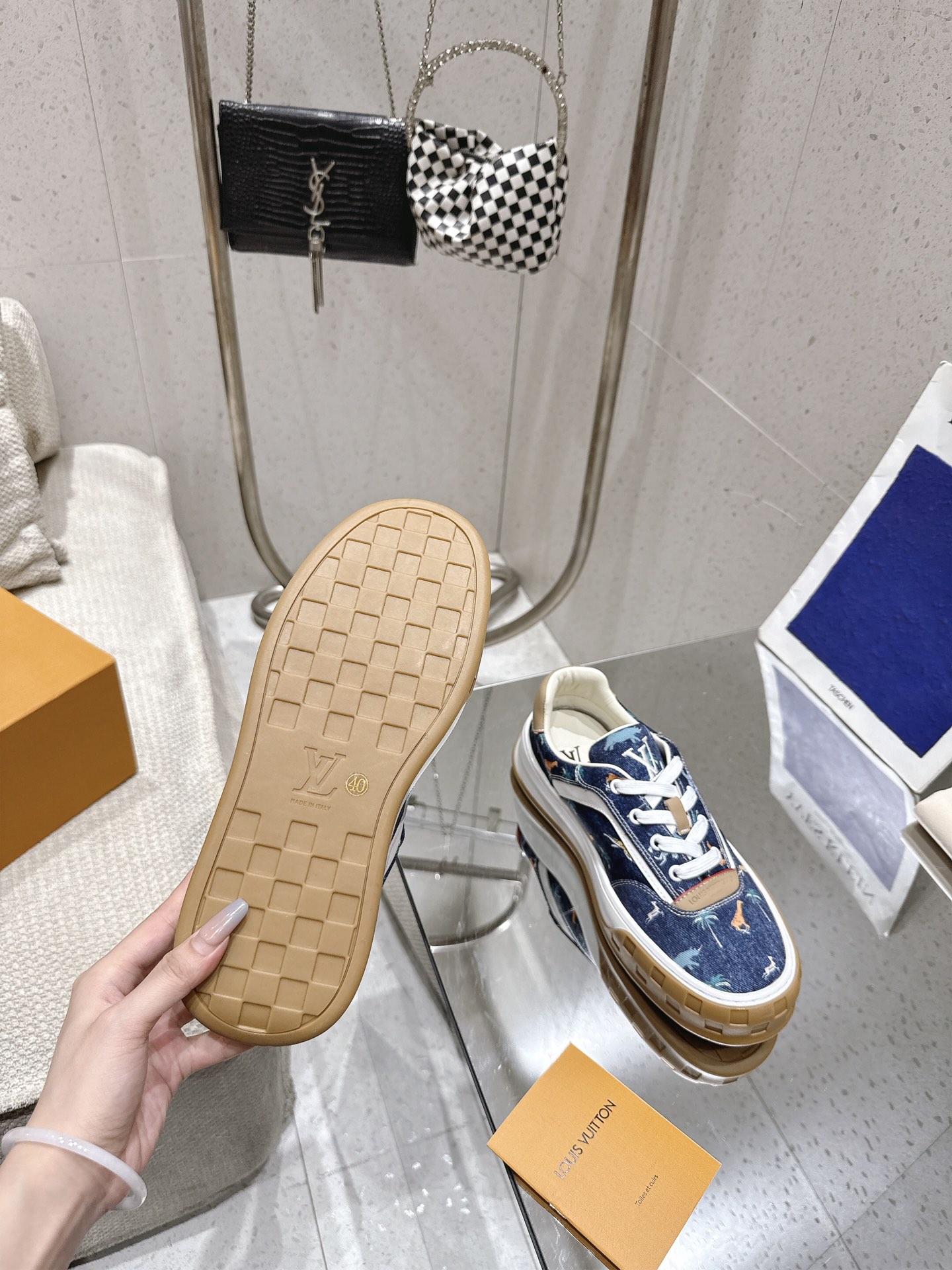 这款鞋子是AAAAA 1:1 质量 (非常棒). 使用了和原版一模一样的材料. 商标部分也保持了和路易威登/Louis Vuitton一样. 图片拍摄是实物鞋子拍摄, 您所收到的实物保证和我们图片一模一样.