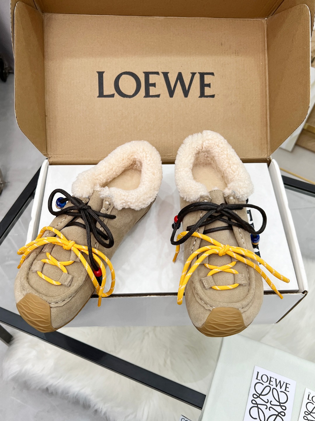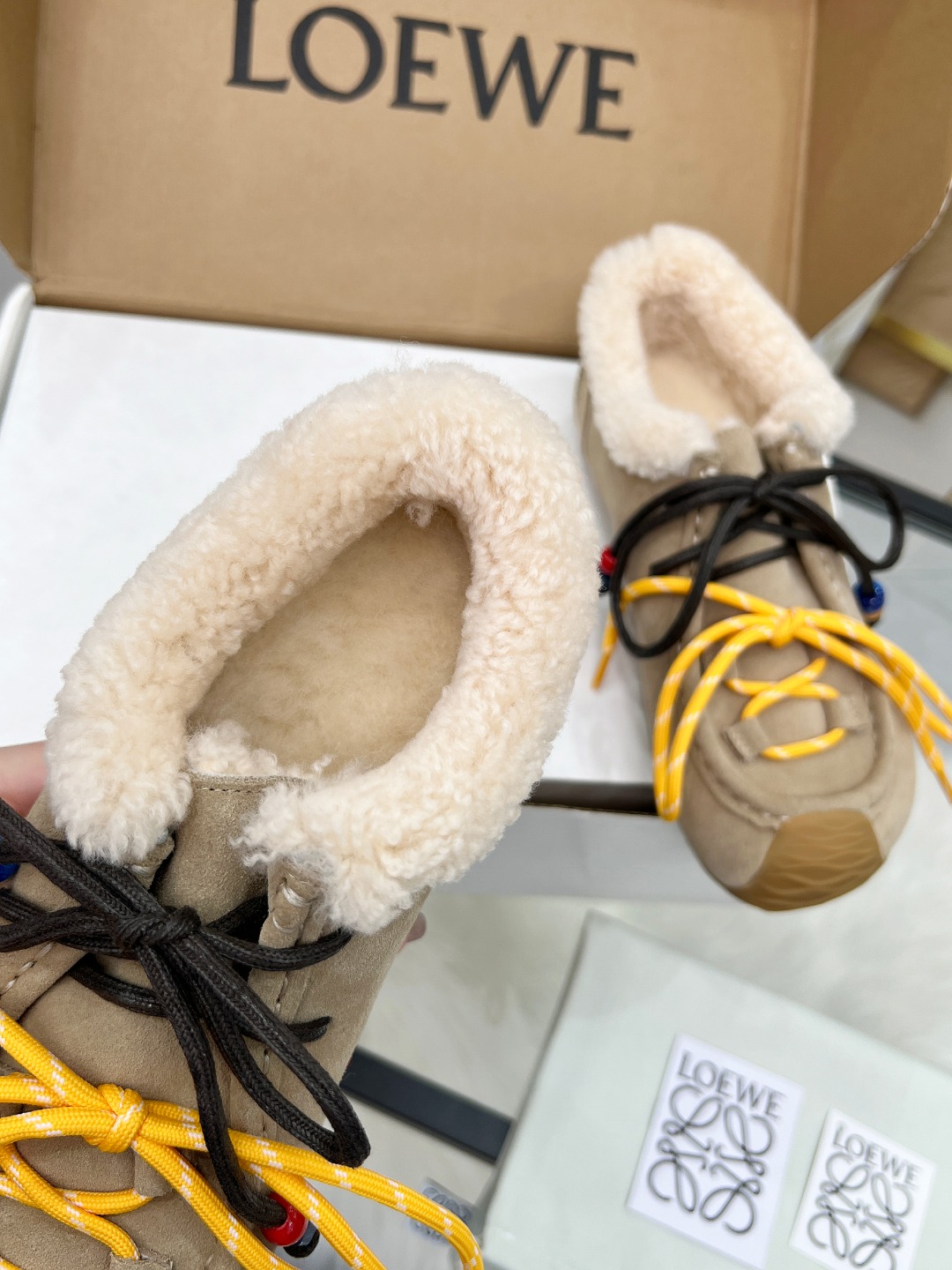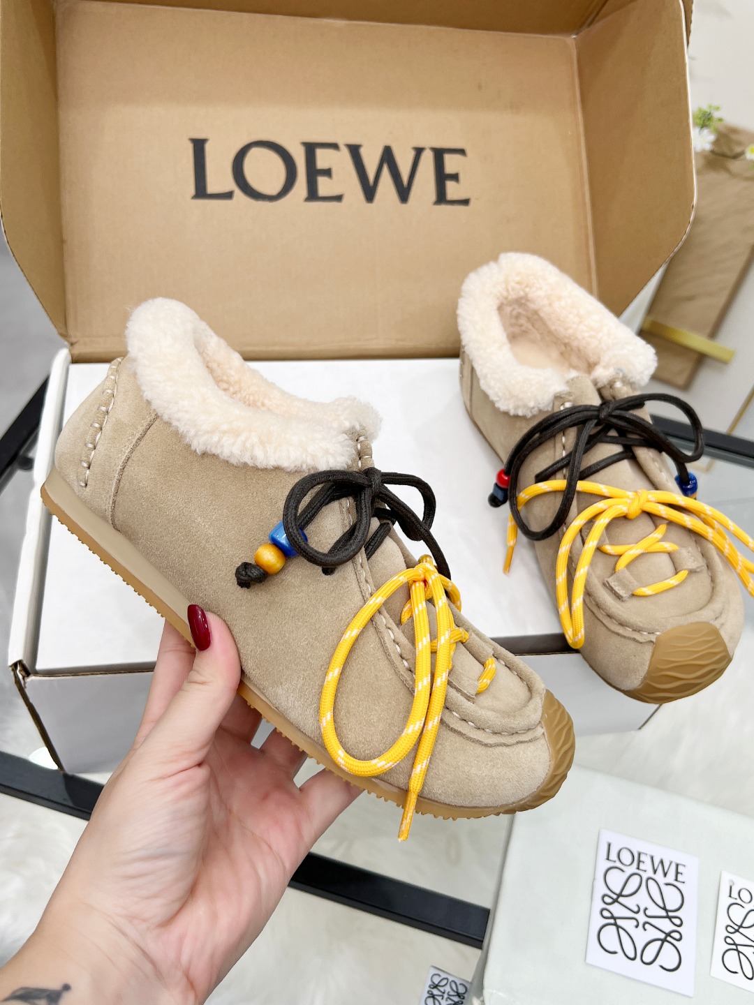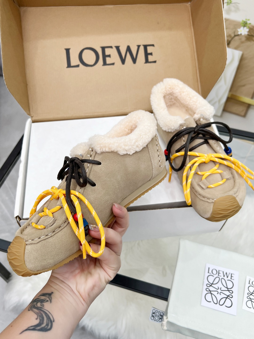 这款鞋子是AAAAA 1:1 质量 (非常棒). 使用了和原版一模一样的材料. 商标部分也保持了和罗意威/Loewe一样. 图片拍摄是实物鞋子拍摄, 您所收到的实物保证和我们图片一模一样.