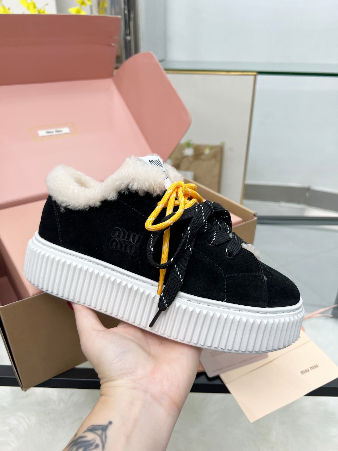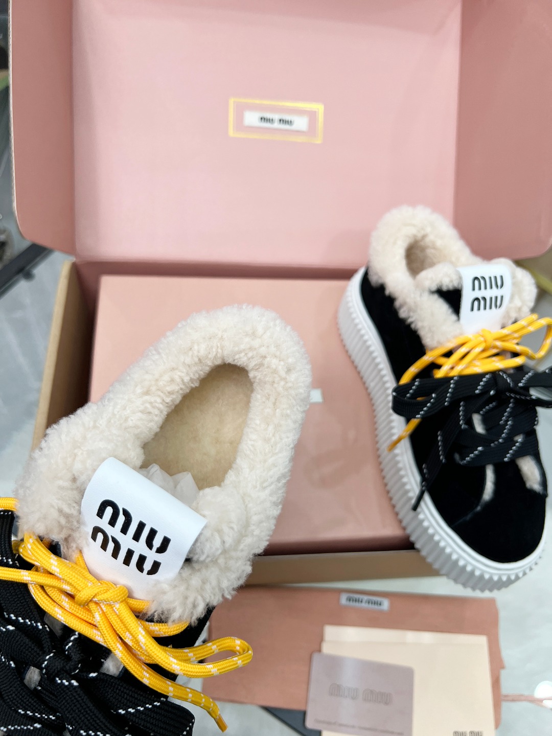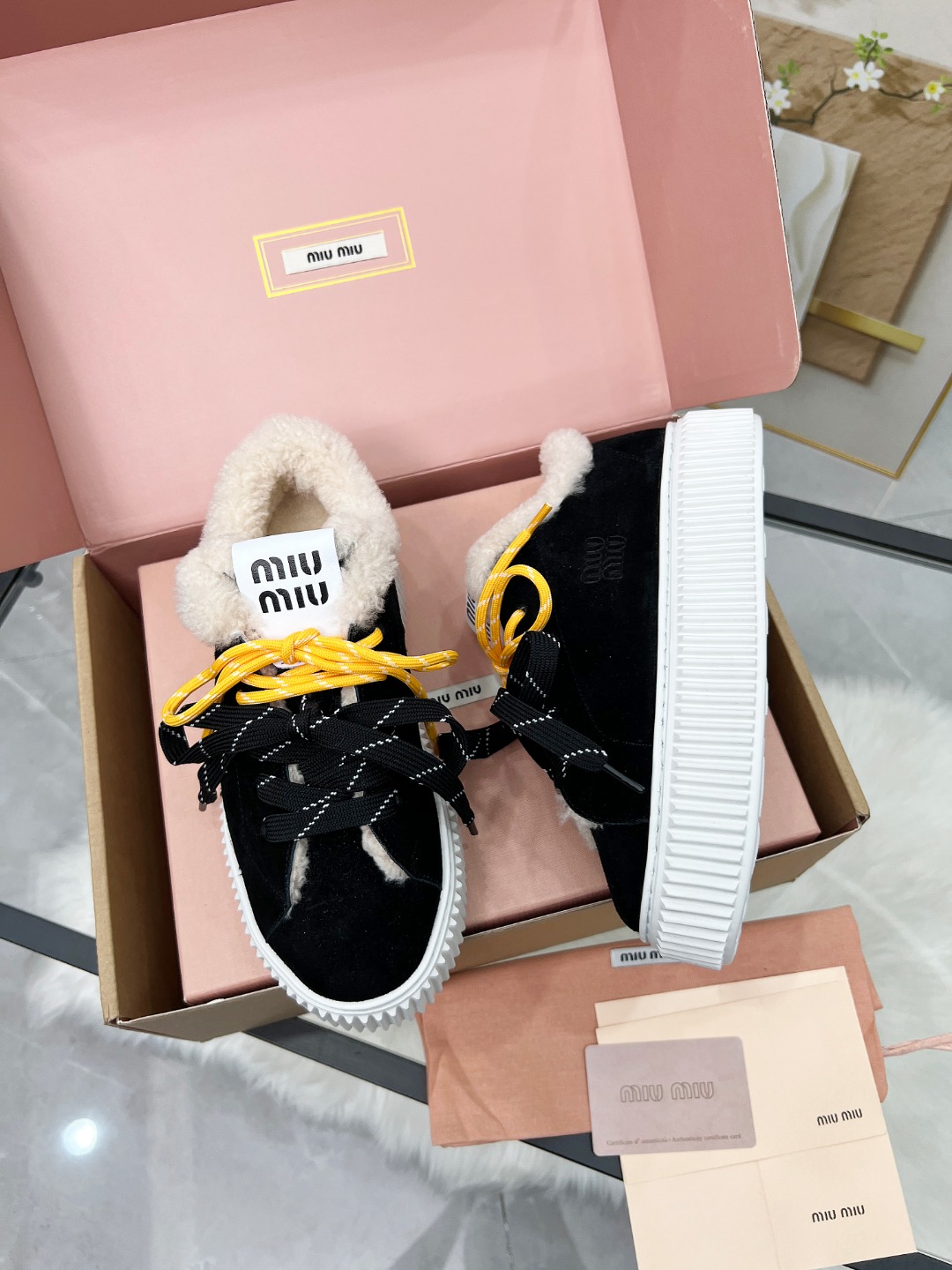 这款鞋子是AAAAA 1:1 质量 (非常棒). 使用了和原版一模一样的材料. 商标部分也保持了和缪缪/Miu Miu一样. 图片拍摄是实物鞋子拍摄, 您所收到的实物保证和我们图片一模一样.