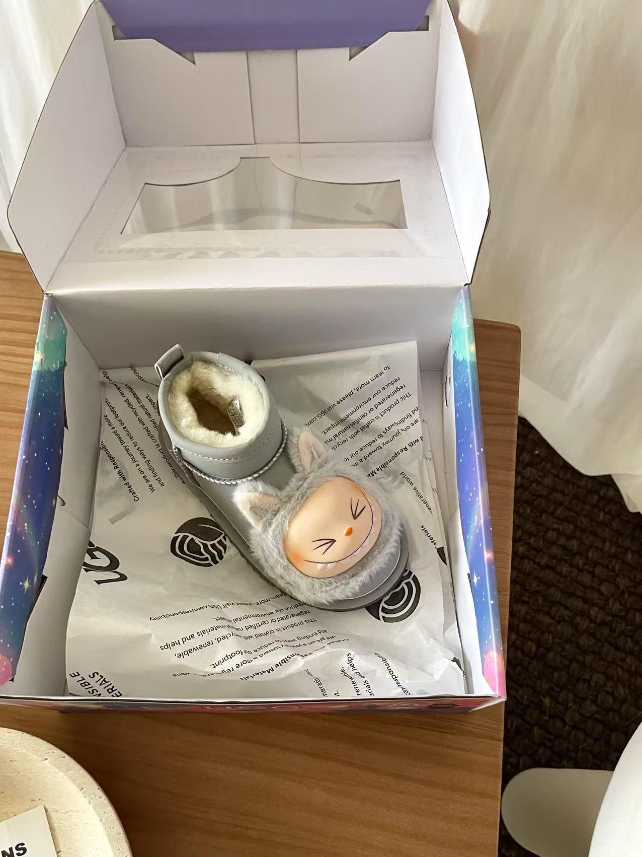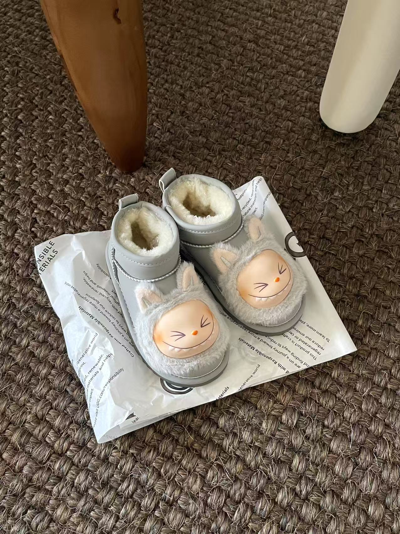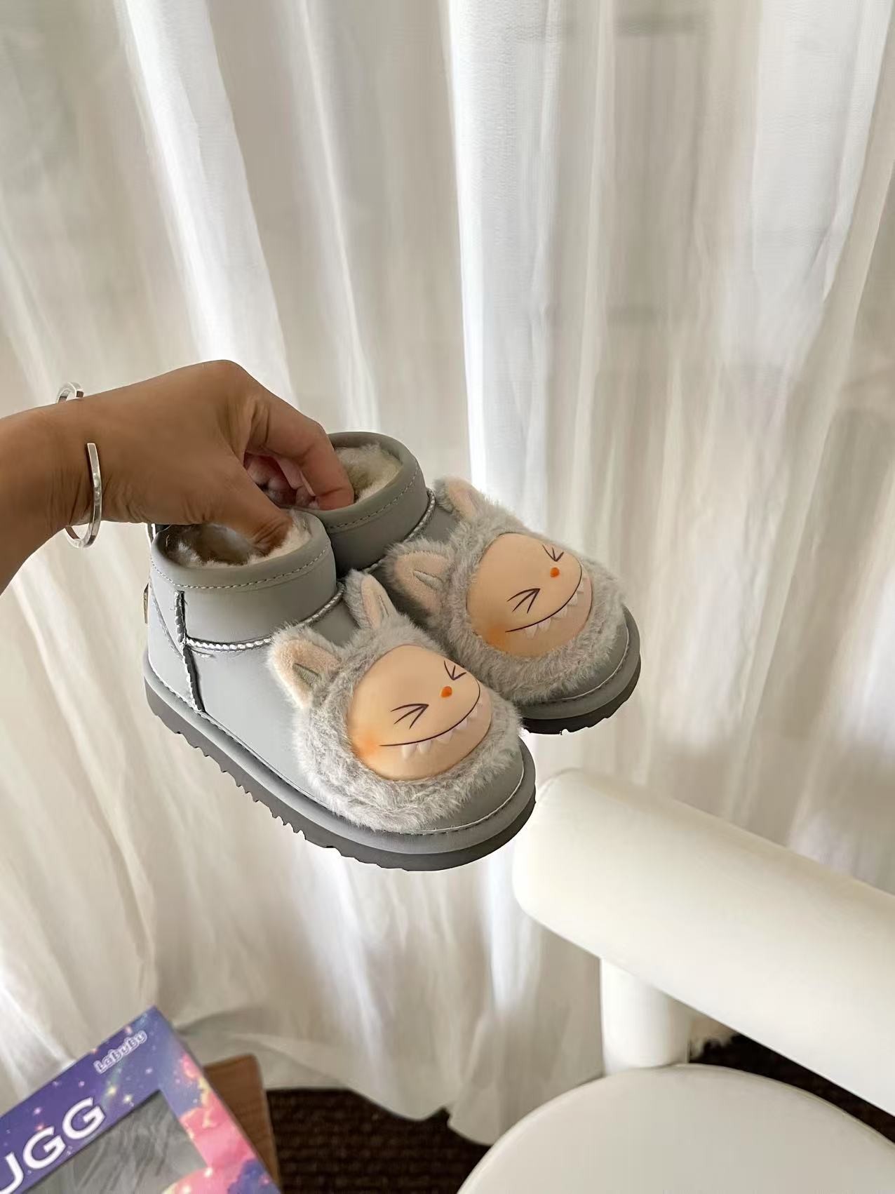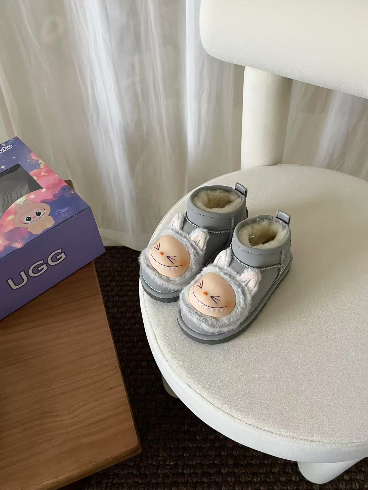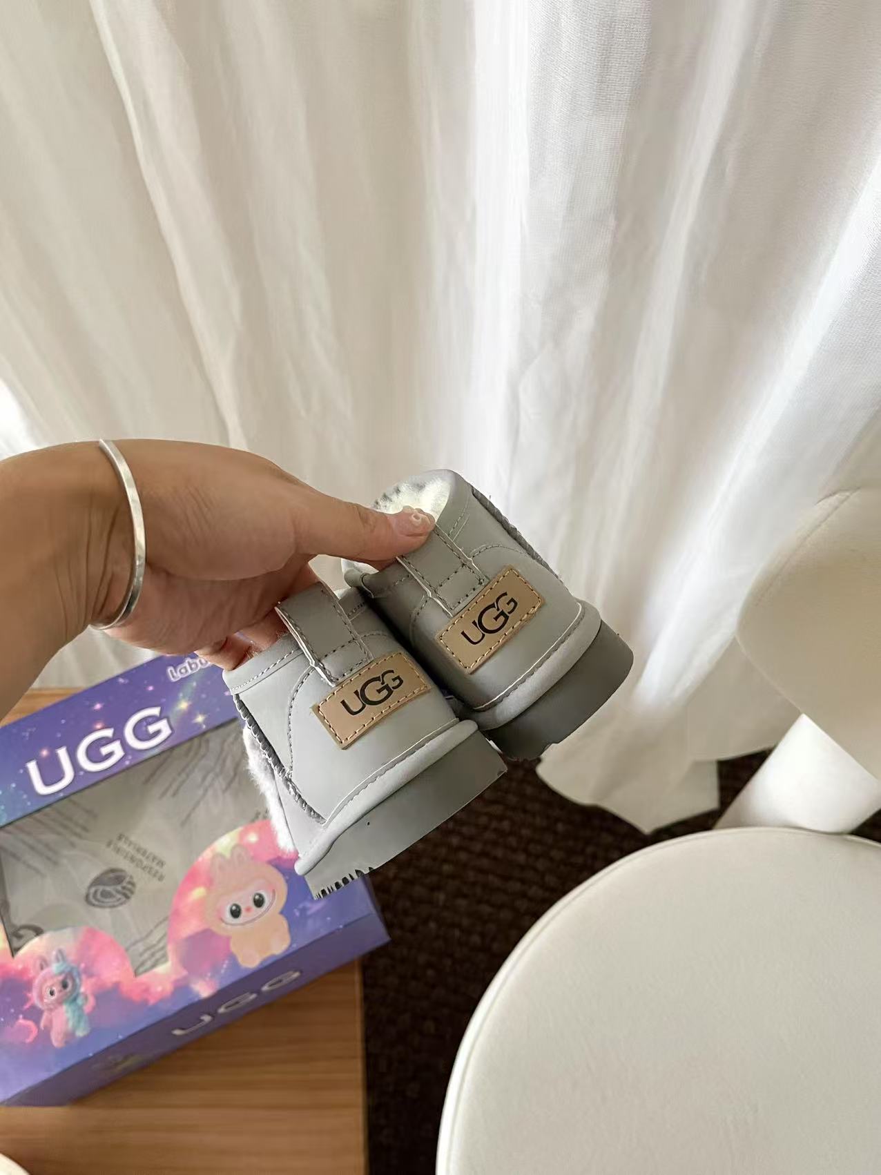 这款兒童鞋是AAAAA 1:1 质量 (非常棒). 使用了和原版一模一样的材料. 商标部分也保持了和UGG雪地靴一样. 图片拍摄是实物兒童鞋拍摄, 您所收到的实物保证和我们图片一模一样.