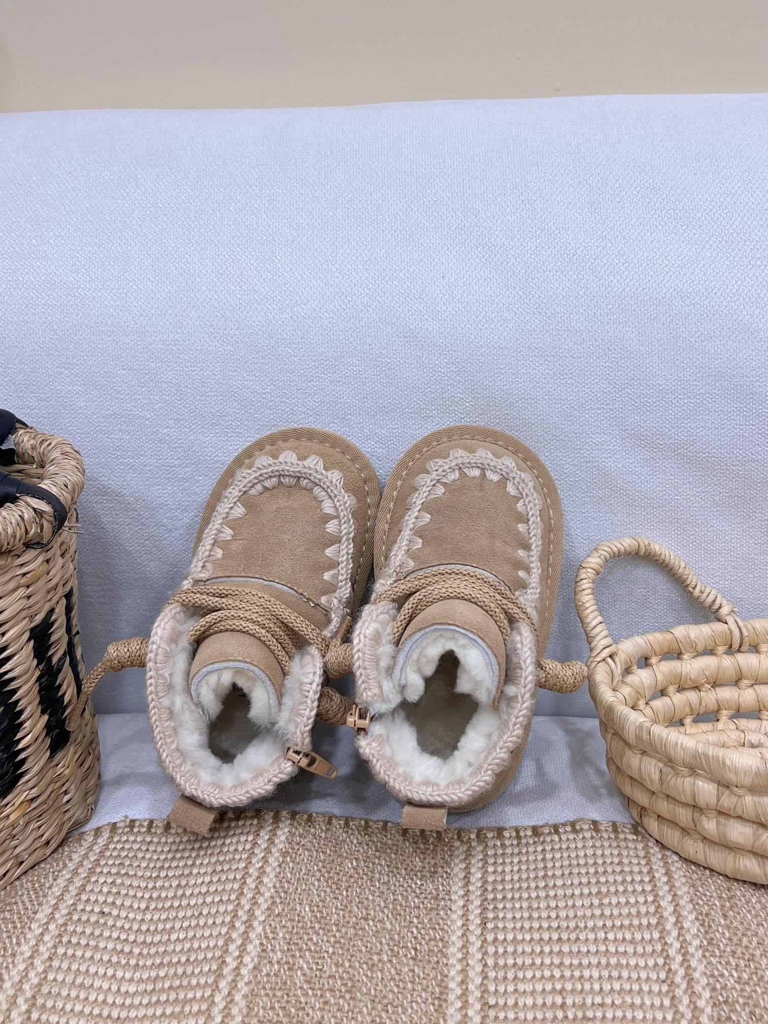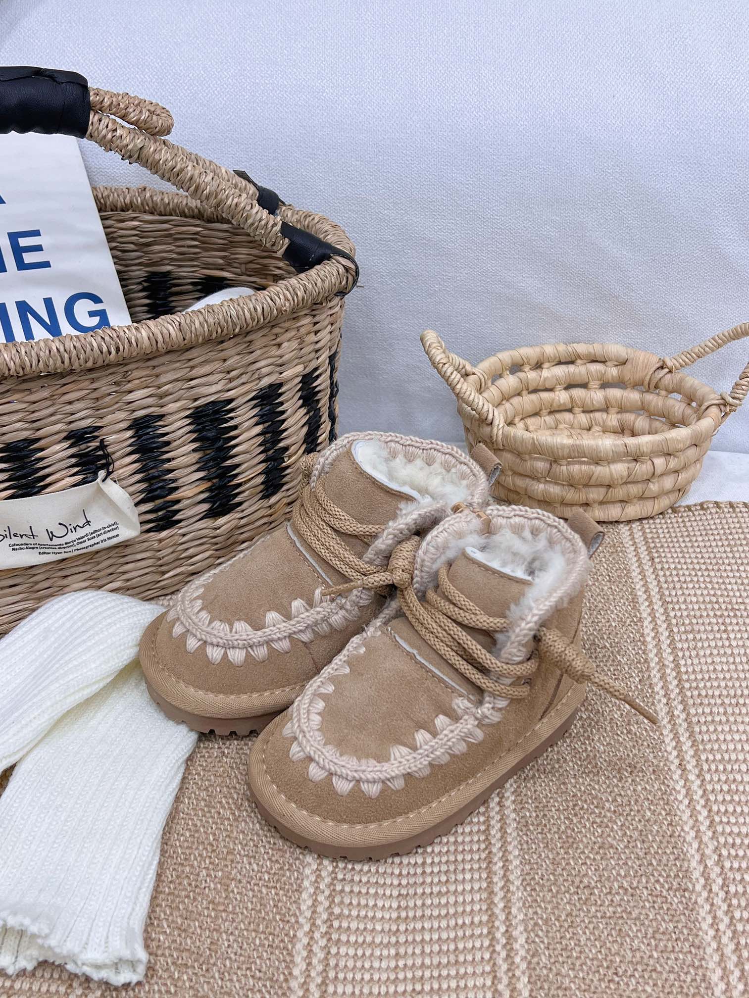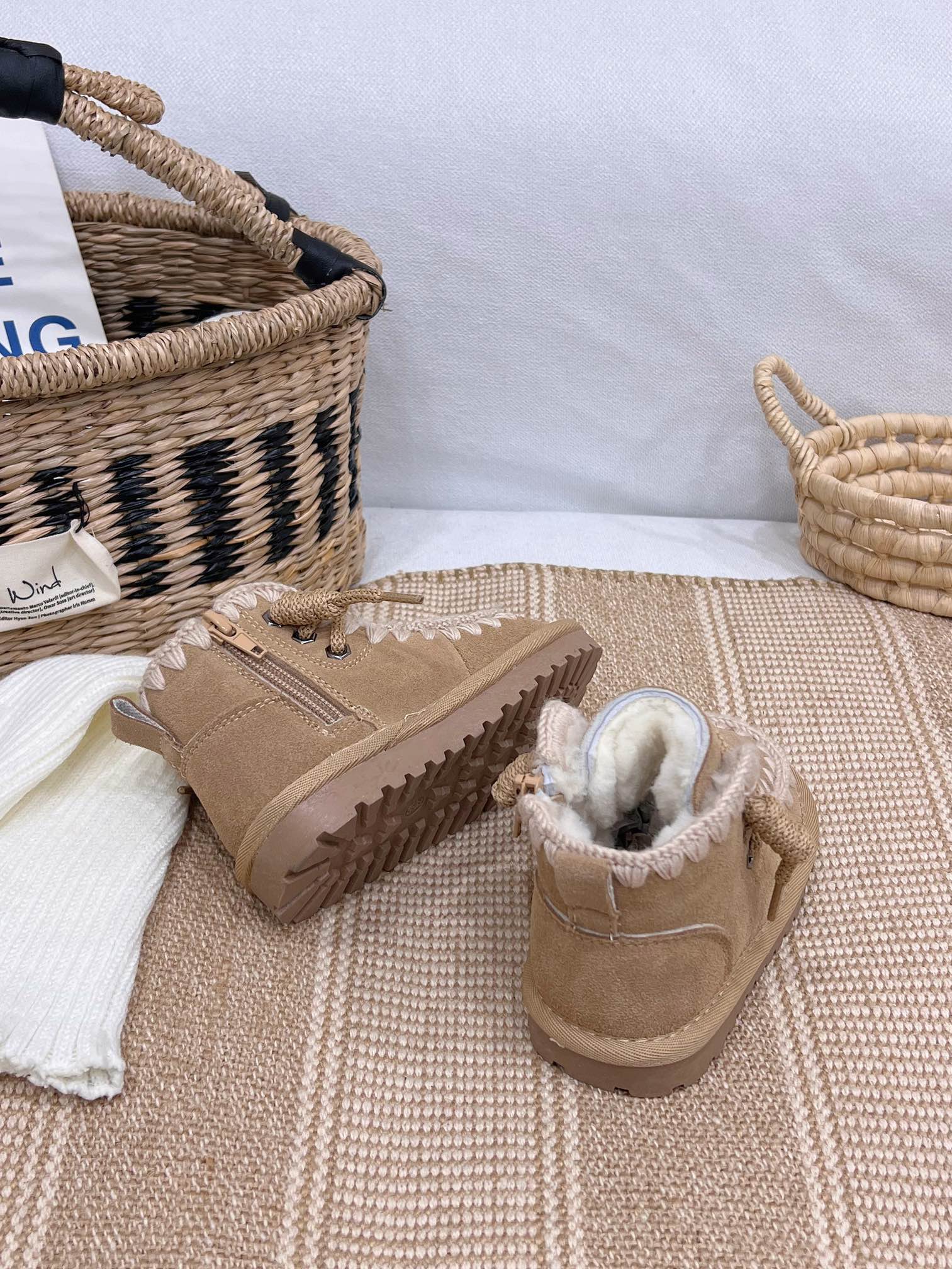 这款兒童鞋是AAAAA 1:1 质量 (非常棒). 使用了和原版一模一样的材料. 商标部分也保持了和UGG雪地靴一样. 图片拍摄是实物兒童鞋拍摄, 您所收到的实物保证和我们图片一模一样.