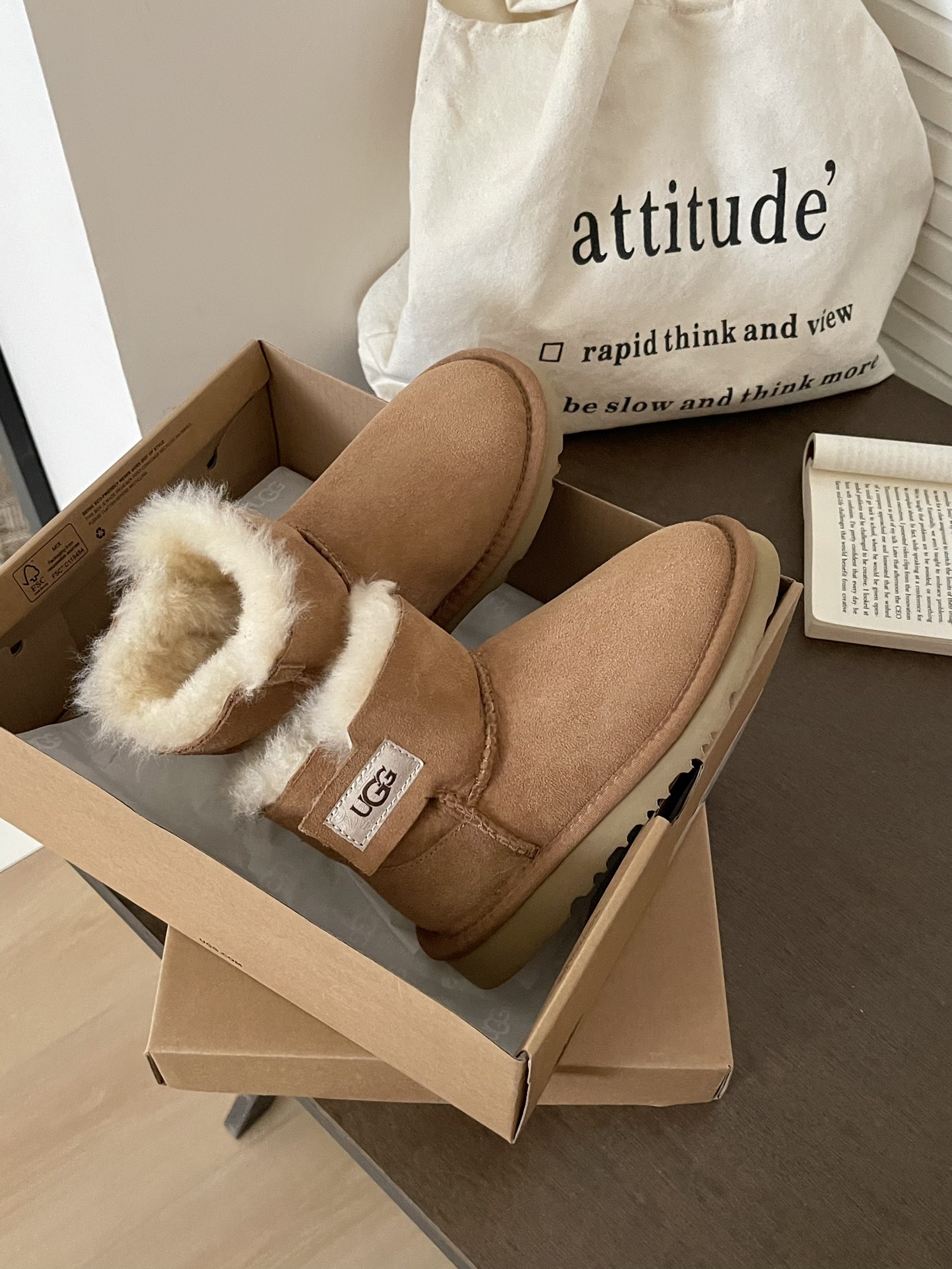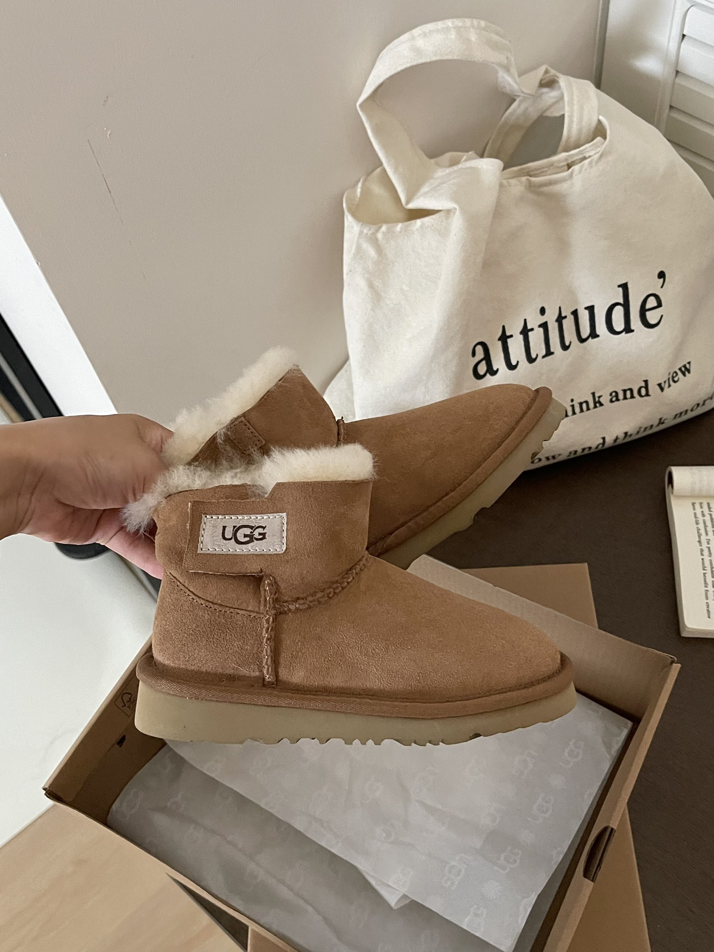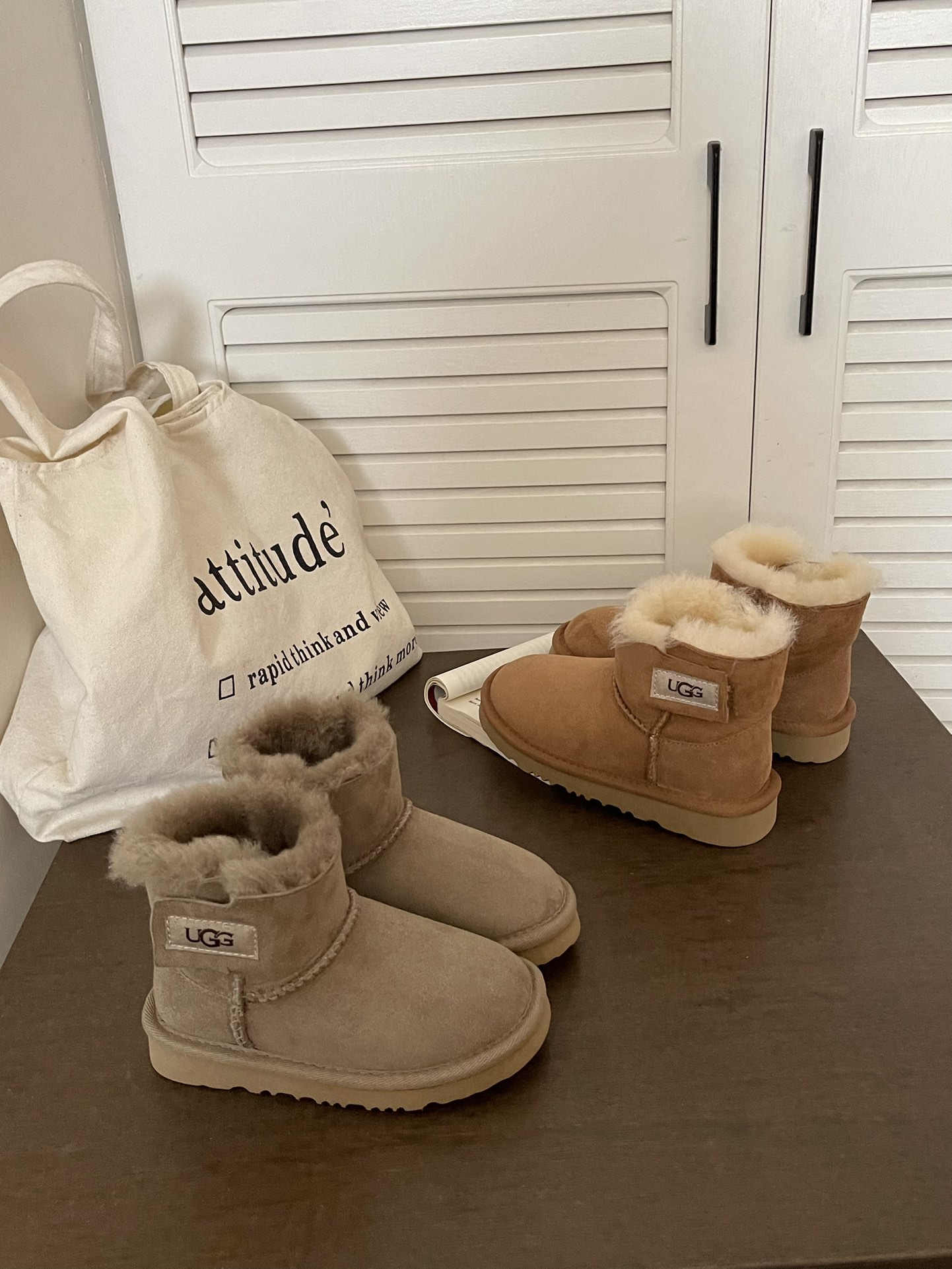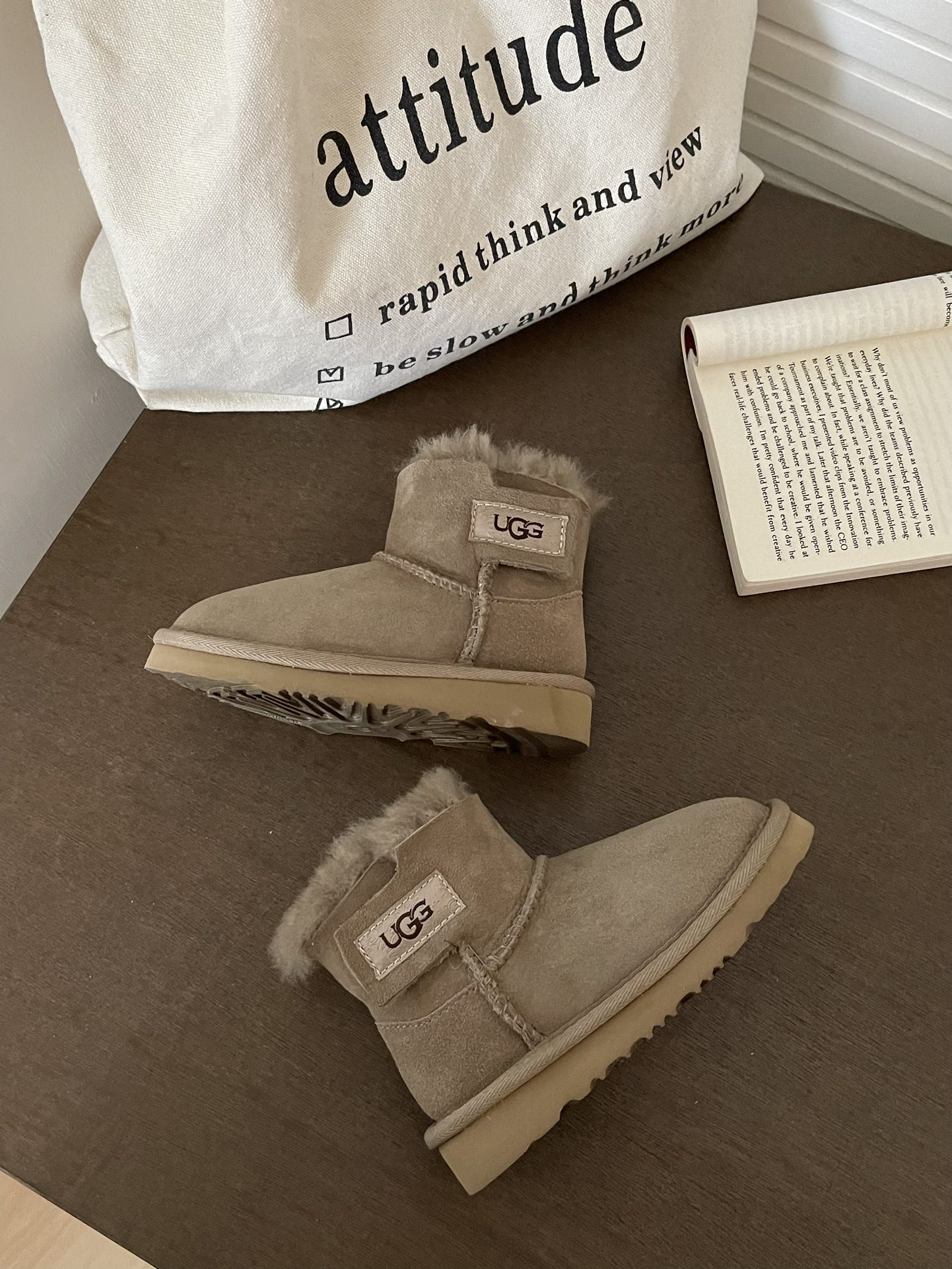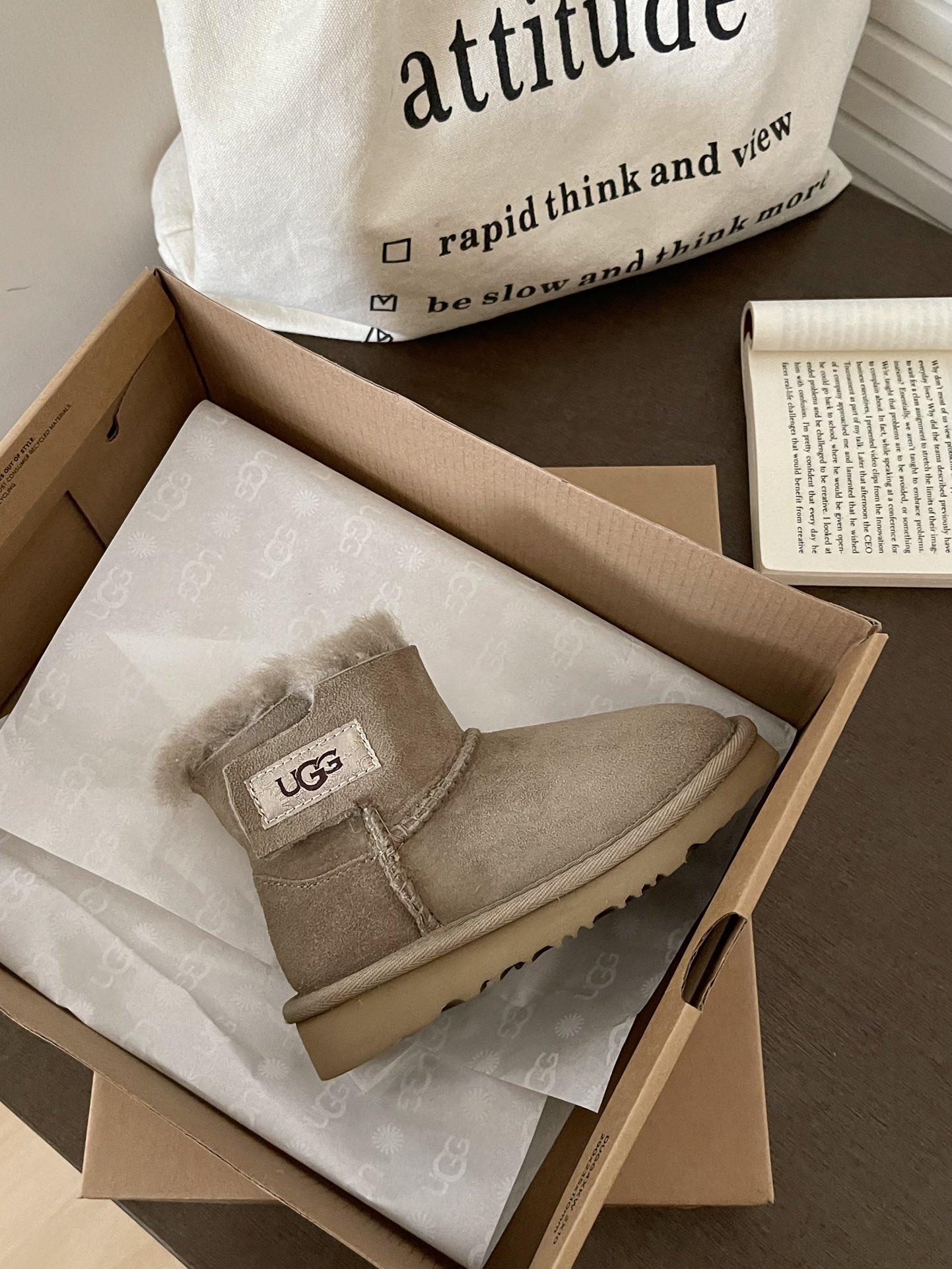 这款兒童鞋是AAAAA 1:1 质量 (非常棒). 使用了和原版一模一样的材料. 商标部分也保持了和UGG雪地靴一样. 图片拍摄是实物兒童鞋拍摄, 您所收到的实物保证和我们图片一模一样.