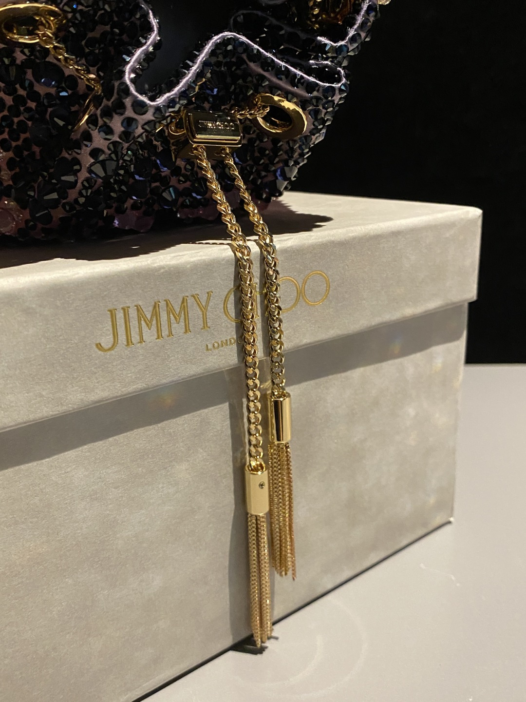 这款包包是AAAAA 1:1 质量 (非常棒). 使用了和原版一模一样的材料. 商标部分也保持了和吉米乔/JIMMY CHOO一样. 图片拍摄是实物包包拍摄, 您所收到的实物保证和我们图片一模一样.