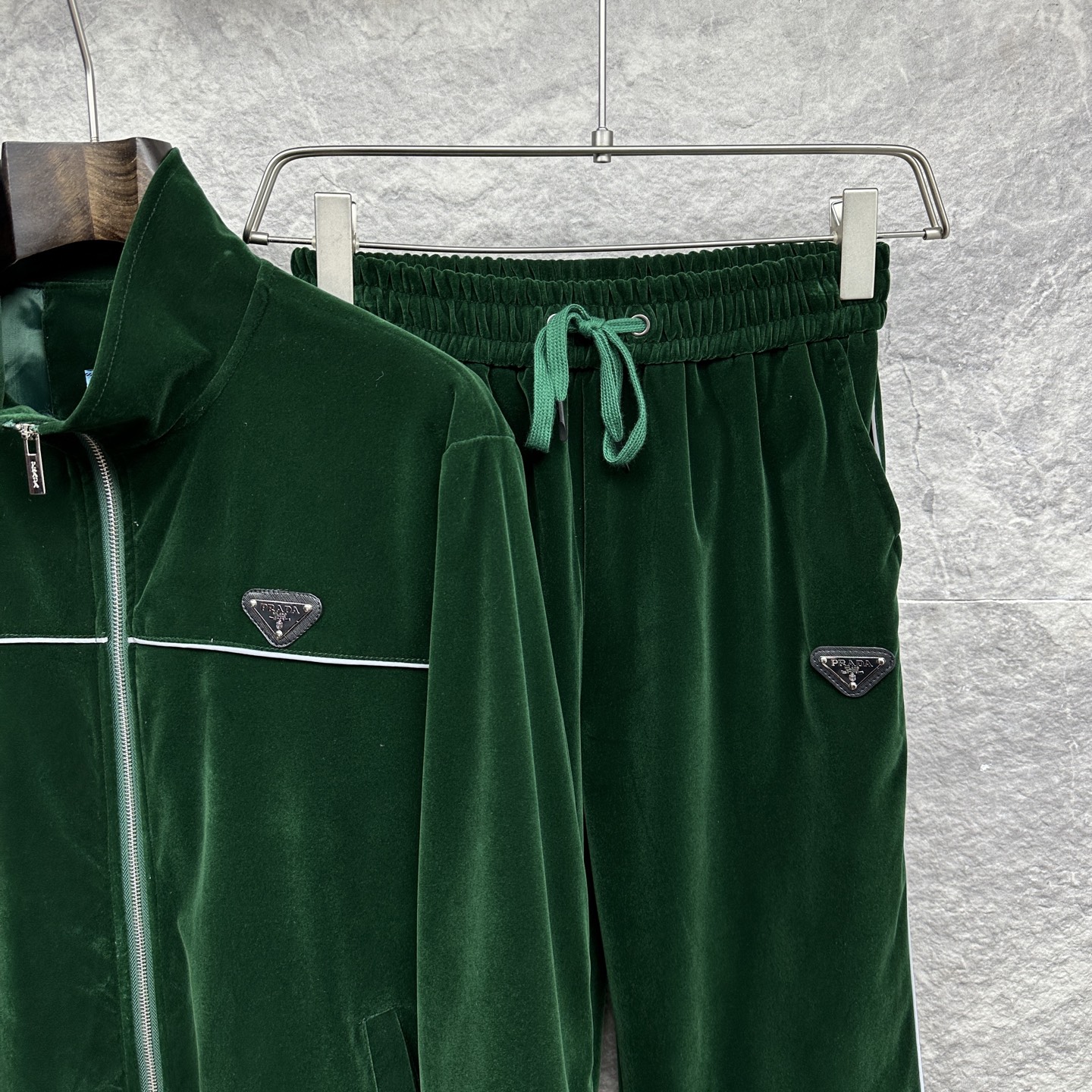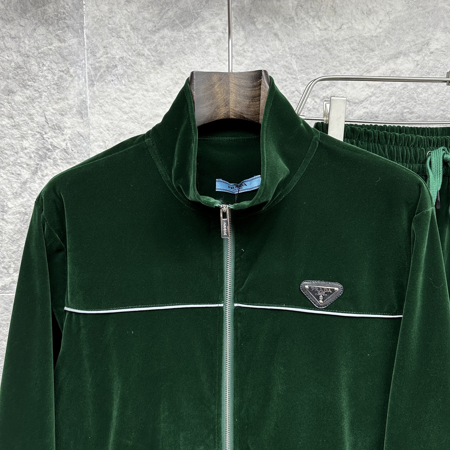 这款衣服是AAAAA 1:1 质量 (非常棒). 使用了和原版一模一样的材料. 商标部分也保持了和普拉达/Prada一样. 图片拍摄是实物衣服拍摄, 您所收到的实物保证和我们图片一模一样.